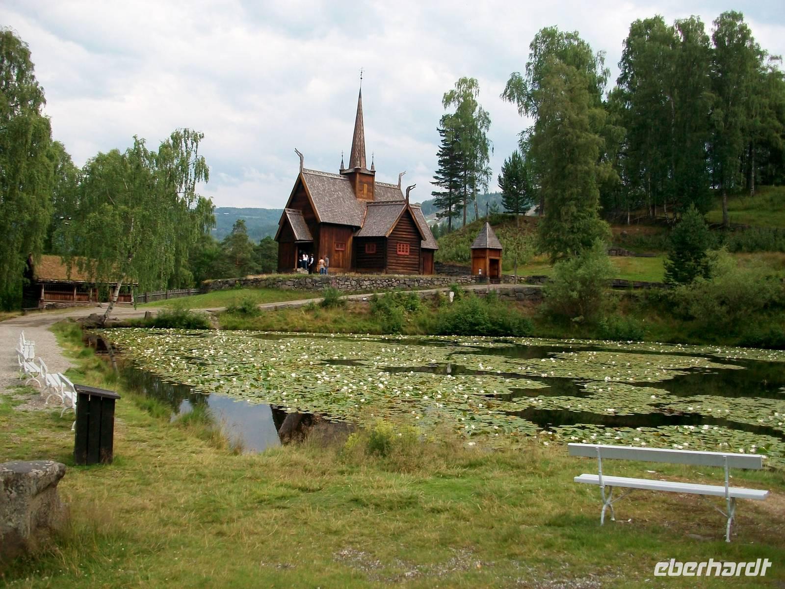 Wir folgen dem Lauf aufwärts und gelangen durch sehr gepflegte Ortschaften; an der Stabkirche bei Ringebu genießen wir unsere Mittagspause.