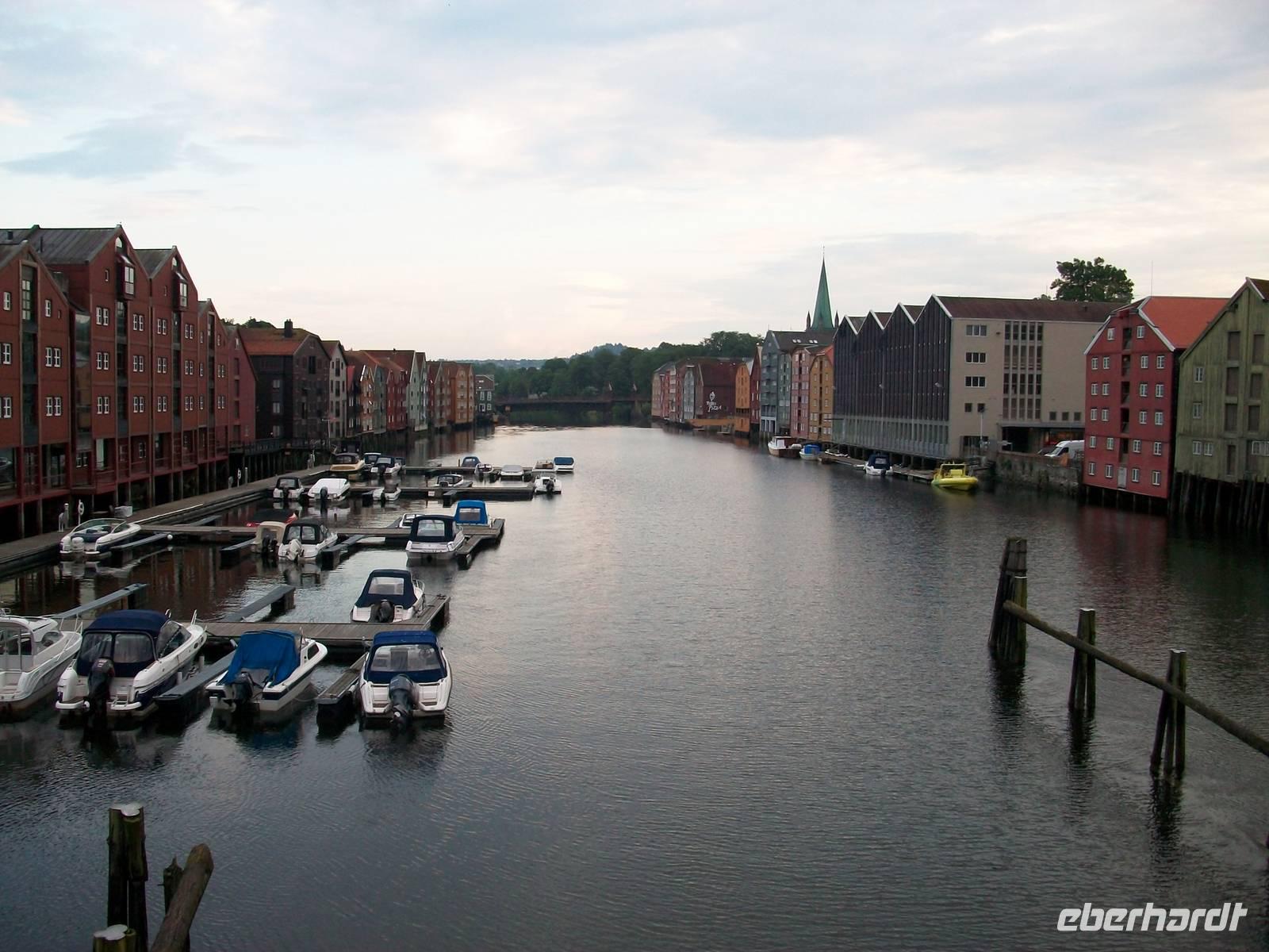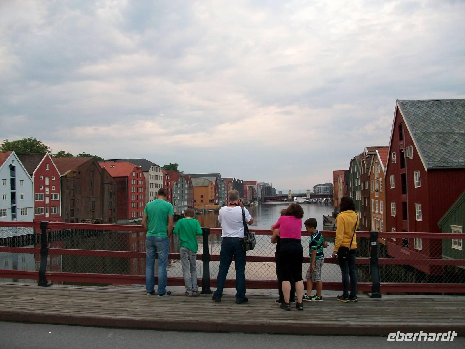 Leider haben sich nun dicke Wolken vor uns aufgebaut um ihre nasse Last auf uns abzuladen; als wir aber an unserem Hotel ankommen, hat sich Petrus wieder beruhigt. Nach dem Abendessen nun noch die beste Gelegenheit auf Entdeckung im reizvollen Trondheim zu gehen.
