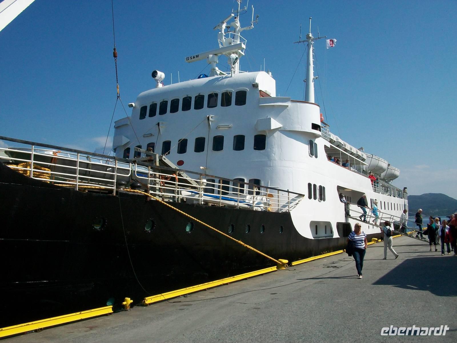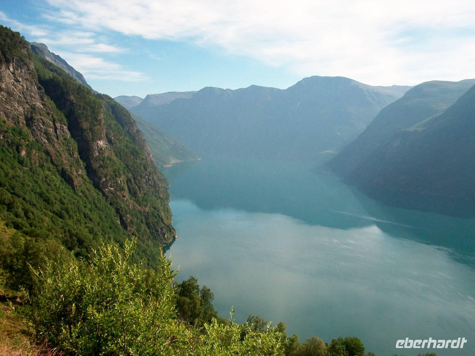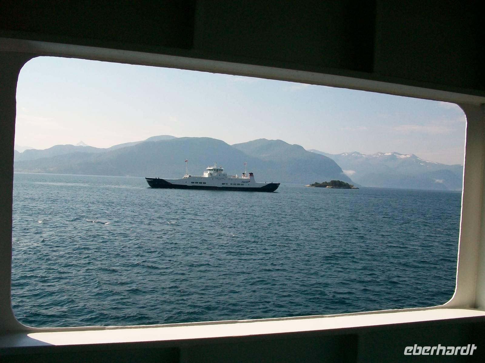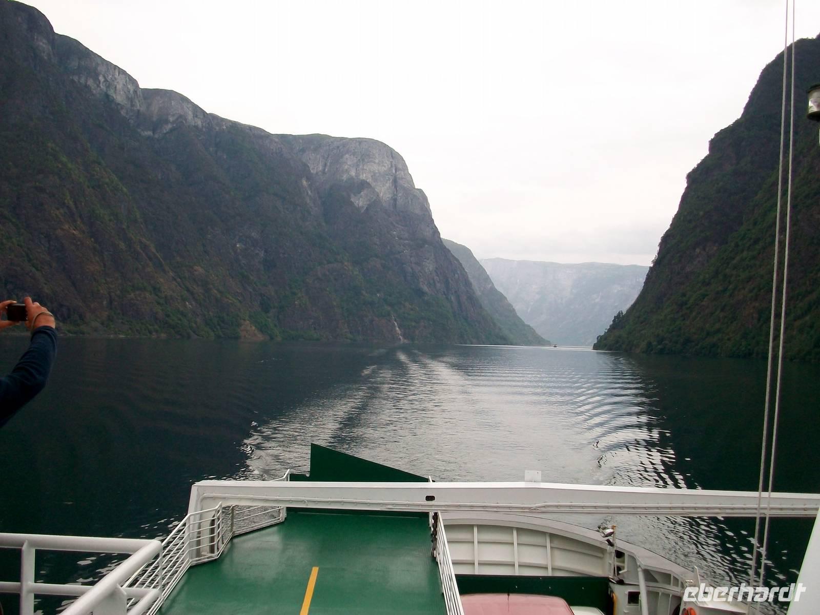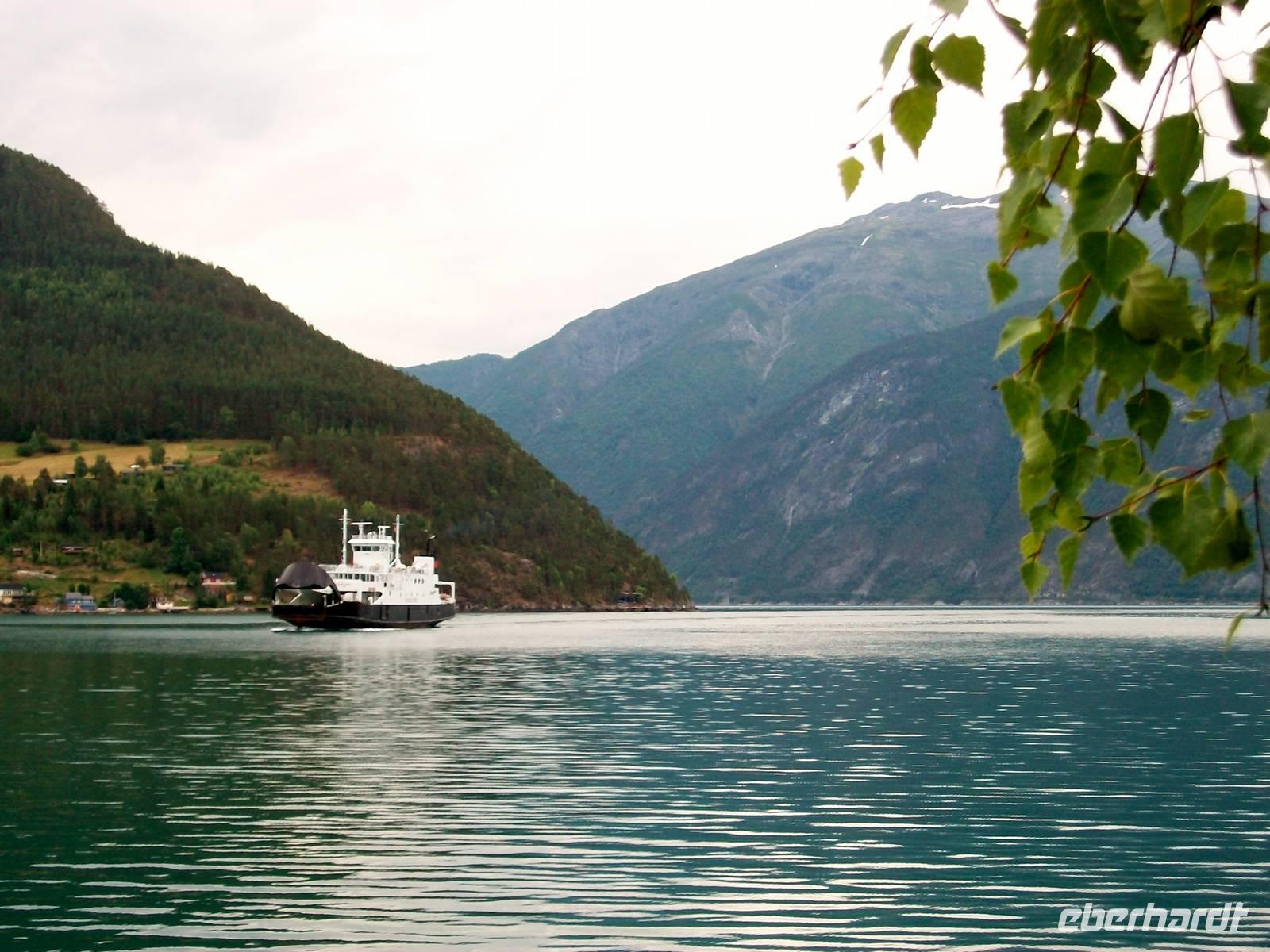 Bald reihen wir uns in die Warteschlange ein; ein kurzer Spaziergang und dabei vergeht die Zeit, das Schiff kommt über das Wasser und mit ihm werden wir nun einen der schönsten Fjorde Norwegens kennenlernen: den Sognefjord.