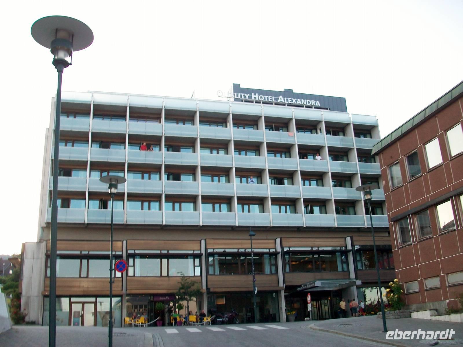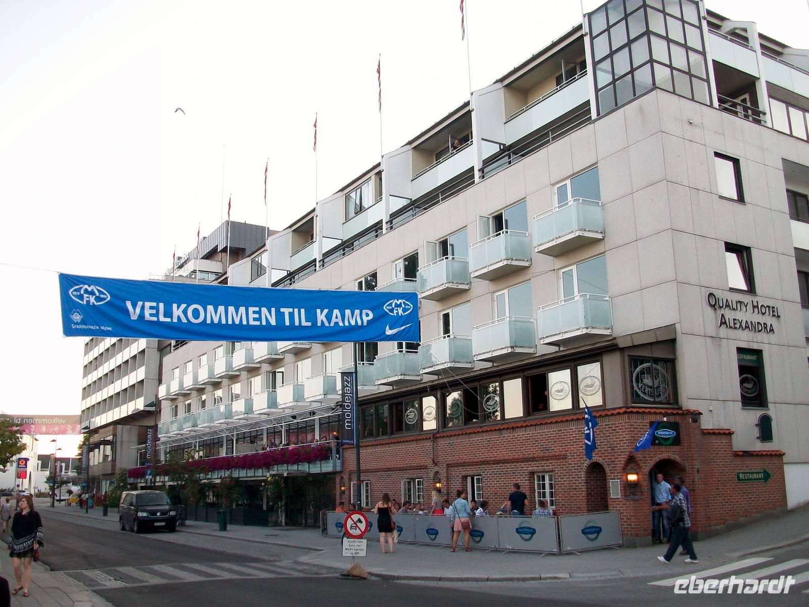 Dann gelangen wir durch einen letzten Tunnel zu unserem heutigen Ziel Molde. Die abendliche Sonne bescheint die schneebedeckten Gipfel der Romsdaler Alpen als wir am Hotel anlangen.