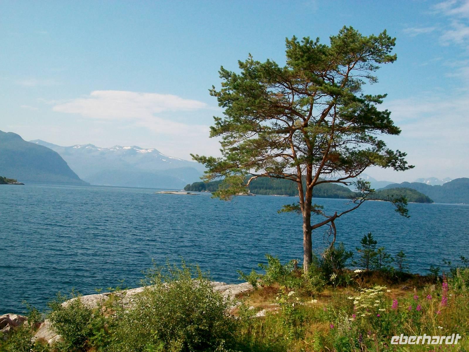 Dann geht es weiter, neue und schöne Eindrücke erwarten uns. Eine kurze Fährverbindung bringt uns über den Fjord und an dessen Ufer verläuft unsere weitere Fahrt. Bei jeder Kurve die wir beschreiben gibt es immer wieder neue und schöne Ausblicke.