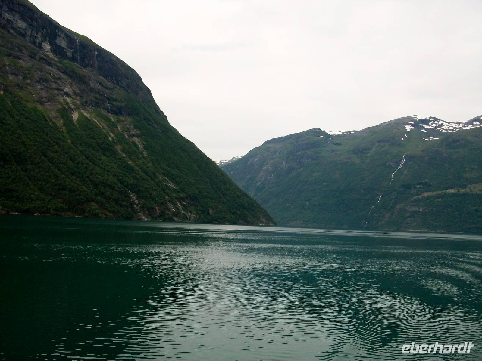 Steil steigen die Berge vom Wasser an, zahlreiche Wasserfälle kommen aus atemberaubender Höhe herabgedonnert und senden ihr Wasser dem Fjord zu. Dabei weiß man gar nicht wo man zuerst hinschauen soll, so großartig sind die Eindrücke.