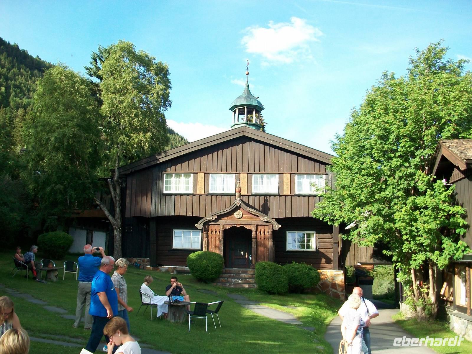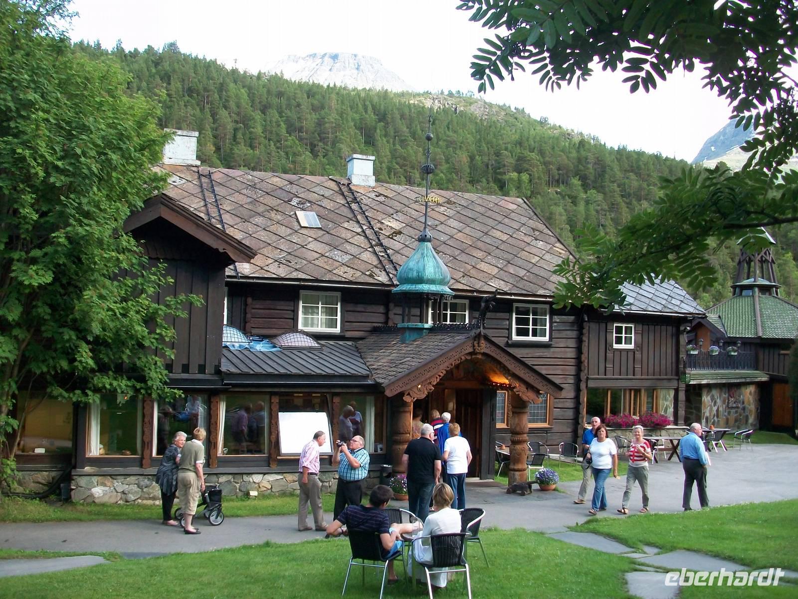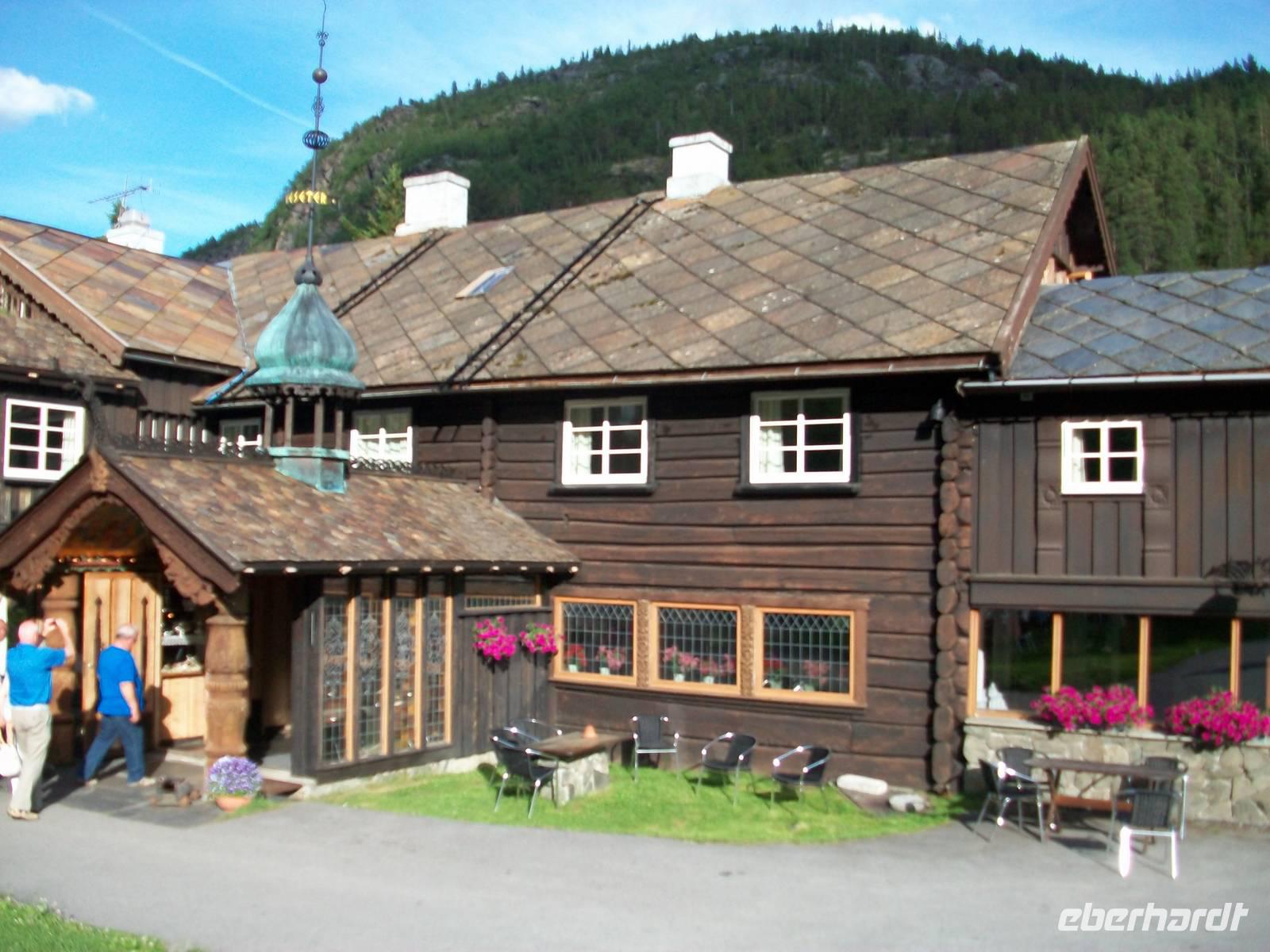 Strahlender Sonnenschein begleitet uns auf unserer letzten Etappe. Vor unseren Augen tauchen bald die uralten Holhäuser eines Bauerngutes auf; es ist unser Hotel Elveseter und auch hier drehen wir noch einmal die Zeit weit zurück. In diesem einmaligen Ambiente längst vergangener Zeiten schlagen wir unser Domizil für heute auf, gönnen uns im originellen Speisesaal ein leckeres Abendessen und ein Bummel danach in dieser einmaligen Natur ist sehr erholsam, die Vögel geben uns dabei ein Gratiskonzert. Eines kann man sagen: romantischer kann ein solch schöner Tag nicht zu Ende gehen!