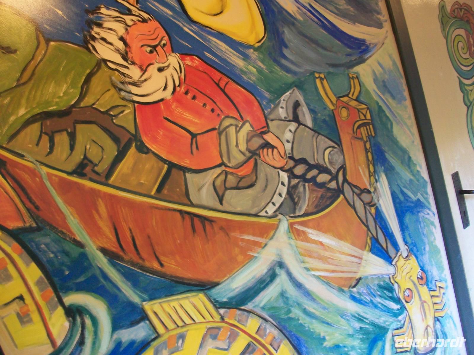 Das Gotteshaus nimmt unsere Gruppe in seinem Inneren auf, wir können auf den uralten Holzbänken platznehmen und lauschen den Ausführungen des Gästeführers. Dabei unternehmen wir einen Ausflug in die Geschichte Norwegens; erfahren viel über die Besonderheiten der Stabkirchen und im Anschluss verbleibt noch Zeit für manch schönes Foto.