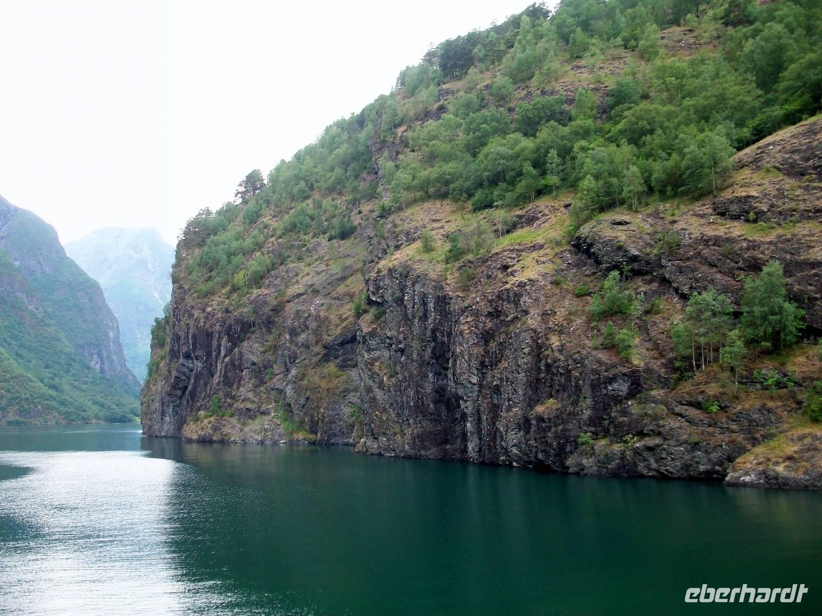 Auch wenn der Himmel voller Wolken hängt, wir haben dennoch einen schönen Blick auf die Landschaft und als wir gegen Mittag in Gudvangen anlegen, haben wir auf dem Schiff eine schöne Zeit verbracht.