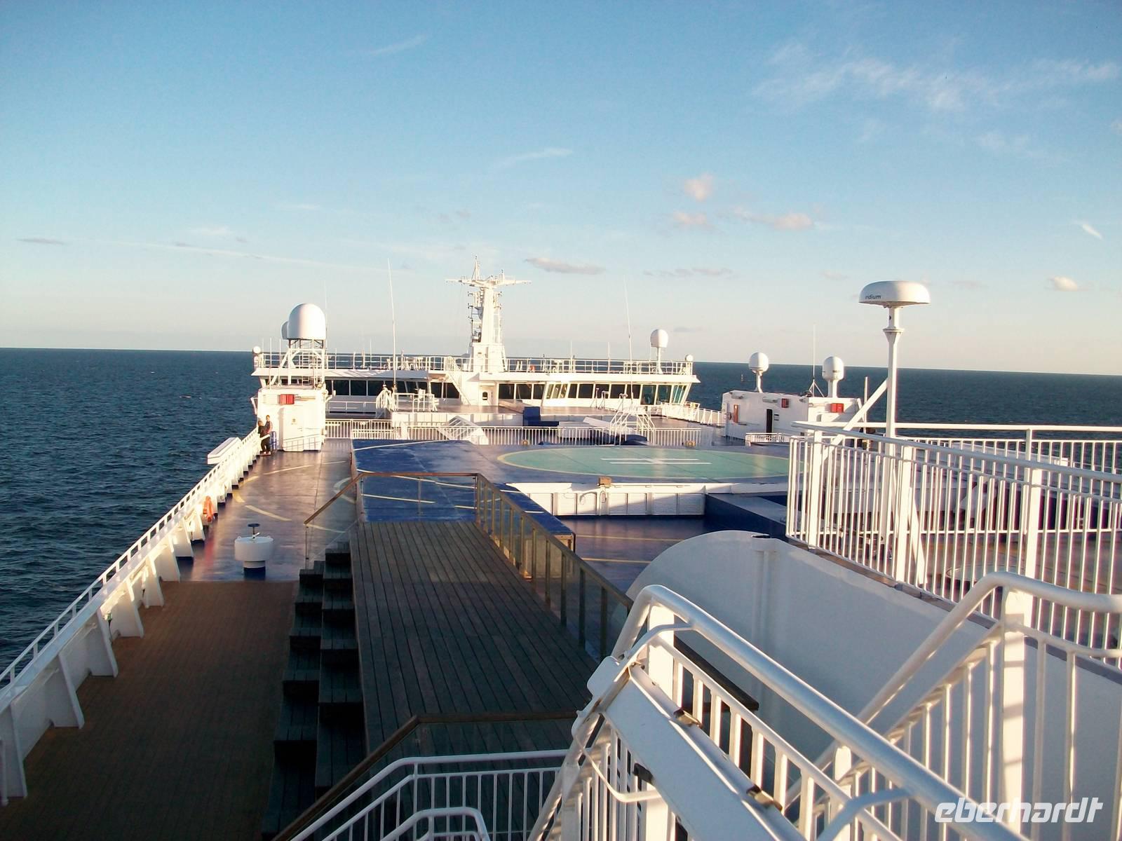 17.7.2014. Ein angenehm warmes Lüftchen weht an diesem Vormittag an Deck. Möwen begleiten mit elegantem Flug unsere Einfahrt nach Kiel. Langsam kommen die Hafenanalagen näher, das Schiff legt an und das große Luk wird geöffnet. Die Reisenden gelangen durch den langen Gang der Gangway hinab zum Parkplatz. Wenig später kommt unser Bus aus dem Bauch der Fähre, wir steigen ein und nun beginnt unwiederbringlich die Heimfahrt.