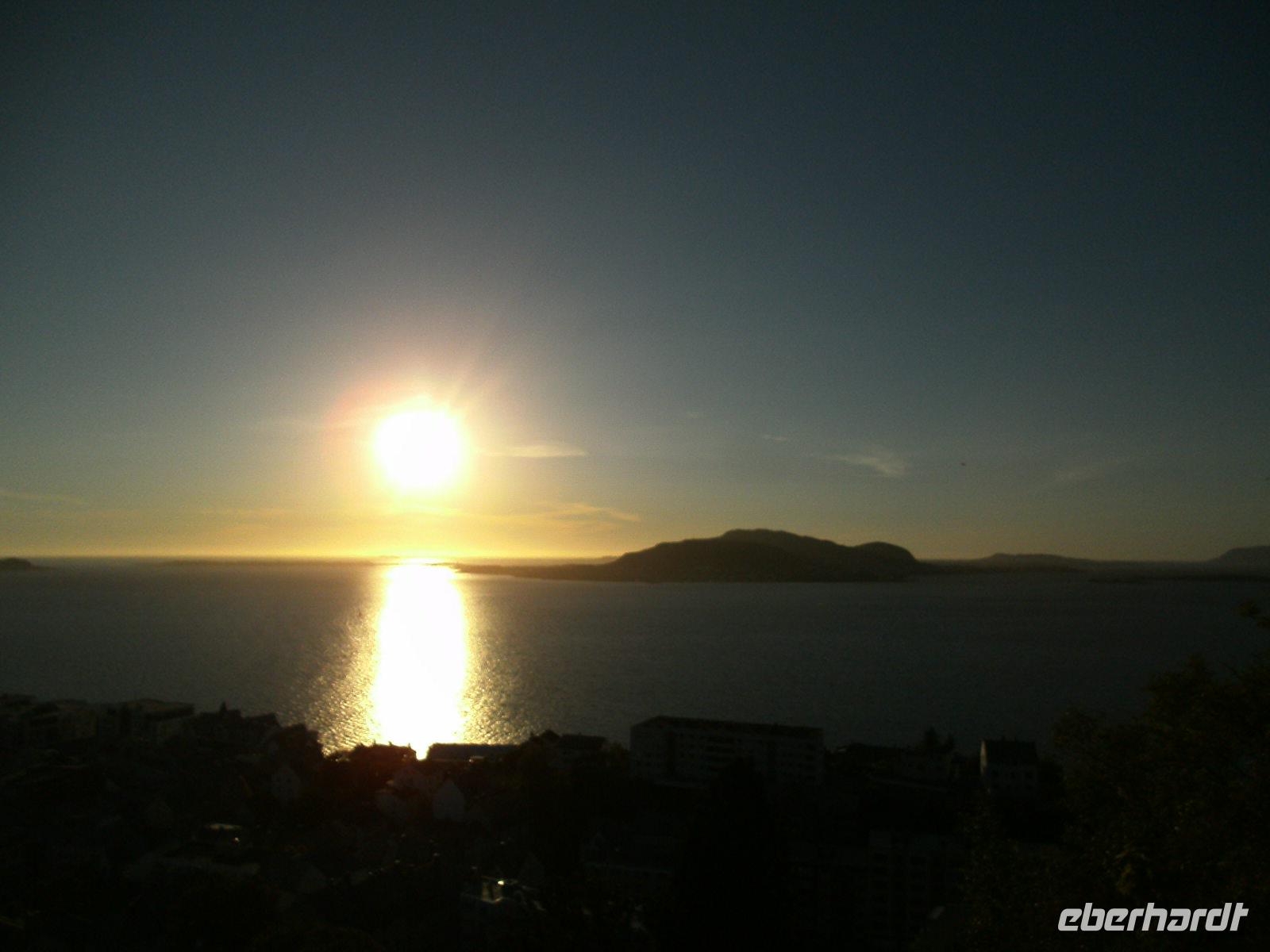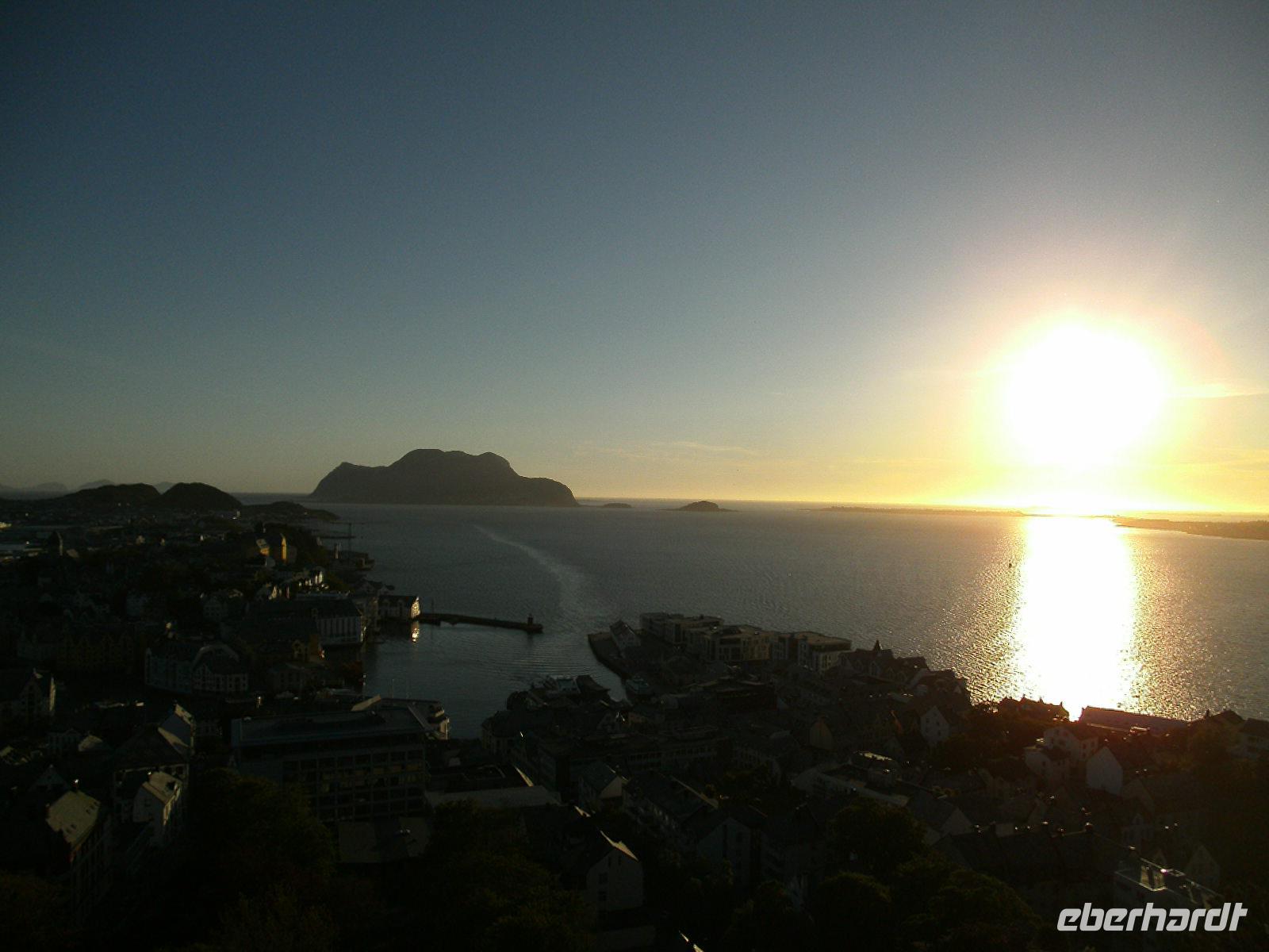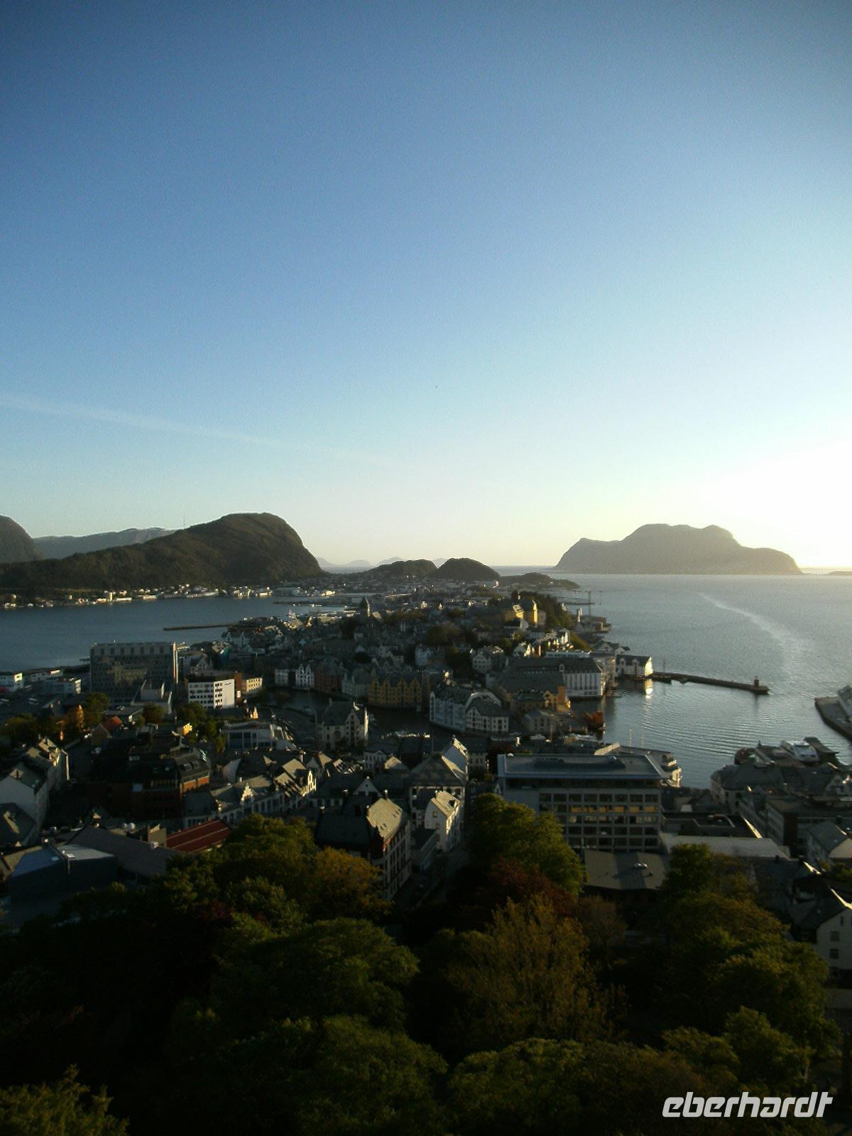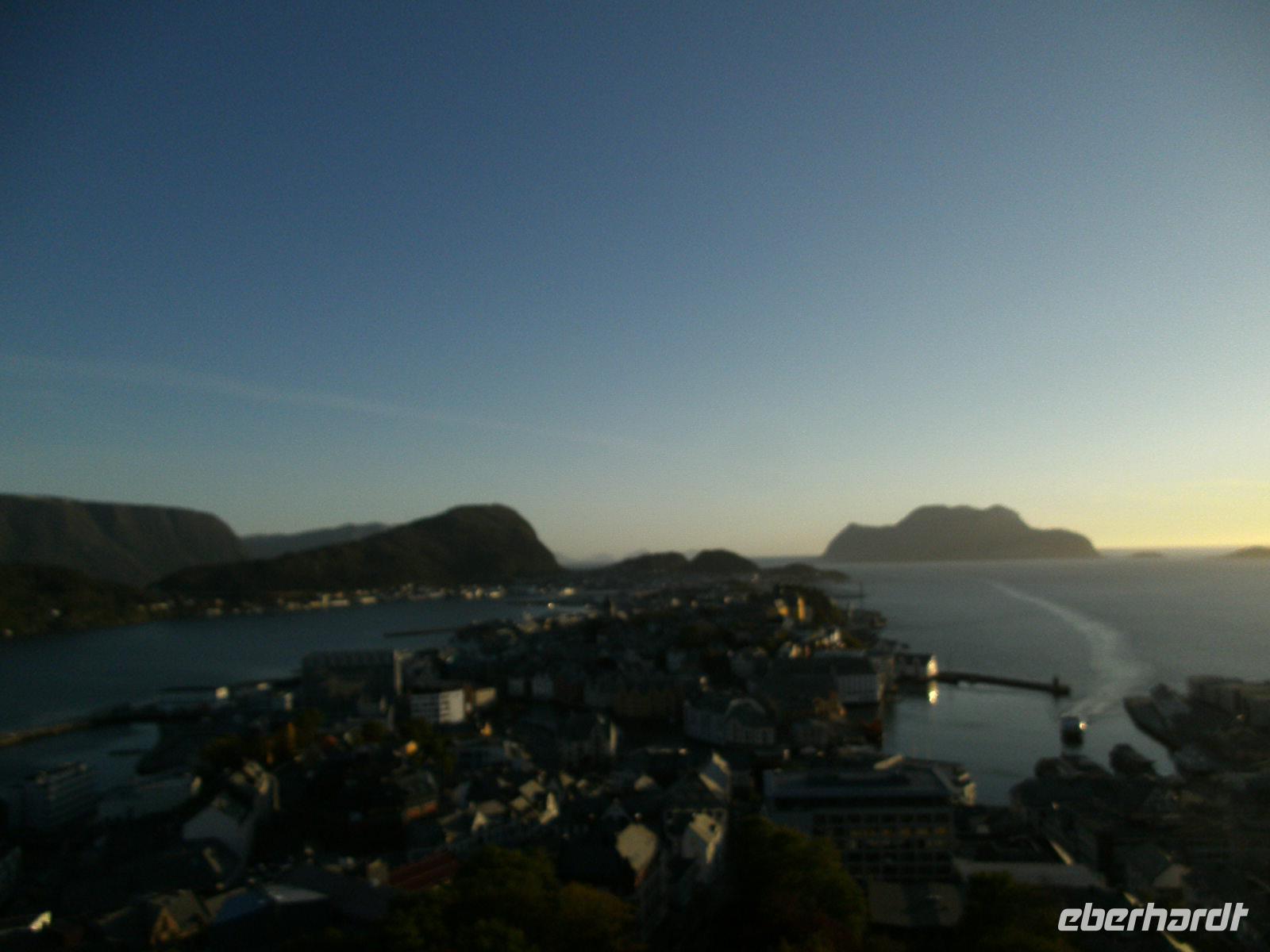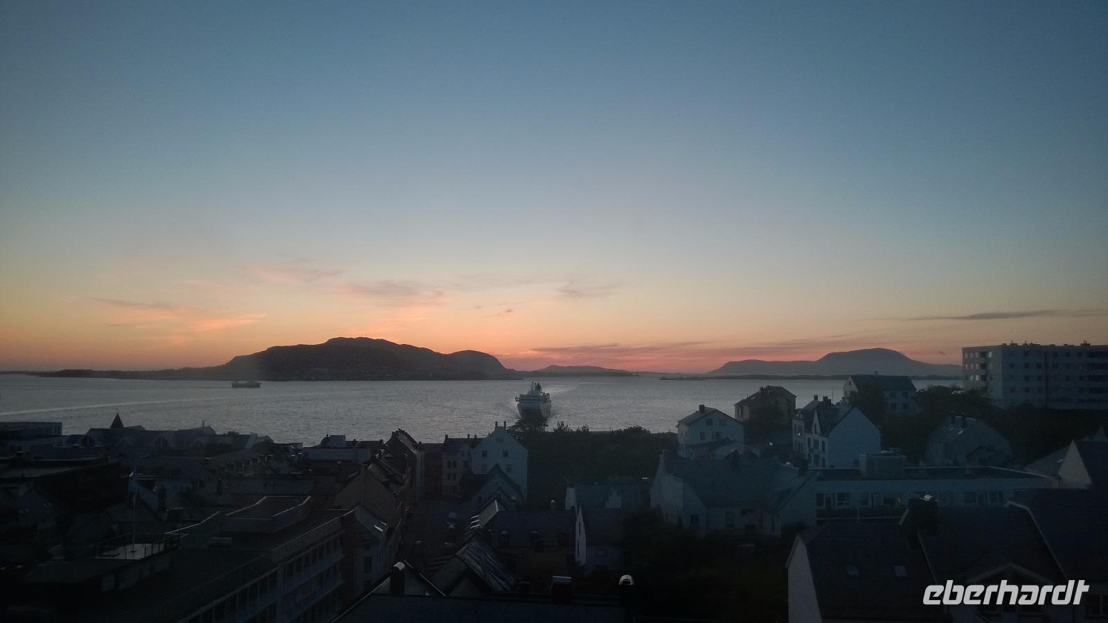 Am Abend kommen wir dann mit vielen Eindrücken in Aalesund, der Stadt des Jugendstils, an. Die Beine kann man sich hier in der Stadt vertreten und dabei all die vielen Jugendstilornamente an den Häusern bestaunen oder aber man kraxelt hoch auf den Berg hinterm Hotel und hat eine Aussicht, die wieder mal ein „Zwick mich mal, damit ich auch weiß, dass das hier Wirklichkeit ist" einfordert.