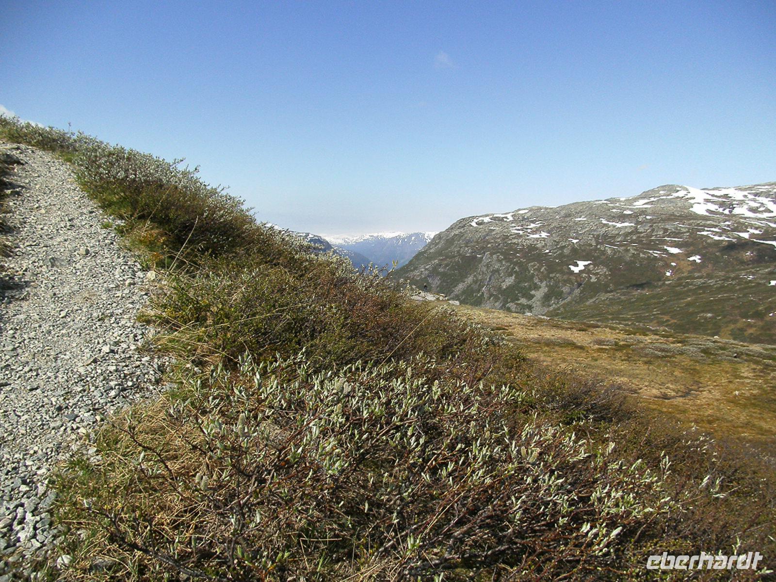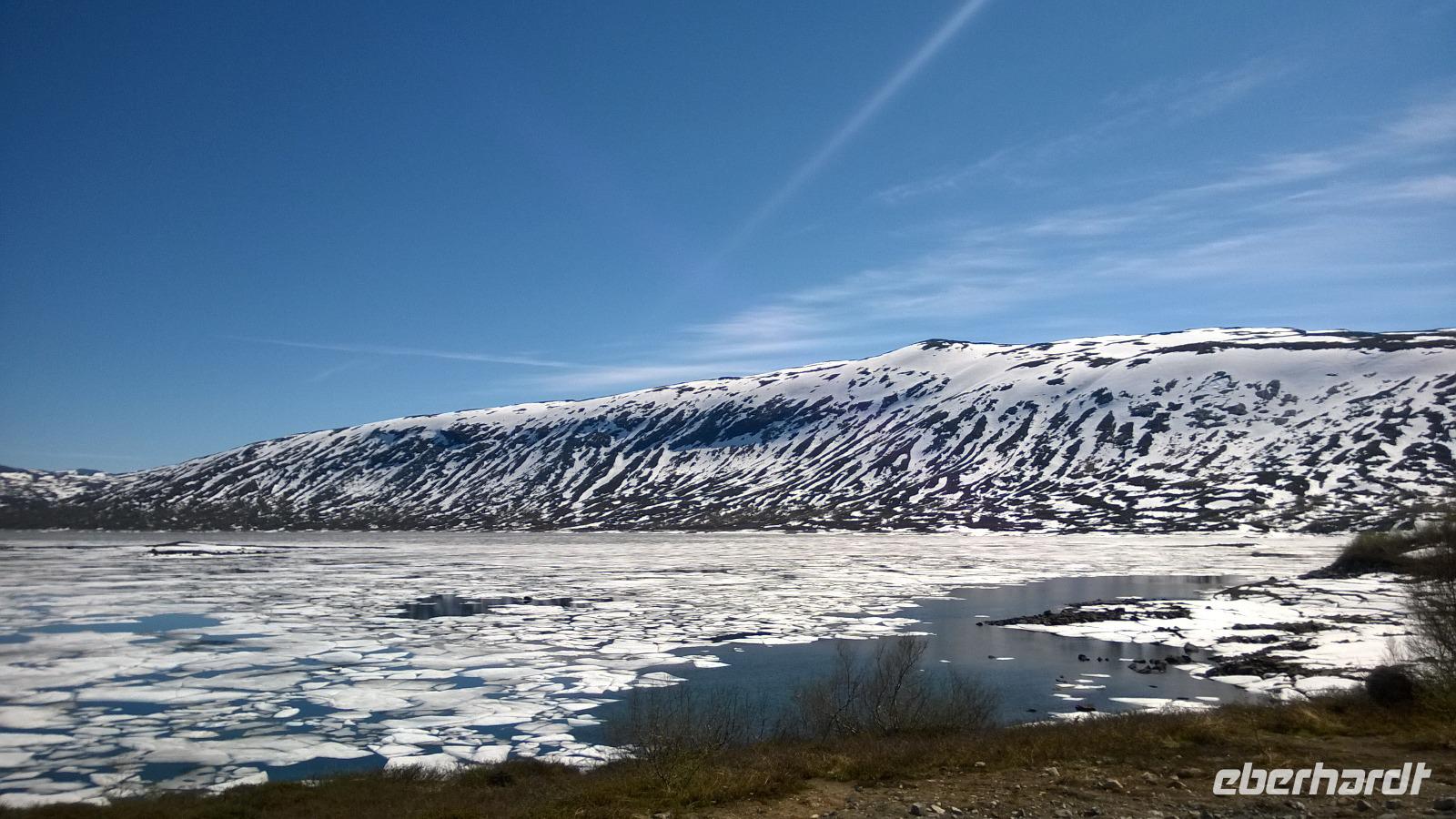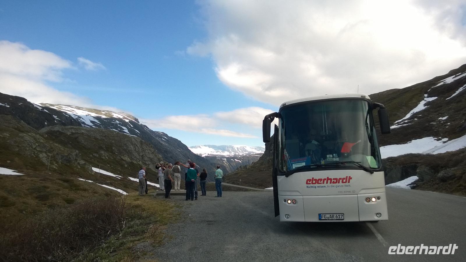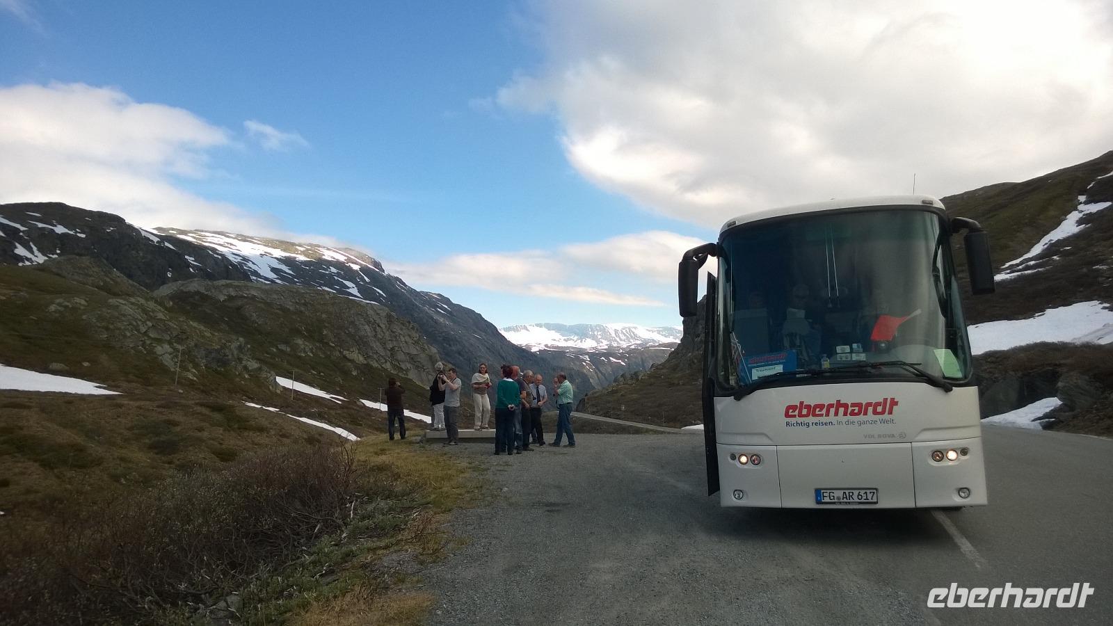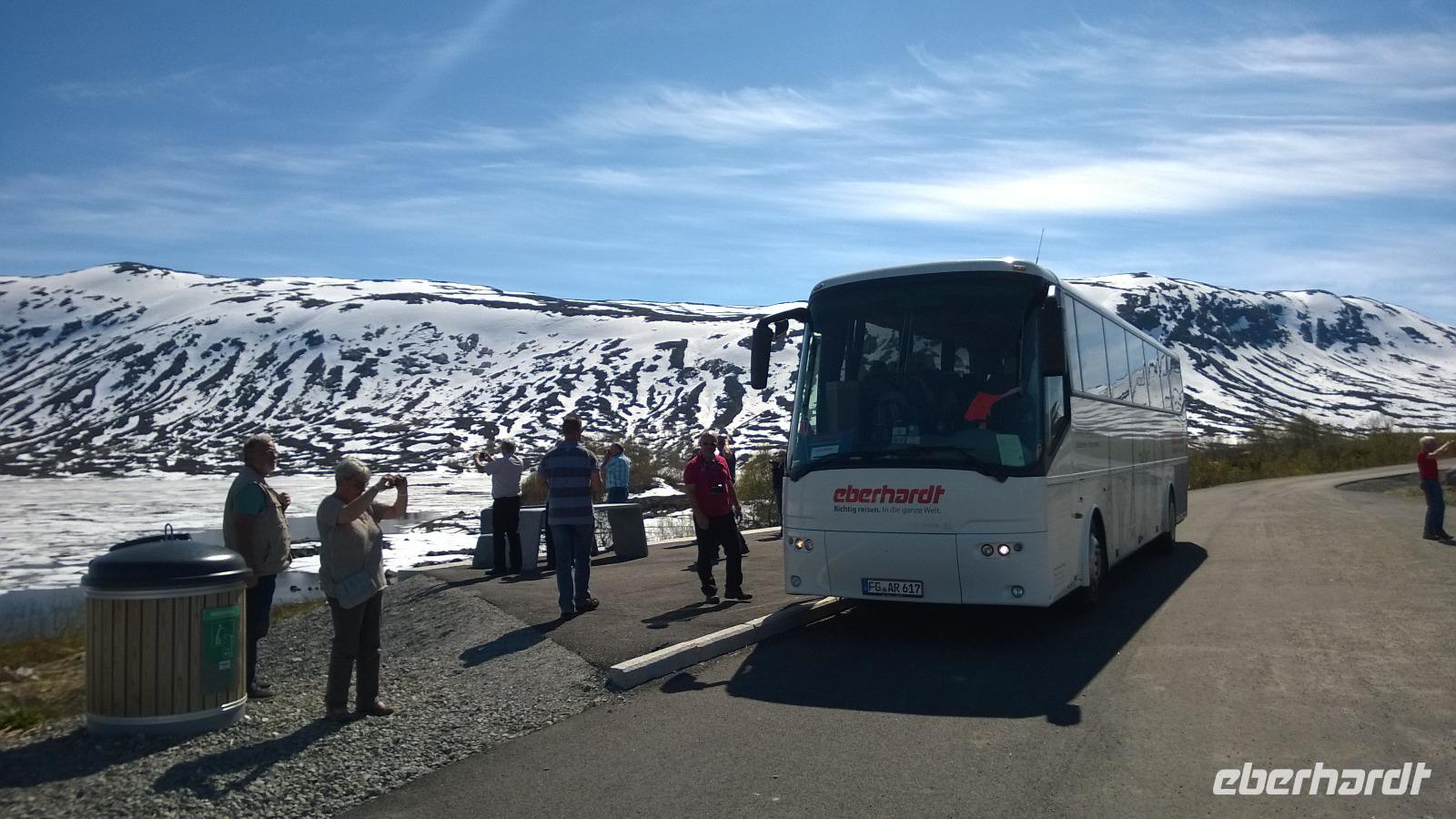 Nun geht es weiter über das Dovrefjell, also ins Gebirge. Die Moschusochsen, die hier wieder angesiedelt wurden, lassen sich leider nicht blicken, aber eindrucksvoll ist diese karge und schneereiche Landschaft trotzdem.