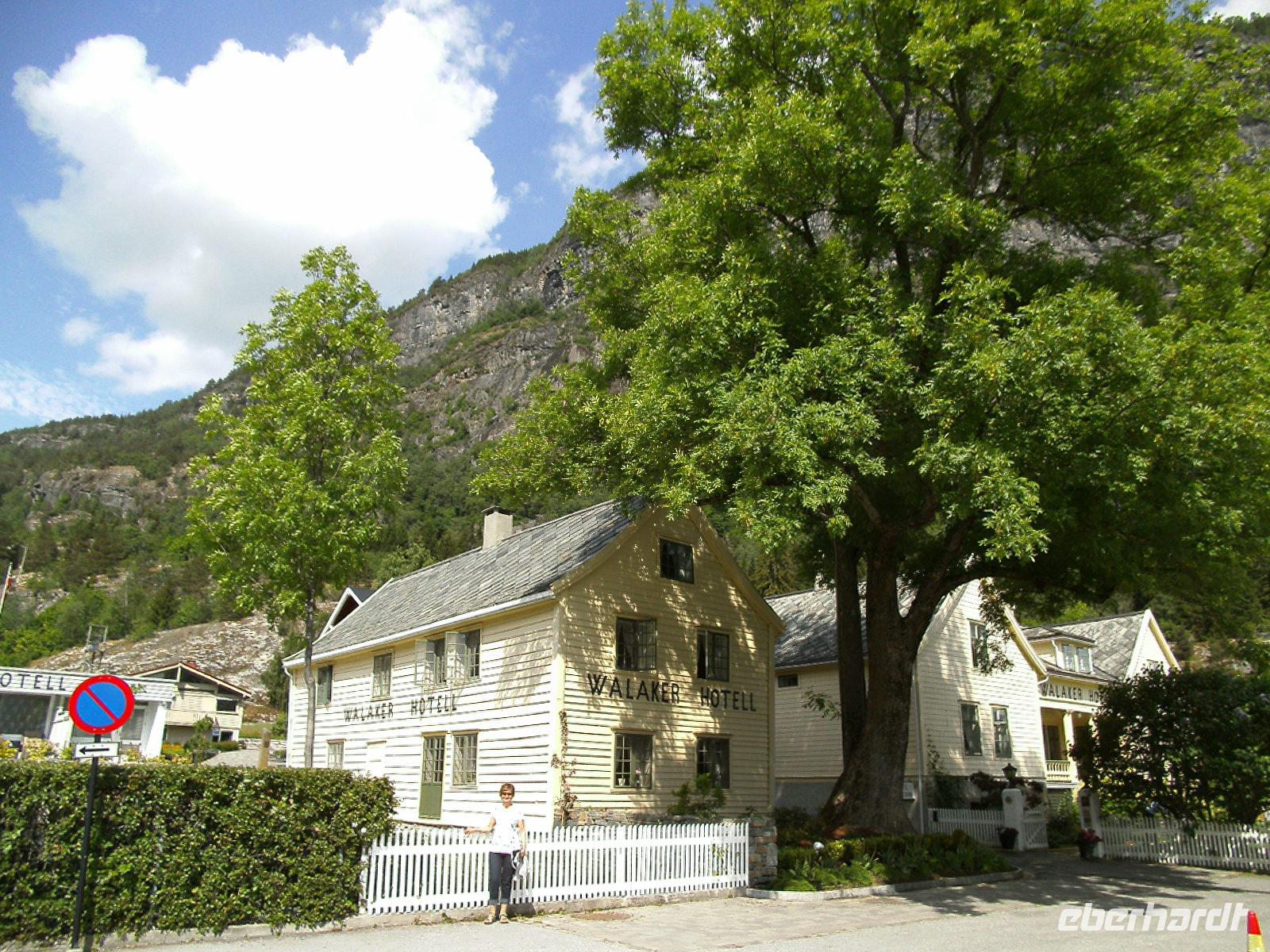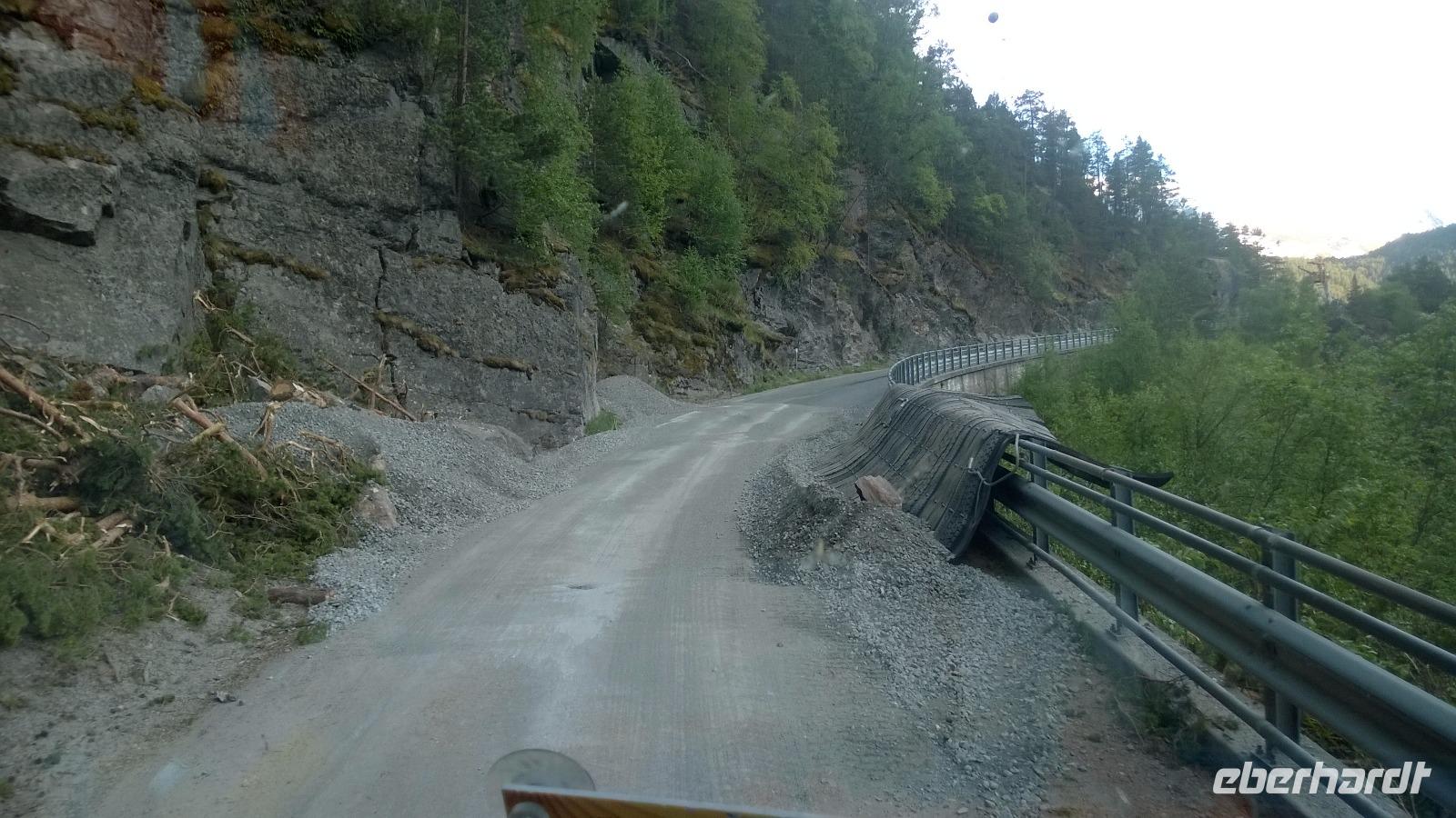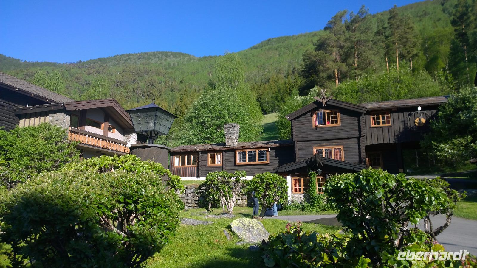 Nun ist es aber Zeit, um ins Hotel zu fahren. Heute ist es besonders spannend, denn wir werden in einem familienbetriebenen Antikhotel untergebracht sein. Aber was soll das? Kurz vor dem Elveseter-Hotell ist die Straße gesperrt und ein Bauarbeiter namens Björne meint, wir müssten zwei Stunden warten, bis der große Felsbrocken weiter vorne auf der Straße wegtransportiert ist und wir durchfahren könnten. Oha, das ist also auch Norwegen.