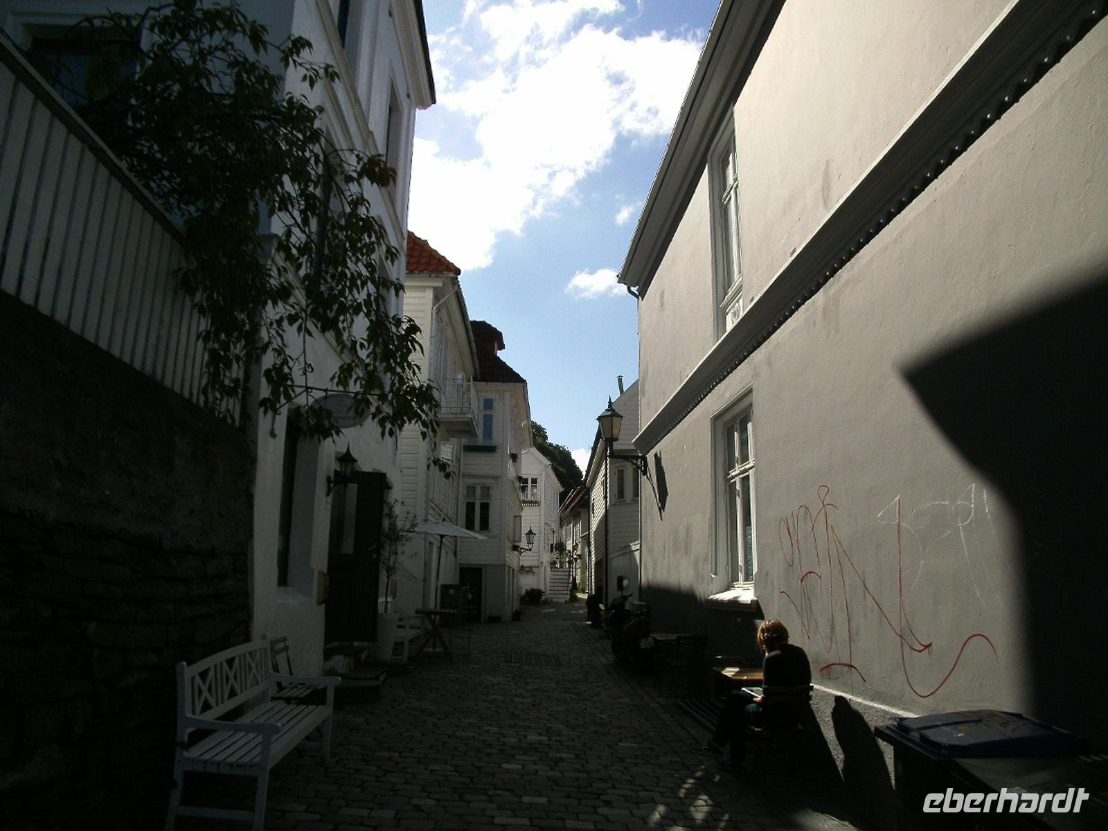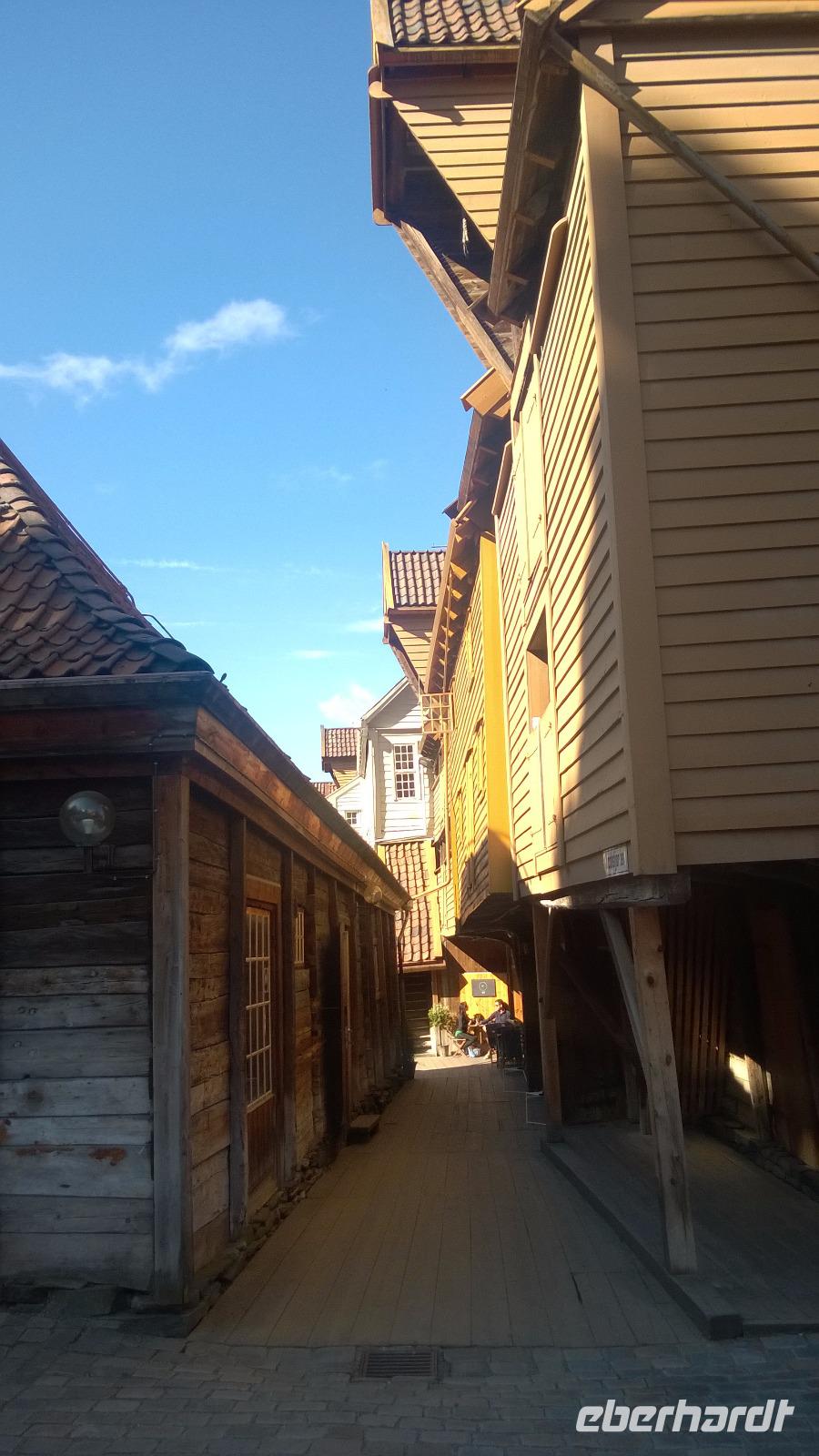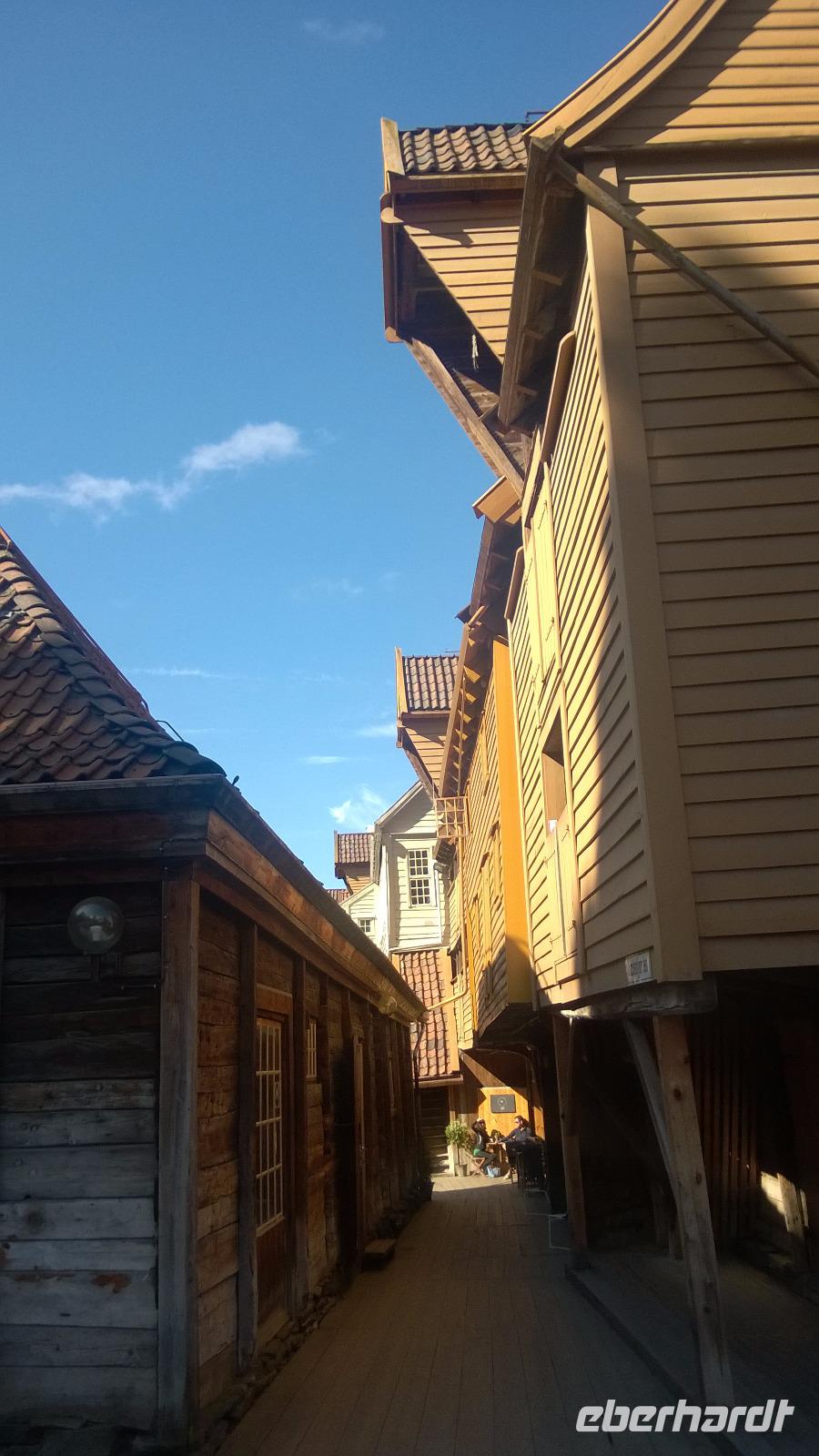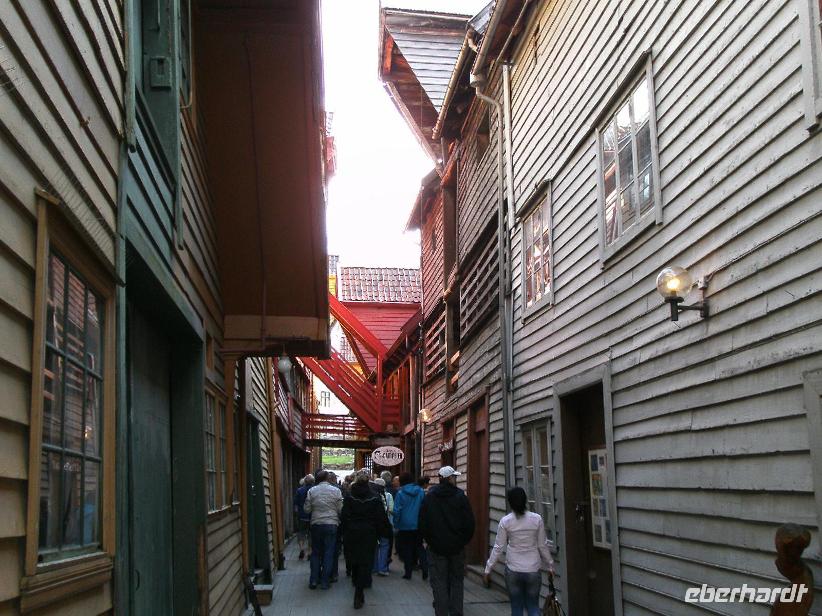 In Laerdal, dem Zentrum für Wildlachsfischerei, machen wir Mittagspause. Die Altstadt des kleinen Ortes ist ganz liebreizend. Und weitergehts, diesmal auf der Schneestraße, die ihrem Namen auch alle Ehre macht, vorbei am Stegastein (wo man eine großartige Aussicht über den Aurlandsfjord hat) und schließlich nach Bergen. So manch einer geht heute Abend noch einmal vor die Tür und erkundet das Nachtleben der Stadt.