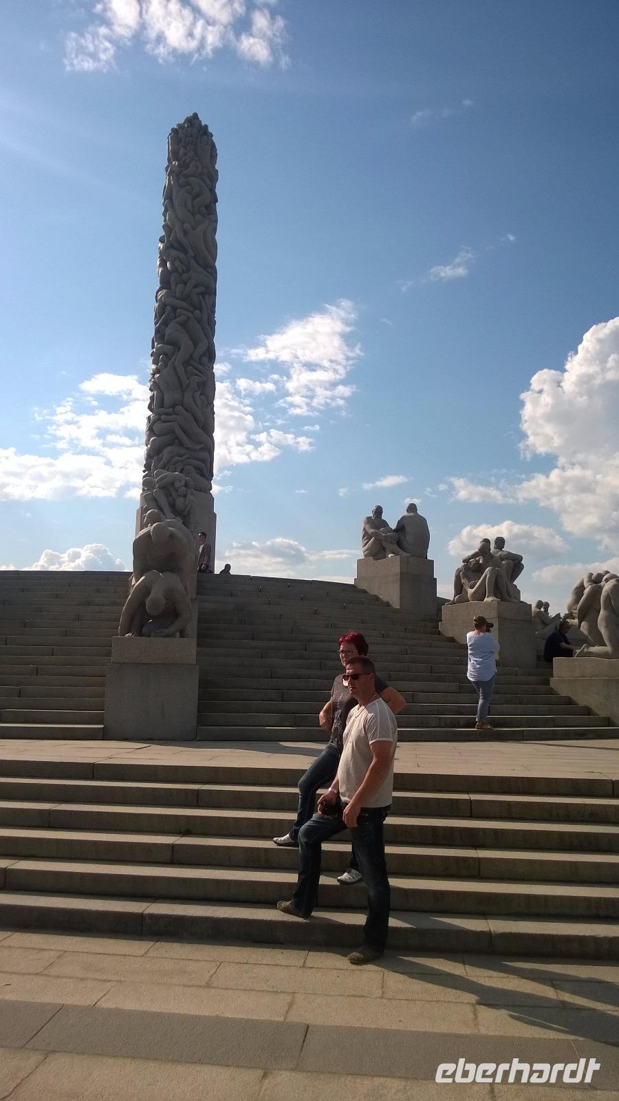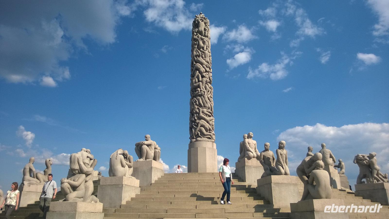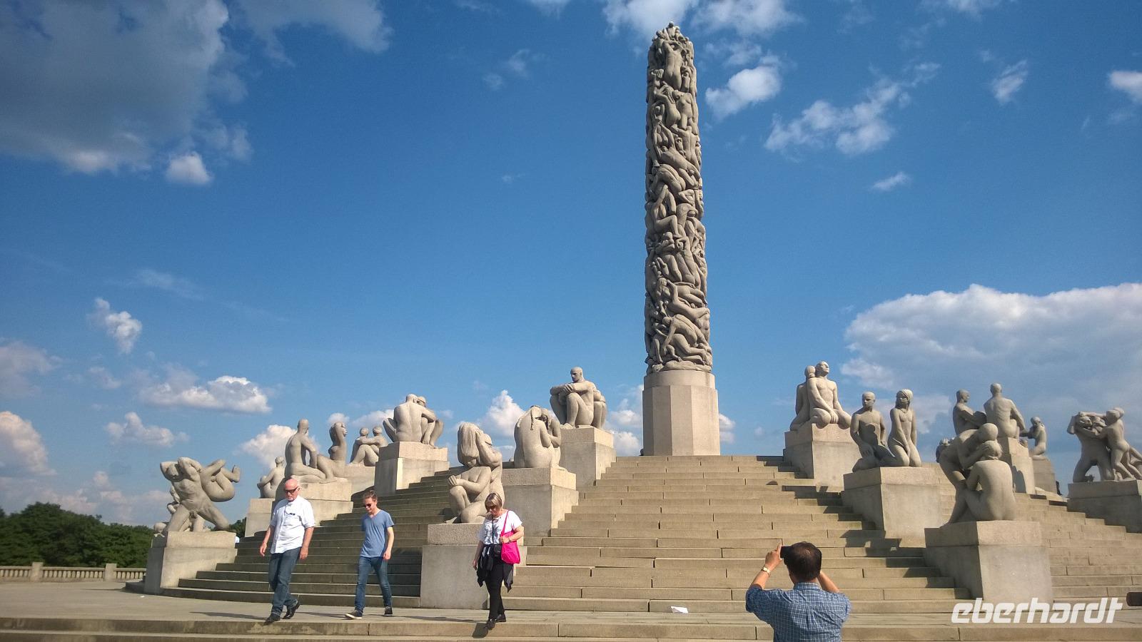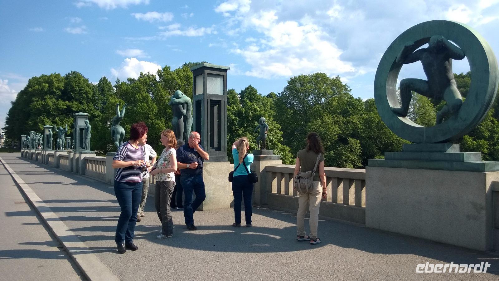 Schließlich müssen wir uns doch von dem Panorama trennen, denn Norwegen lockt. An der schwedischen Westküste entlang, einer beliebten Ferienregion, fahren wir, um dann über die Svinesundbrücke nach Norwegen einzureisen. In Oslo wartet dann auch schon unsere Stadtführerin Anna-Maria auf uns, welche mit uns ganz besonders die Oper, das Rathaus und den Vigelandspark erkundet. Auf unserem Spaziergang durch den Skulpturenpark ächzt und stöhnt so manch einer der Reisegäste, denn mit so einem guten Wetter hat man hier oben im Norden gar nicht rechnen wollen. 28 Grad Celsius traute man beim Kofferpacken dem Nordland einfach nicht zu.