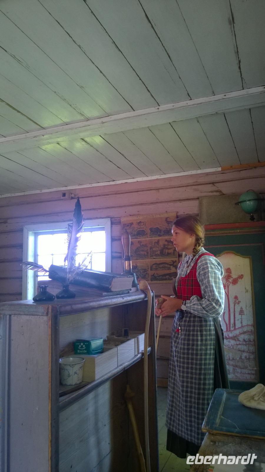 Als erster Programmpunkt steht heute das Freilichtmuseum Maihaugen im Plan. Dort werden wir von zwei volkstümlich gekleideten Norwegerinnen geführt und dürfen uns in den vielen alten Gebäuden anschauen, wie man im hohen Norden früher gelebt hat. So gerne wie jetzt ist wohl selten jemand zur Schule gegangen - wir wollen ja gar nicht wieder hinaus aus dem alten Schulgebäude und lernen fleißig das norwegische Alphabet.