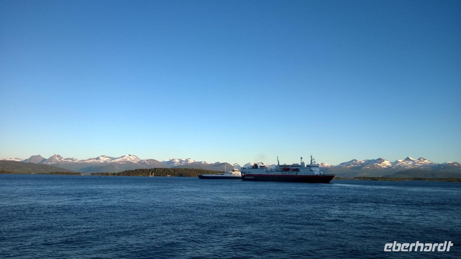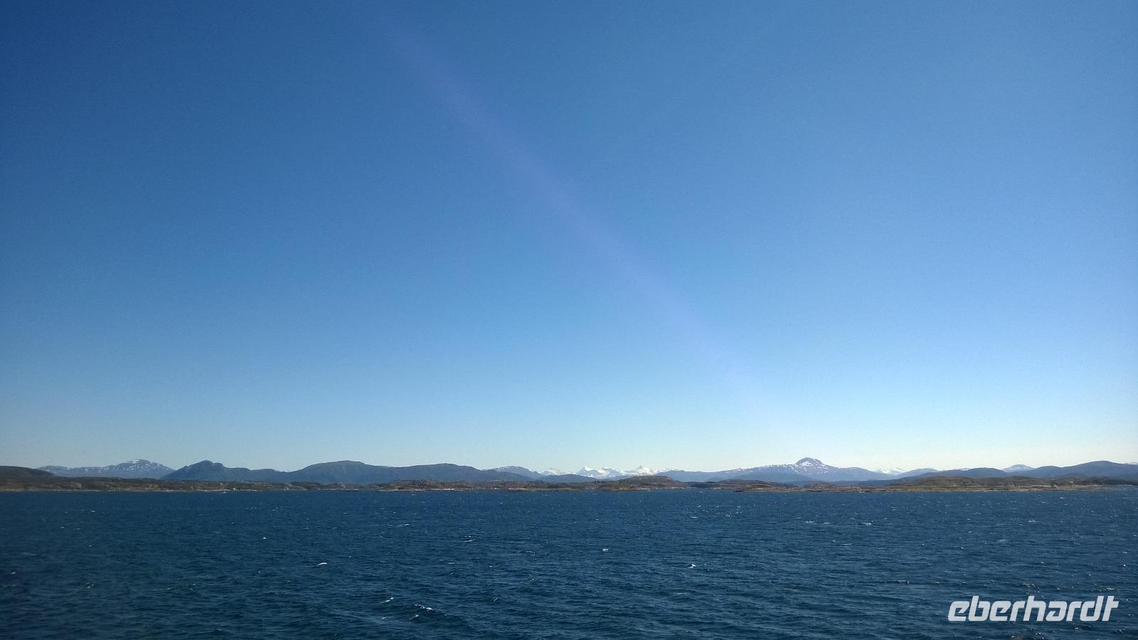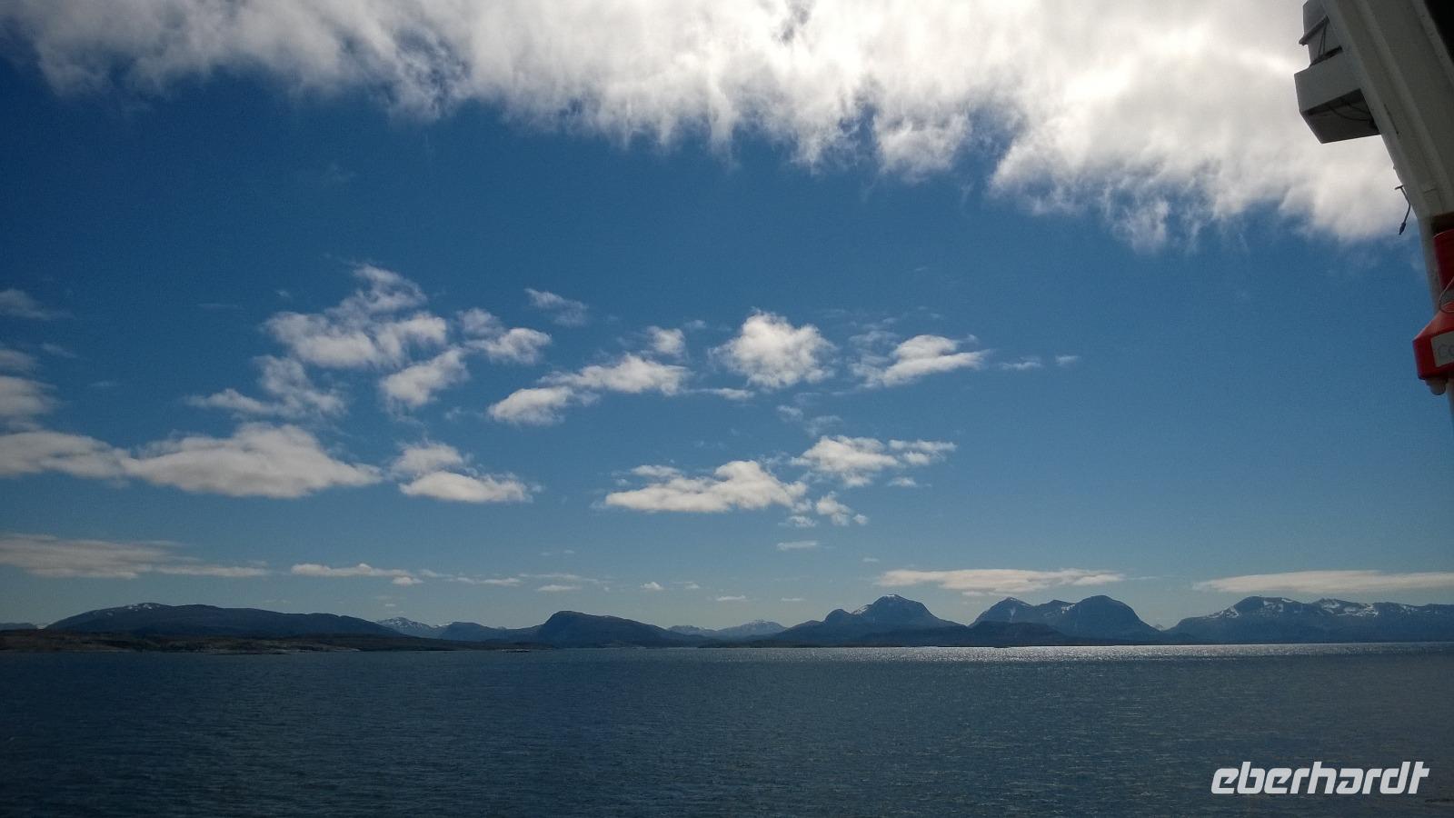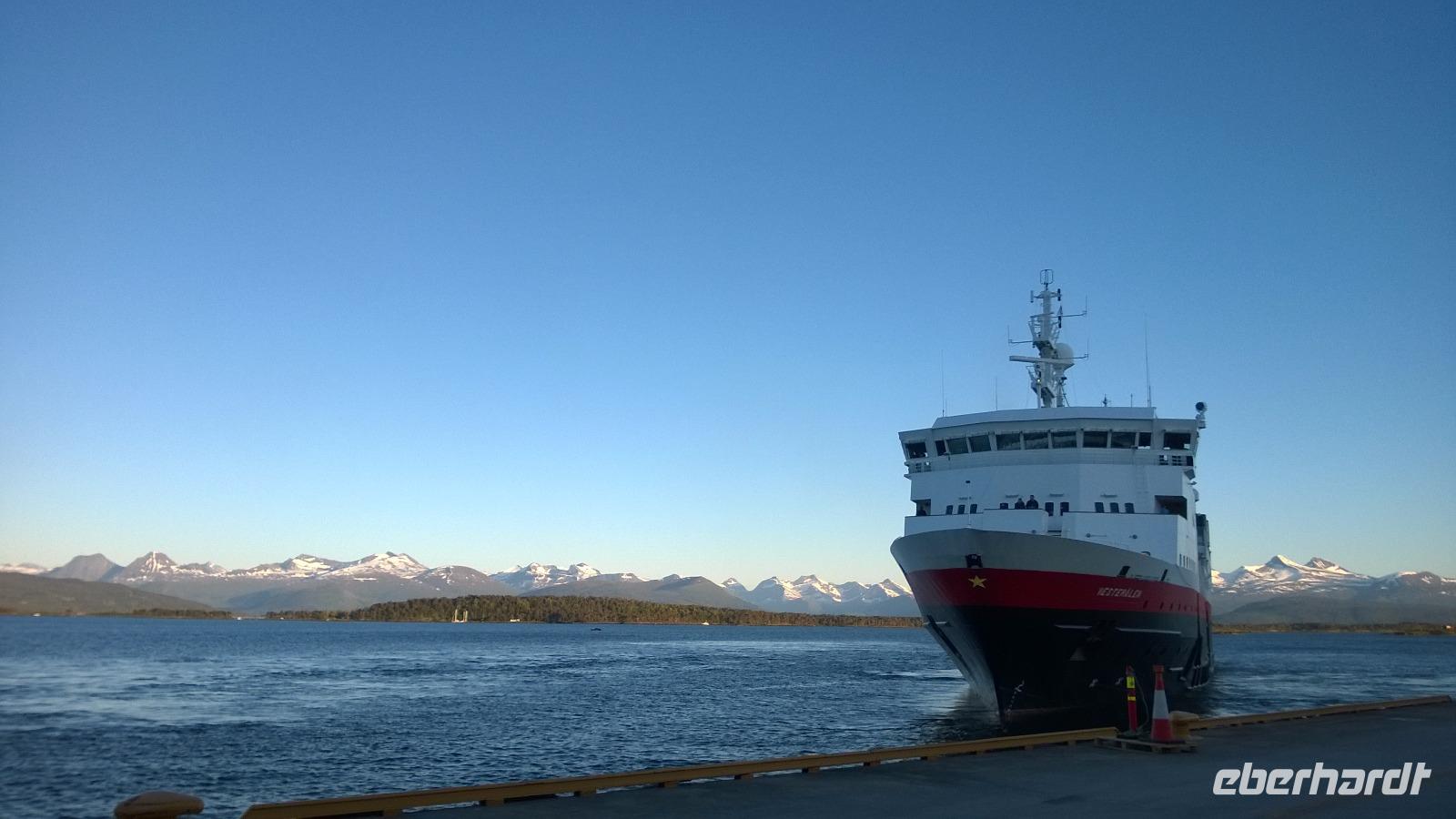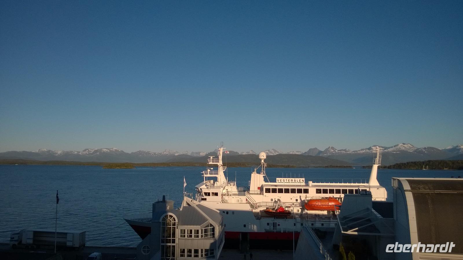 Pünktlich 10 Uhr legt dann die MS Vesteraalen in Trondheim ab. Eine Fahrt von gut sechs Stunden haben wir auf dem gemütlichen Postschiff vor uns. Die Aussicht ist großartig - da lässt man lieber die Bilder für sich sprechen.