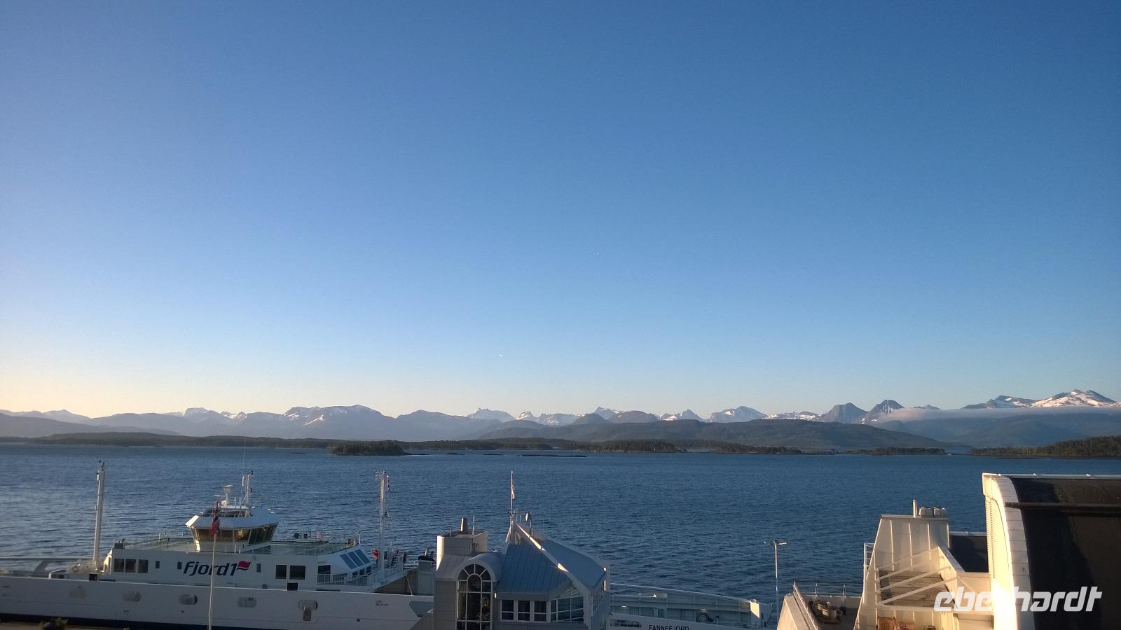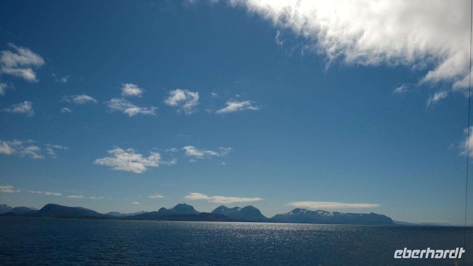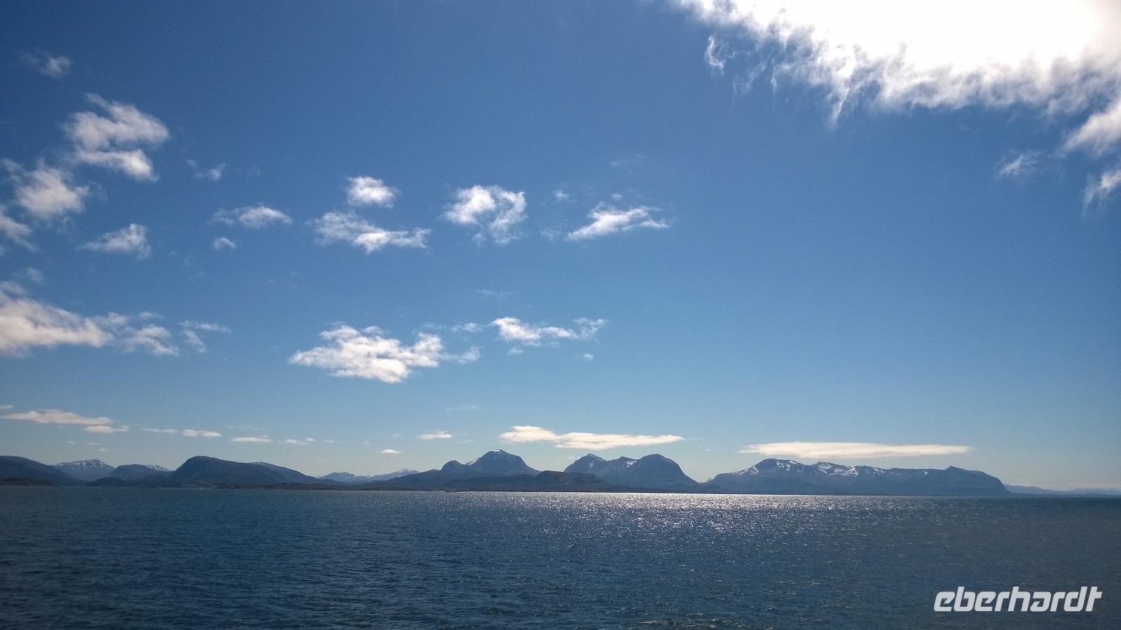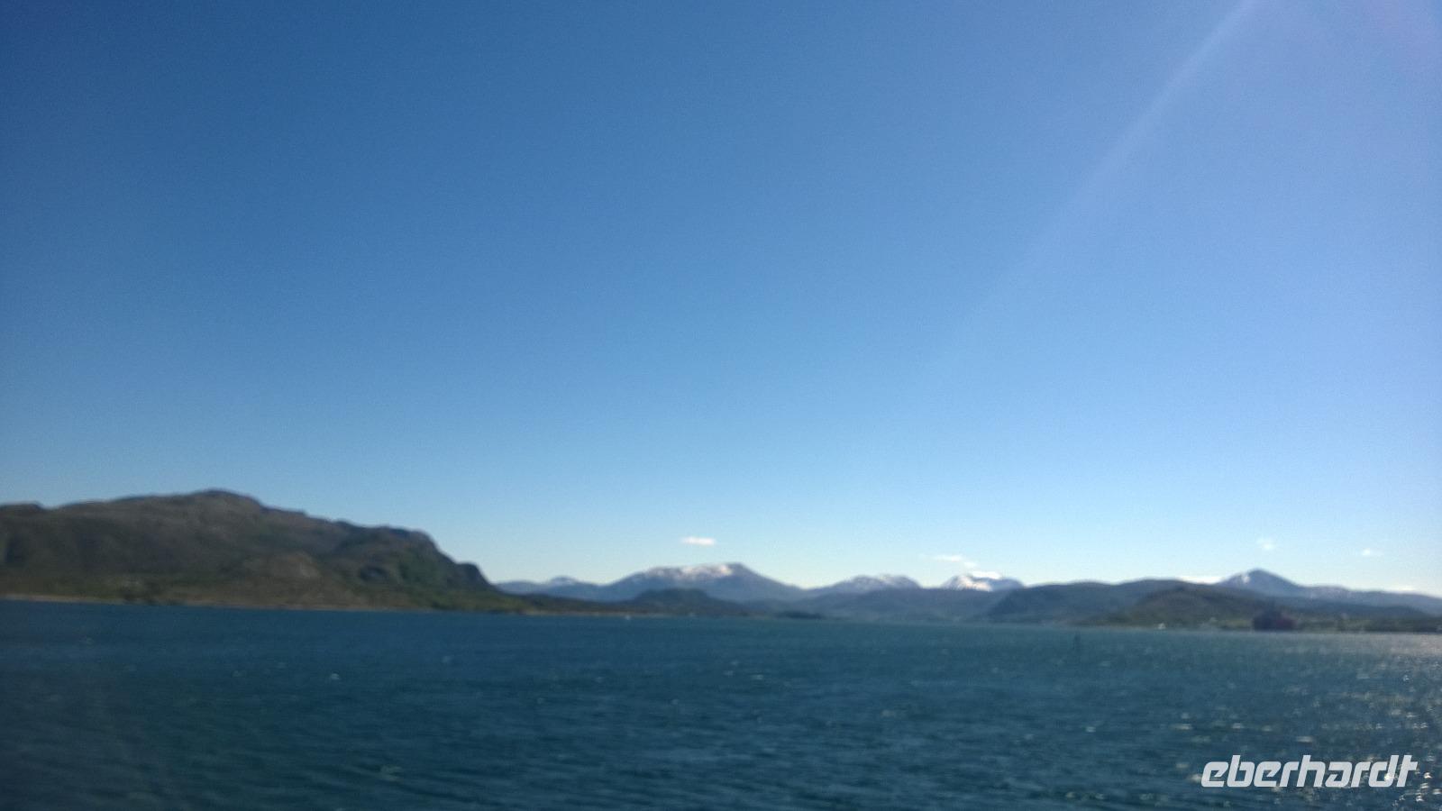 Pünktlich 10 Uhr legt dann die MS Vesteraalen in Trondheim ab. Eine Fahrt von gut sechs Stunden haben wir auf dem gemütlichen Postschiff vor uns. Die Aussicht ist großartig - da lässt man lieber die Bilder für sich sprechen.