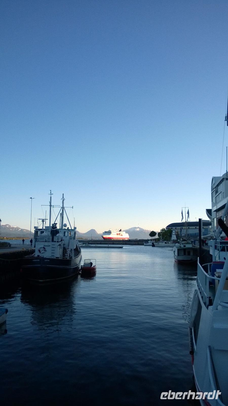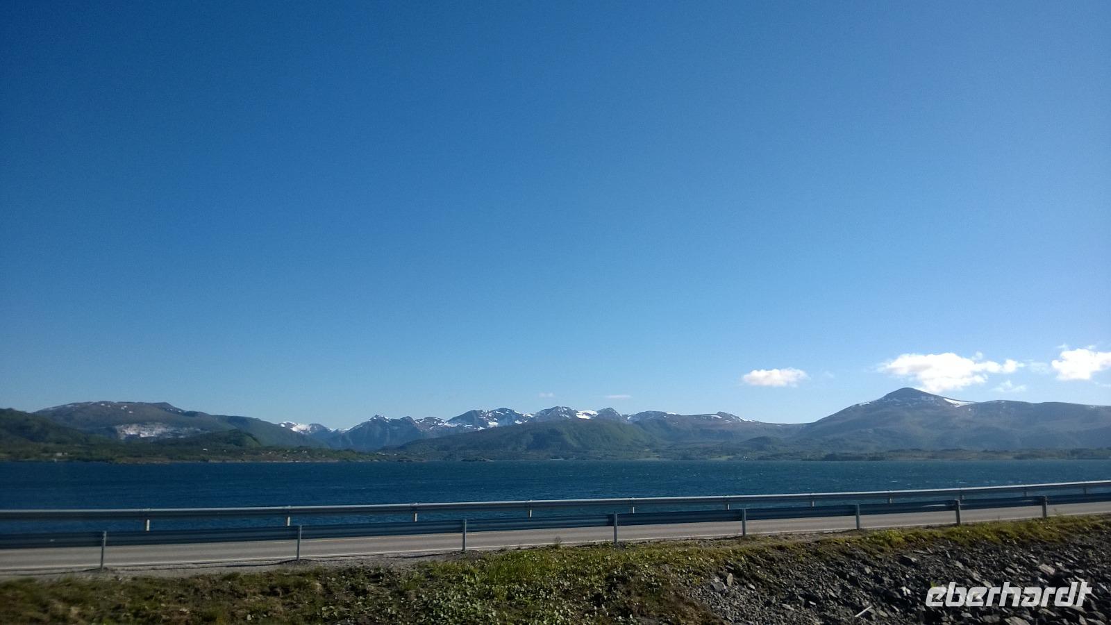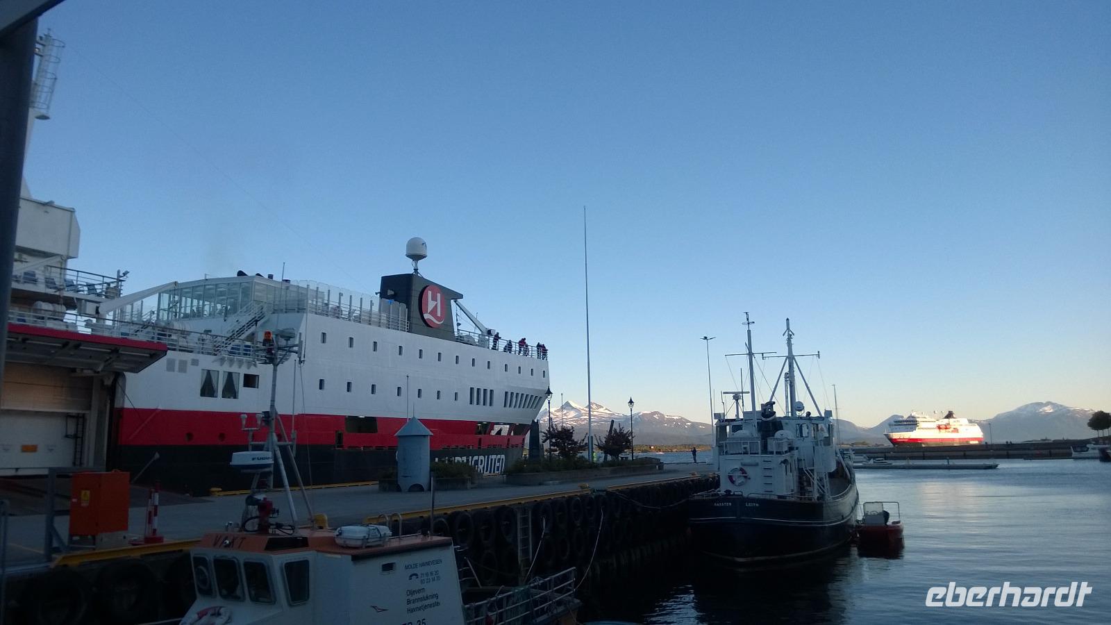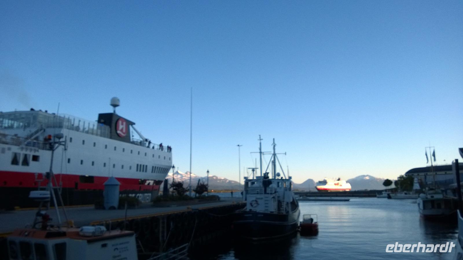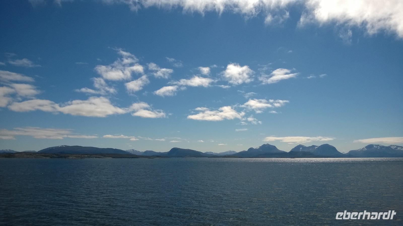 Pünktlich 10 Uhr legt dann die MS Vesteraalen in Trondheim ab. Eine Fahrt von gut sechs Stunden haben wir auf dem gemütlichen Postschiff vor uns. Die Aussicht ist großartig - da lässt man lieber die Bilder für sich sprechen.