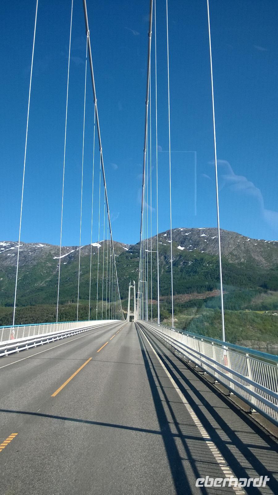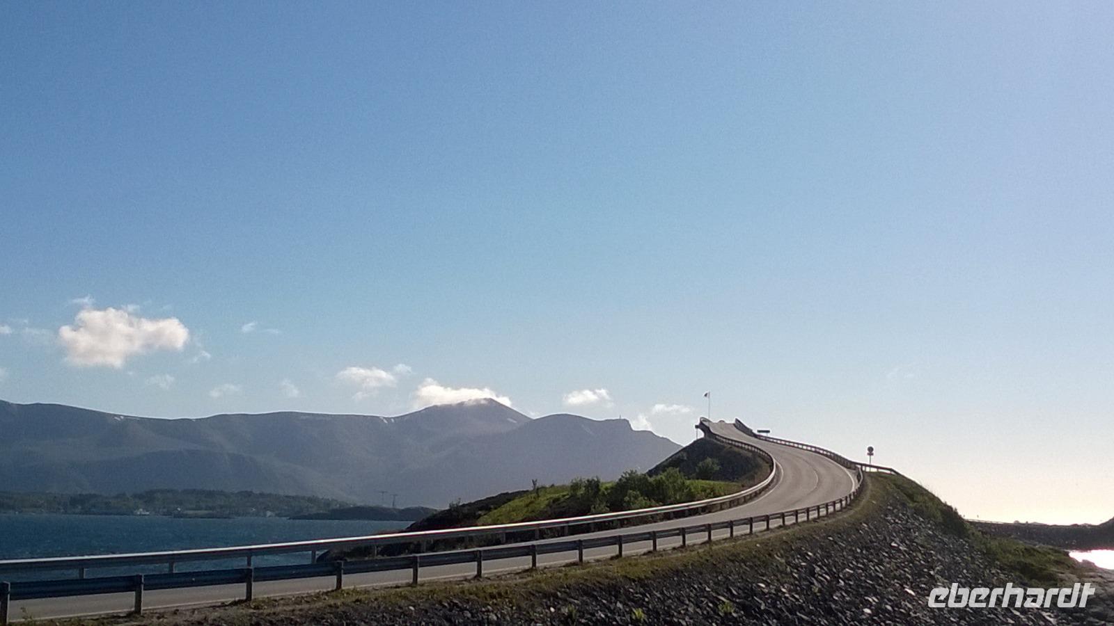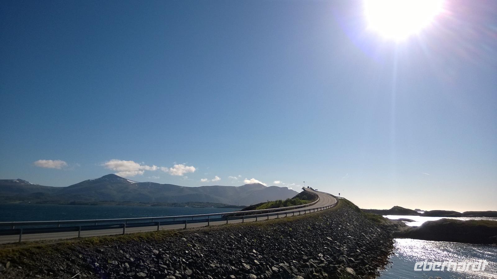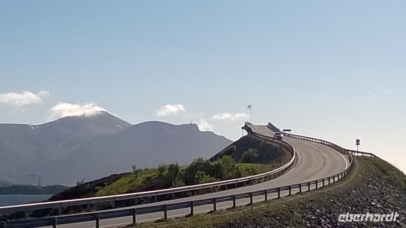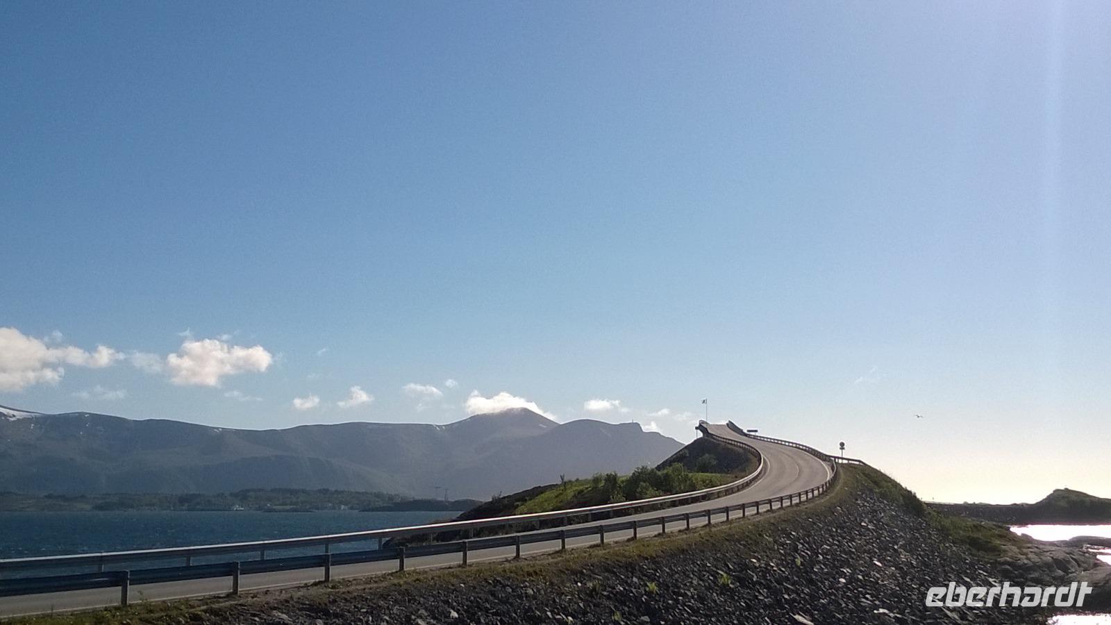 Am Nachmittag legen wir in Kristiansund an, statten noch fix dem Klippfischweib einen Besuch ab und sausen dann über die Atlantikstraße nach Molde. So nah am Atlantik, über und unter dem Wasser führt selten eine Straße entlang und wir genießen die Fahrt - auch wenn die Piste manchmal eher an eine Achterbahn erinnert, wo nur noch die Loopings fehlen.