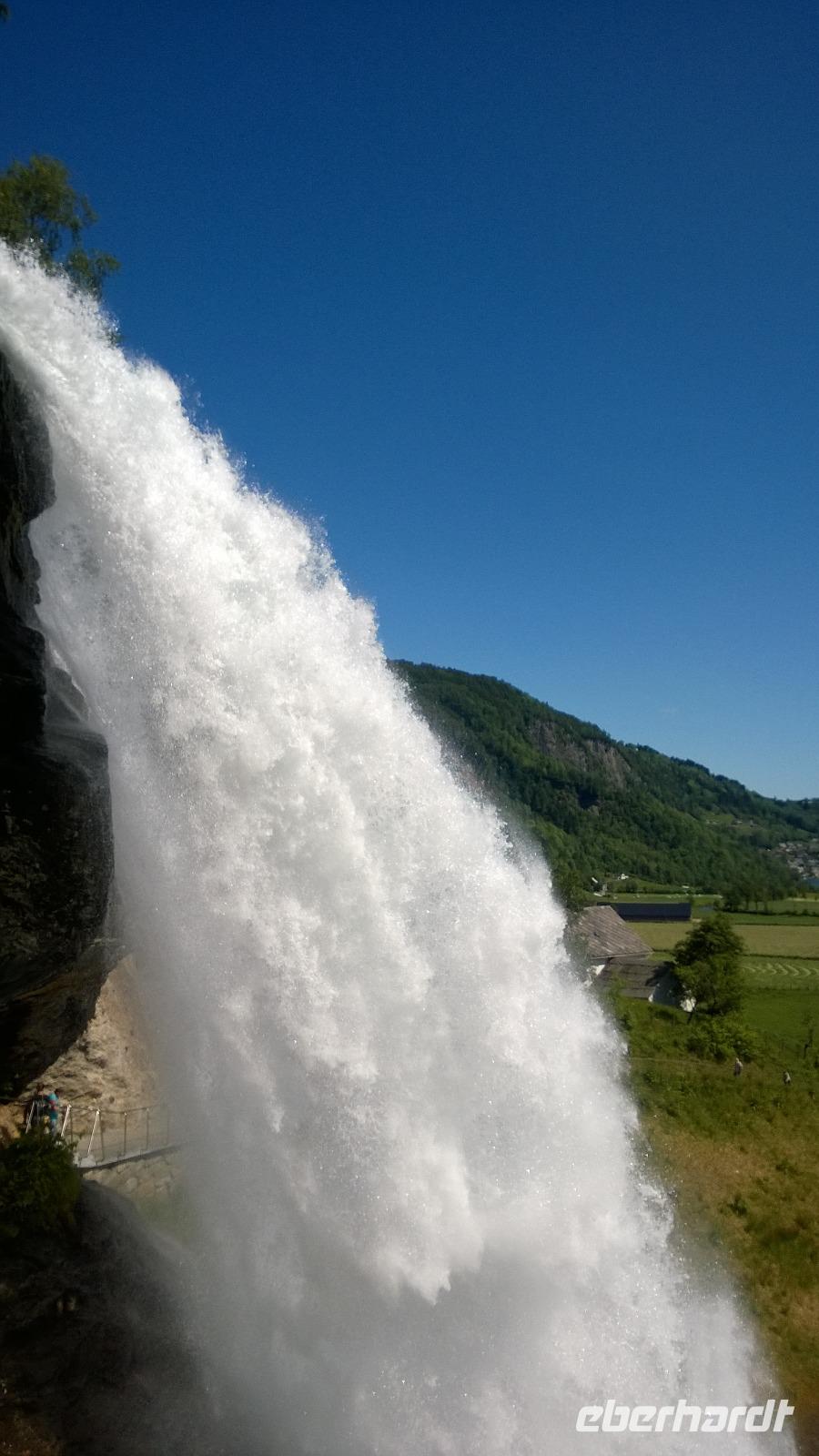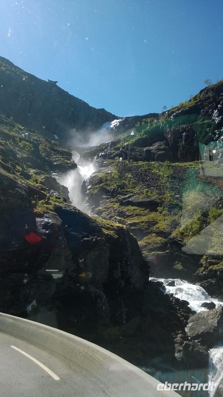 Heute ist übrigens auch der Tag der Wasserfälle. Der Steindalsfossen, bei welchem wir unsere Mittagspause einlegen, ist von hinten begehbar und beeindruckt durch seine Größe.
