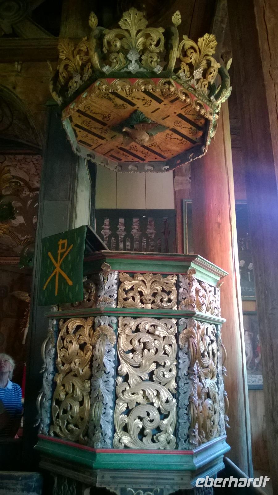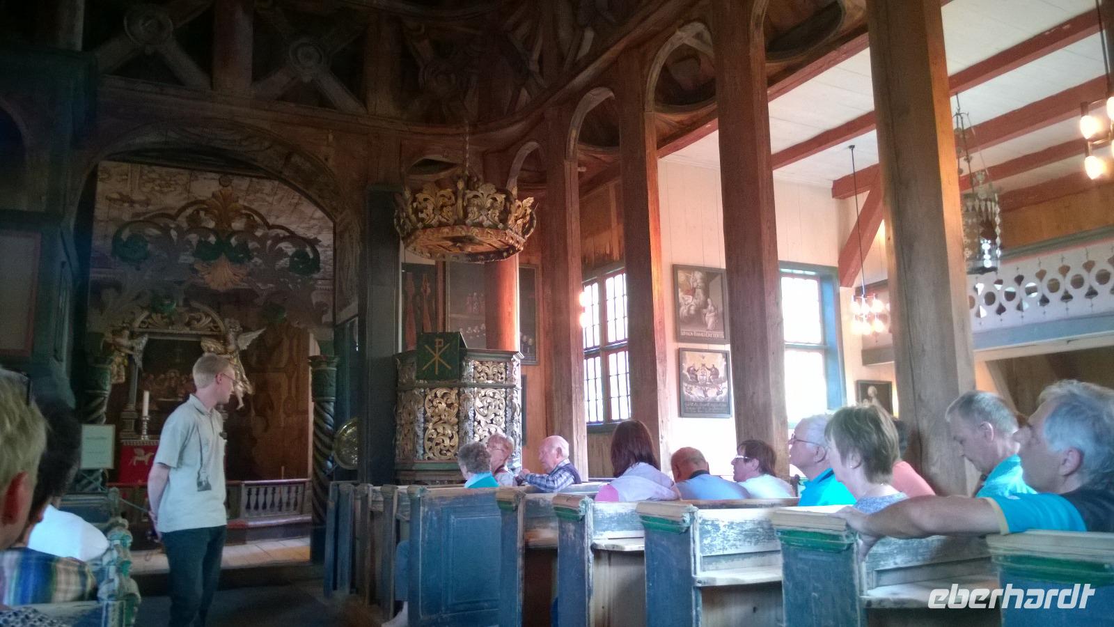 Am späten Nachmittag besichtigen wir noch die eindrucksvolle Stabkirche zu Lom. Vemund gibt uns eine sehr gute Führung und wir staunen nicht schlecht - sowohl über sein astreines Deutsch, als auch über die vielen Informationen über die Stabkirchenarchitektur.