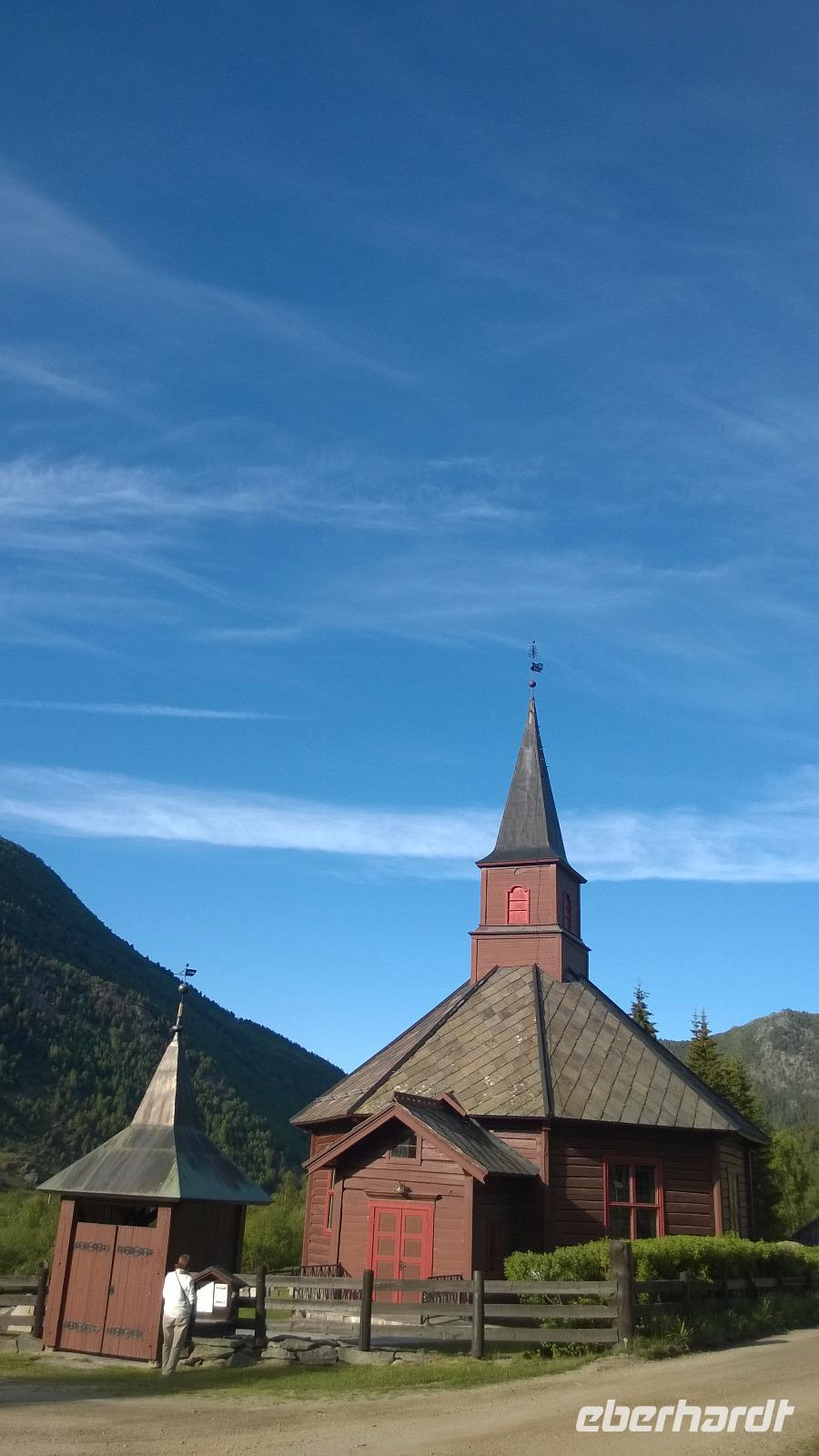 Unser nächster Halt ist zum Mittag an der Stabkirche von Ringebu. Geöffnet ist leider nicht, aber einen Anblick ist eine der wenigen 28 erhaltenen Stabkirchen schon wert.
