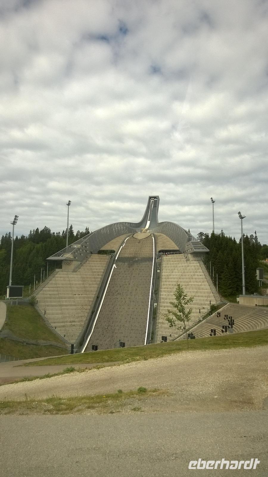 An unserem vorletzten Reisetag verabschieden wir uns von Norwegen. Aber zunächst begutachten wir noch die Holmenkollen-Skisprunganlagen in Oslo. Der Blick über die Stadt ist auch einmalig gut. Das ist doch für einen Abschied angemessen.