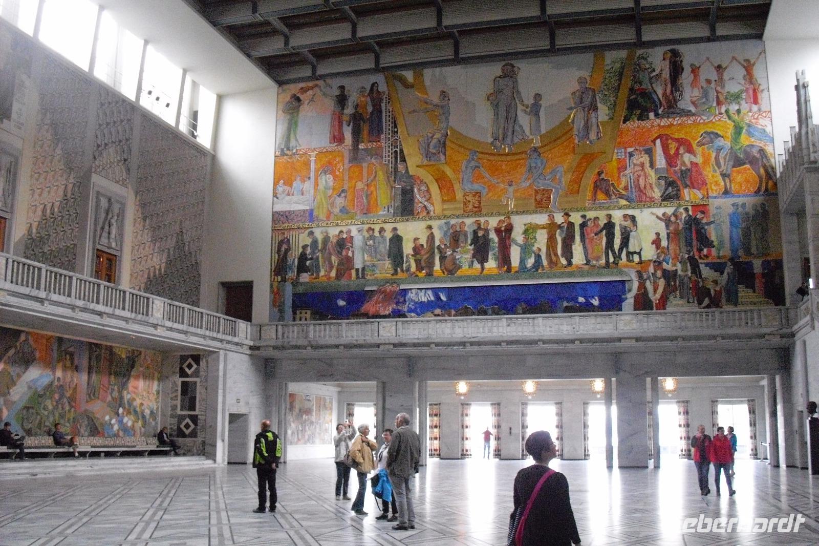 Das Frühstück auf der Fähre wurde ab 7.00 Uhr angeboten. Auch hier gab es wieder ein gut gefülltes Büffett, das keine Wünsche offen ließ. Während des Frühstücks konnten einige Gäste beim Schauen aus dem Fenster (den Luken) das Einlaufen des Schiffes durch die schwedische Schärenlandschaft geniessen. Pünktlich legte das Schiff in Göteborg an und wir konnten mit unserem Bus bei feuchtem schwedischen Sonnenschein nach Oslo starten. Hier in Oslo erwartete uns Angelika, die uns als örtliche Stadtführerin ihre Stadt zeigte. Wir trafen sie an der Akershus Festung, die eine mehr als 700-jährige Geschichte hat und auch heute noch vom Militär genutzt wird. Wir sahen die neue Stätte für Oper, Ballett und Konzerte - Den Norske Opera & Ballett, wir sahen Det Kongelige Slott - die zwischen 1824 und 1848 erbaute königliche Residenz. Angelika zeigte uns das Rathaus von Oslo, wo jährlich am 10. Dezember der Friedensnobelpreis verliehen wird. Wir fuhren am Ibsen-Museum vorbei, seiner Wohnung in der er die letzten Lebensjahre verbrachte und wir bewegten uns zu Fuß durch den Vigelandpark, ein einzigartiger Skulpturenpark als Lebenswerk des Bildhauers Gustav Vigeland. Nach diesem eindrucksvollen Besuch der mehr als 200 Skulpturen in einer der meistbesuchten touristischen Attraktionen Norwegens verabschiedete sich Angelika von uns. Wir machten noch eine kleine "Erholungspause" und fuhren anschließend nach Hamar. Hier erwartete uns das Hotel mit dem Abendessen und dem Bett für jedes müde Haupt.