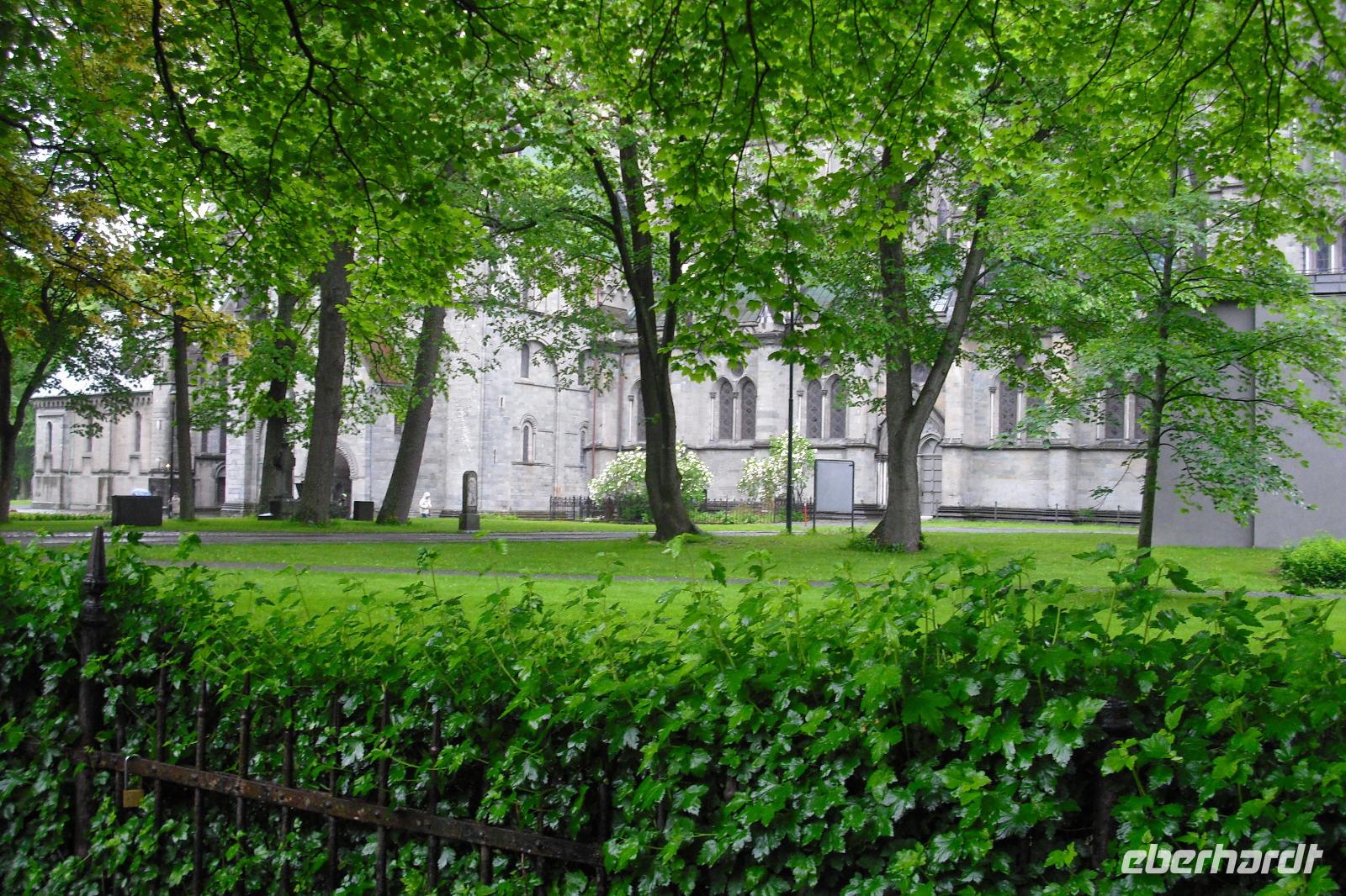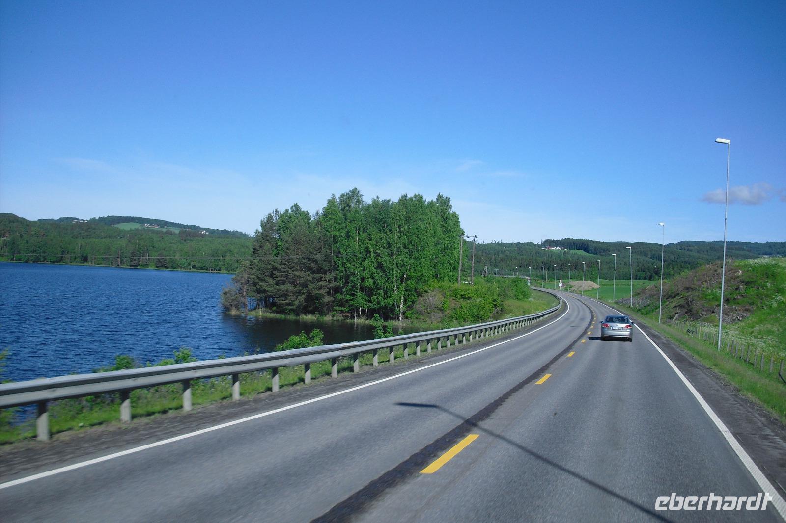 Das Wetter bot einen vorzüglichen Tagesauftakt, das Frühstück auch und dann fuhren wir am größten norwegischen Binnensee - dem Mjoesasee - entlang nach Lillehammer. Unterwegs durfte natürlich bei herrlichem Sonnenschein ein Fotostopp gemacht werden. Dann erwarteten uns das Freilichtmuseum Maihaugen in Lillehammer und dort zwei ausgezeichnete Gästeführerinnen zu einer Tour durch ausgewählte Teile des Freilichtmuseums. Dieser vergegenständlichte Teil regionaler norwegischer Geschichte ist der unermüdlichen Arbeit eines Zahnarztes, nämlich Anders Sandvig, zu verdanken. Er "sammelte" Historie und ließ sie auf seinem Anwesen wieder aufbauen. Als 1904 alles zu klein wurde, stellte die Stadt Lillehammer das jetzige Areal zur Verfügung und es wurde ein Museum eröffnet. Der Besuch der Kirche: Unglaublich! Der Besuch der Schule: Unglaublich! Der Besuch im einfachen Haus: Unglaublich! Eine richtig gut geführte Tour durch eine wahrhaftig mit Liebe zusammengestellte Zeitepoche im Gudbrandstal Norwegens. Die Olympia-Schanze in Lillehammer lockte uns anschließend noch zu einem Fotostopp. In Ringebu mit einer sehr, sehr schönen Stabkirche war unsere Mittagspause vorgesehen. Aber: Es war gerade eine große Hochzeitsfeier angesagt und für unseren Bus und uns 43 "Zusatzgästen" einfach kein Platz mehr. Ein paar Fotos waren möglich und dann verlegten wir die Pause an die E 6. Tische, Bänke, Sonnenschein - so wie hier sollte es nicht jeden Tag werden. Mit einer längeren Pause in Dombas, einem Fotostopp auf dem Dovrefjell und einer notwendigen Entspannungspause in Oppdalporten gelangten wir zu einer angemessenen Zeit im Hotel in Trondheim an. Nach dem Abendessen schafften es einige Reisegäste noch einen Abendspaziergang zum nahegelegenen Nidarosdom zu machen.