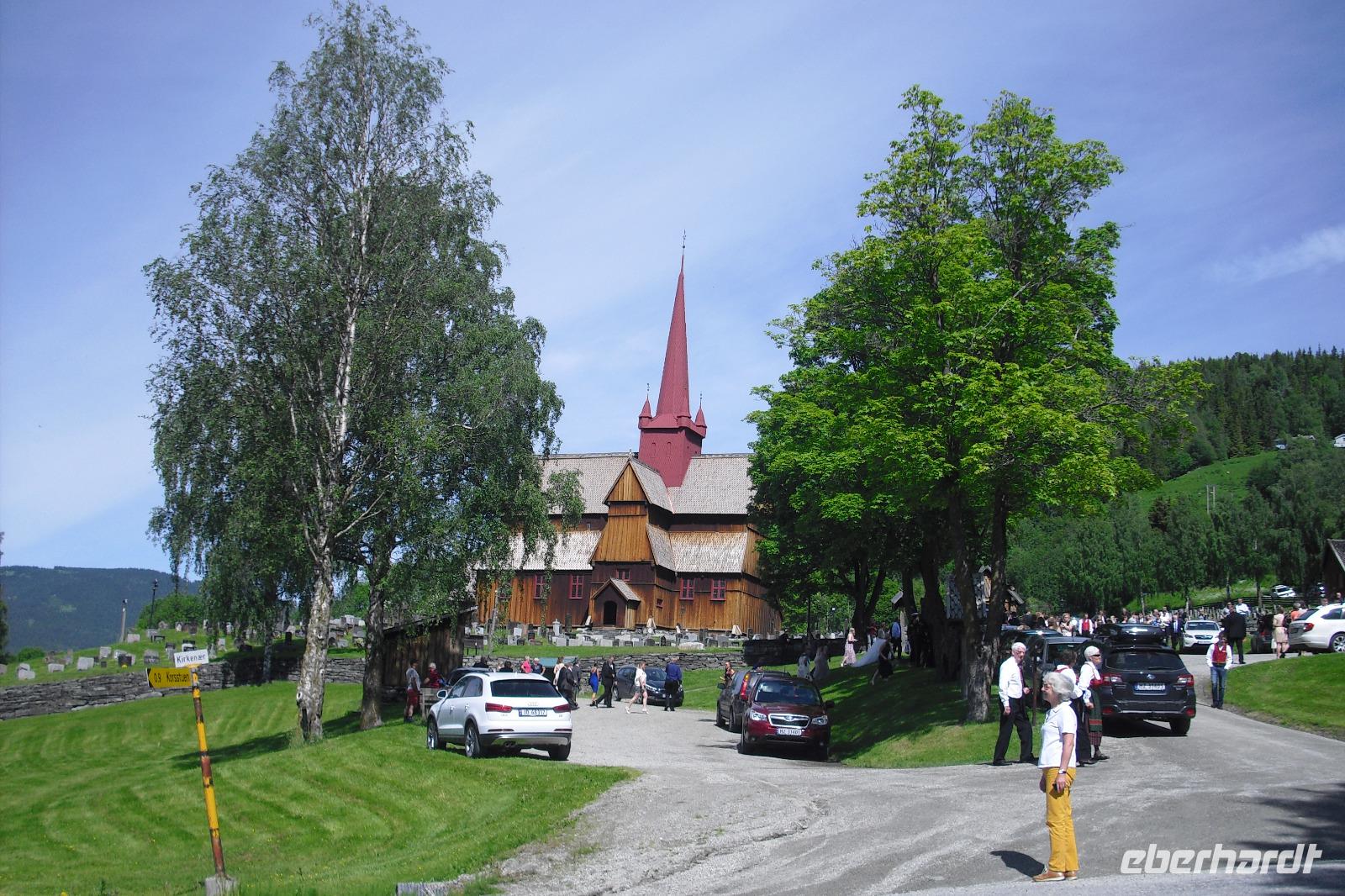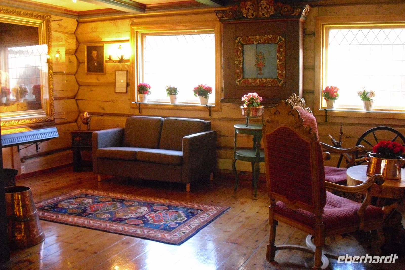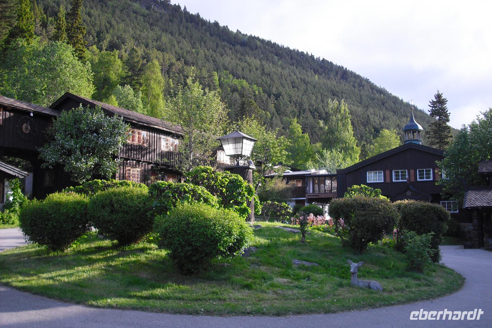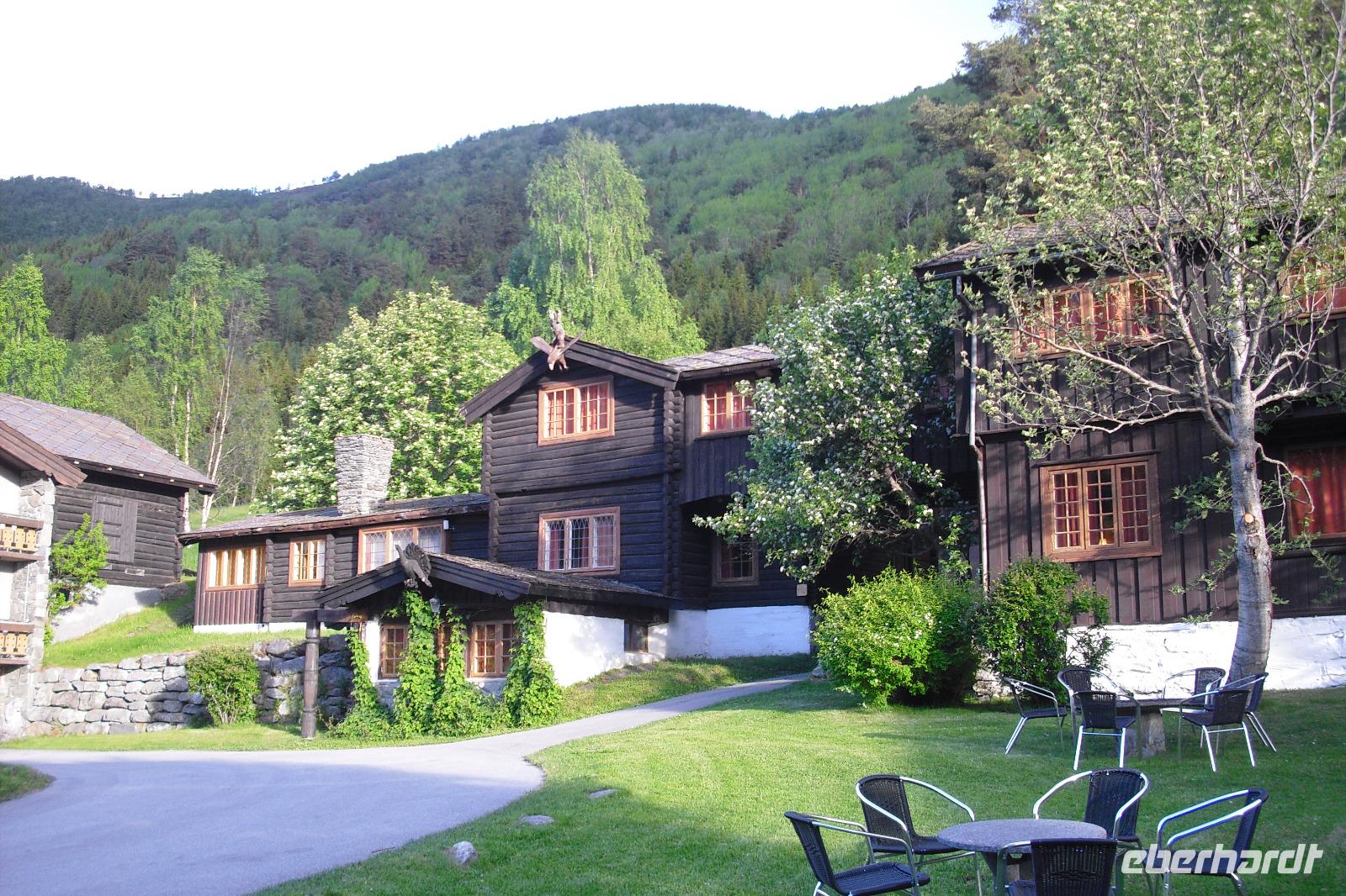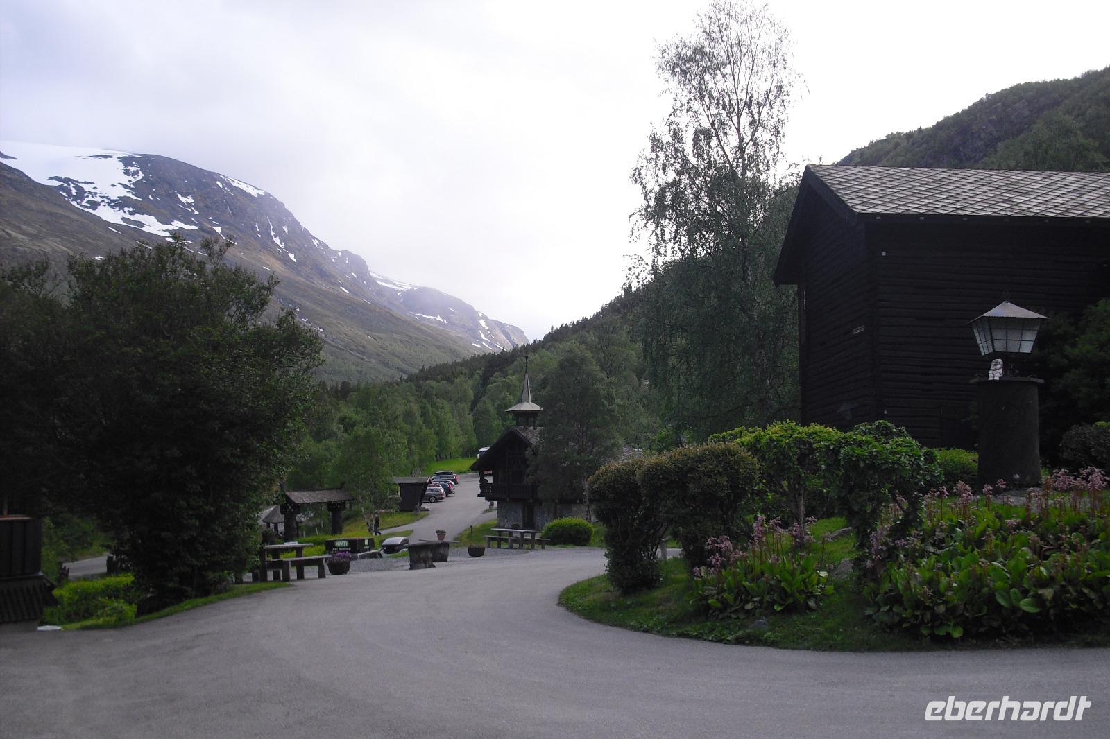 Wie täglich zuvor begann der Tag mit dem Frühstück. Dann verließen wir Alesund, setzten mit einer Fähre am Storfjorden über und erreichten Hellesylt. Von hier aus machten wir eine kleine Kreuzfahrt auf dem Geirangerfjord. Dieser Fjord ist so etwas wie eine Perle unter den Fjorden Norwegens. Nicht zuletzt deshalb wurde dieser Meeresarm von der UNESCO in die Liste des Weltkulturerbes aufgenommen. Aus Lautsprechern wurde mehrsprachig(auch deutsch) erläutert, wie die tosenden Wasserfälle heissen, wie die Bauern früher auf den einsam anmutenden Höfen an steilen Hängen lebten und so war es doch sehr kurzweilig. Angekommen in Geiranger bot sich in dem kleinen, aber quirligen Touristenort ein Aufenthalt an. Unsere Weiterfahrt brachte uns nach Lom. Dieser Ort erhielt den Status eines Nationalparkdorfes und gilt als Tor zu den Nationalparks Jotunheimen, Reinheimen und Breheimen. Hier besuchten wir eine für Norwegen charakteristische Stabkirche. Der deutschsprechende Lars führte uns um die und in der Kirche. Er erläuterte sehr gut die Geschichte der Kirche und ihre besondere Bauweise. Kennzeichnend für Stabkirchen, die in der Regel aus dem 12. Jh. stammen, sind die senkrecht stehenden Holzstäbe auf denen die Dachkonstruktion lagert. Bei Blockbauten liegt das Holz weitgehend horizontal. Gut ließ sich das von außen erkennen. Von Lom starteten wir zum nächsten Übernachtungsort, dem Elveseter-Hotel. Wir nächtigten in norwegischer Geschichte, wir wohnten wie in einem Museum, wir verbrachten den Abend und die Nacht in einem ganz besonderen Flair - wow. Trotzdem gab es natürlich ein Abendessen und morgens ein Frühstück.