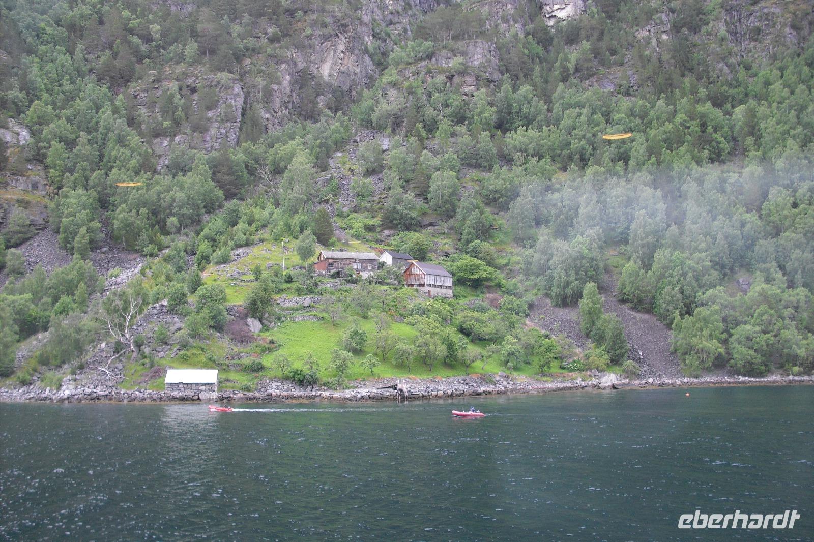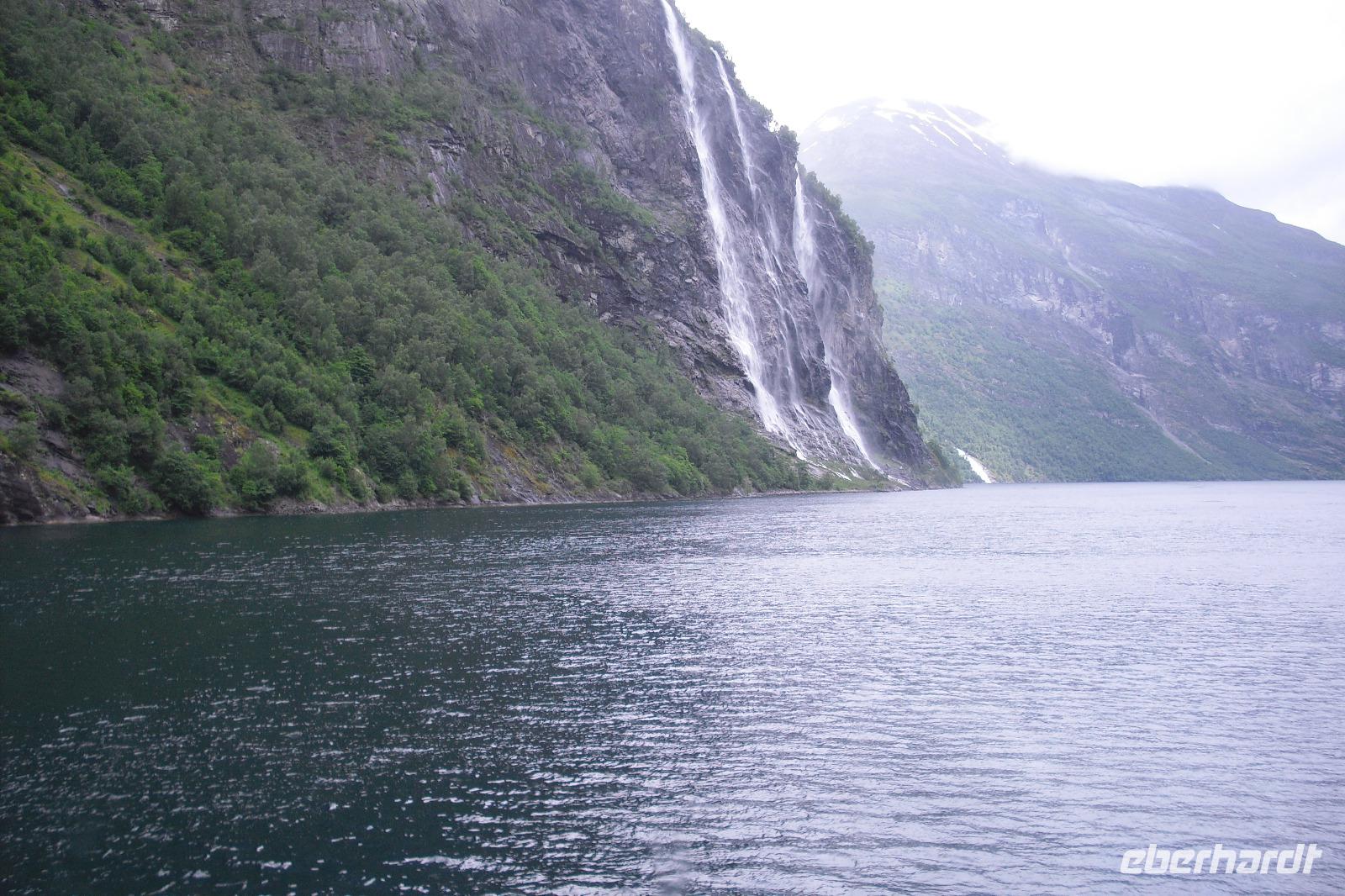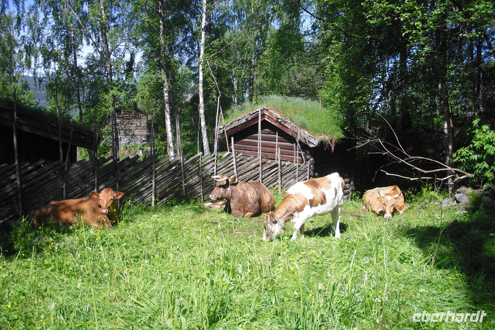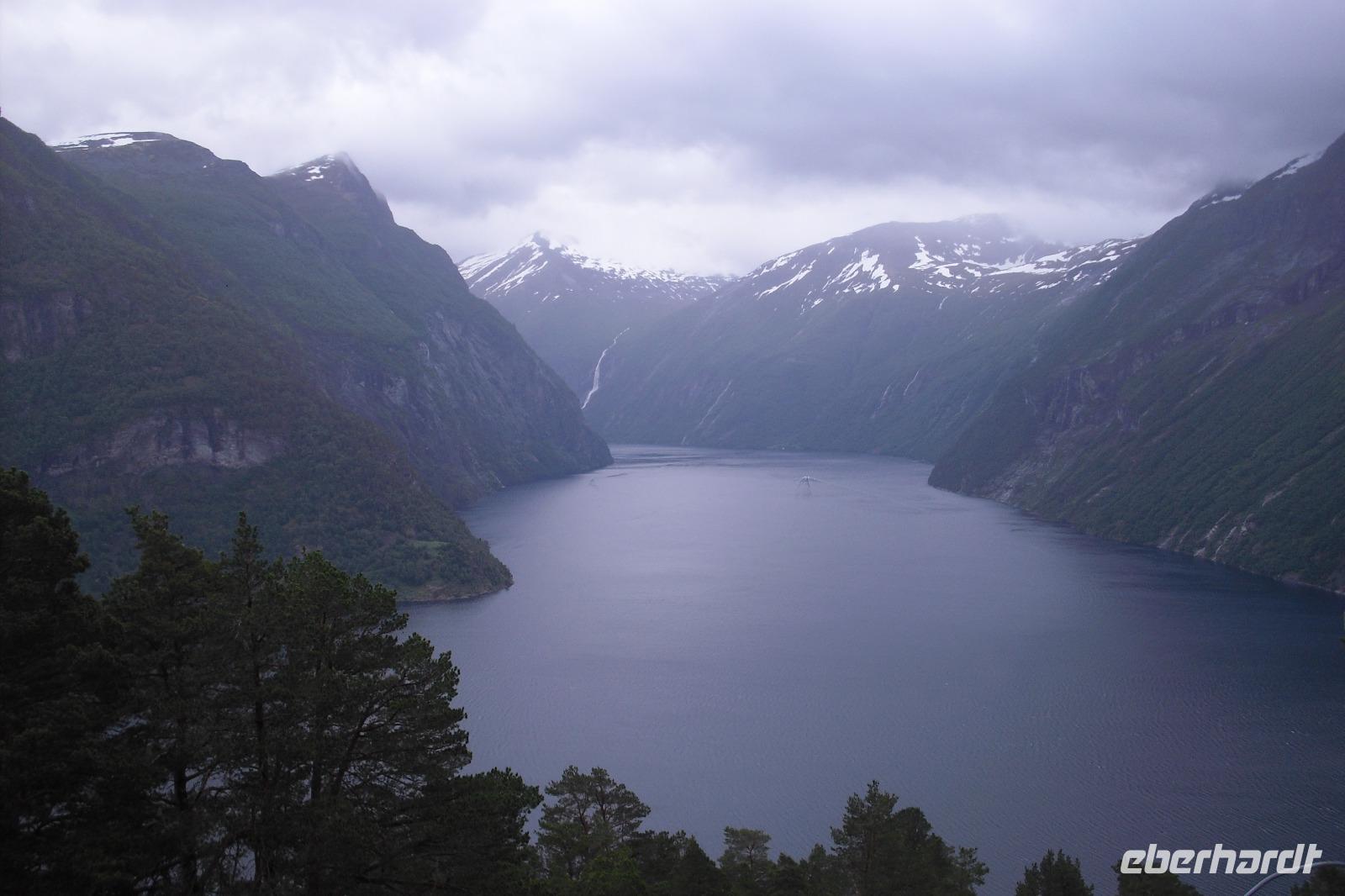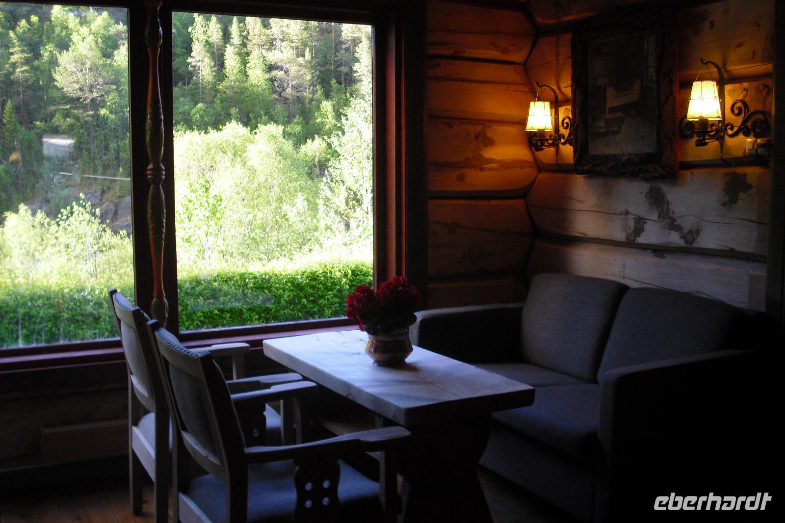 Wie täglich zuvor begann der Tag mit dem Frühstück. Dann verließen wir Alesund, setzten mit einer Fähre am Storfjorden über und erreichten Hellesylt. Von hier aus machten wir eine kleine Kreuzfahrt auf dem Geirangerfjord. Dieser Fjord ist so etwas wie eine Perle unter den Fjorden Norwegens. Nicht zuletzt deshalb wurde dieser Meeresarm von der UNESCO in die Liste des Weltkulturerbes aufgenommen. Aus Lautsprechern wurde mehrsprachig(auch deutsch) erläutert, wie die tosenden Wasserfälle heissen, wie die Bauern früher auf den einsam anmutenden Höfen an steilen Hängen lebten und so war es doch sehr kurzweilig. Angekommen in Geiranger bot sich in dem kleinen, aber quirligen Touristenort ein Aufenthalt an. Unsere Weiterfahrt brachte uns nach Lom. Dieser Ort erhielt den Status eines Nationalparkdorfes und gilt als Tor zu den Nationalparks Jotunheimen, Reinheimen und Breheimen. Hier besuchten wir eine für Norwegen charakteristische Stabkirche. Der deutschsprechende Lars führte uns um die und in der Kirche. Er erläuterte sehr gut die Geschichte der Kirche und ihre besondere Bauweise. Kennzeichnend für Stabkirchen, die in der Regel aus dem 12. Jh. stammen, sind die senkrecht stehenden Holzstäbe auf denen die Dachkonstruktion lagert. Bei Blockbauten liegt das Holz weitgehend horizontal. Gut ließ sich das von außen erkennen. Von Lom starteten wir zum nächsten Übernachtungsort, dem Elveseter-Hotel. Wir nächtigten in norwegischer Geschichte, wir wohnten wie in einem Museum, wir verbrachten den Abend und die Nacht in einem ganz besonderen Flair - wow. Trotzdem gab es natürlich ein Abendessen und morgens ein Frühstück.