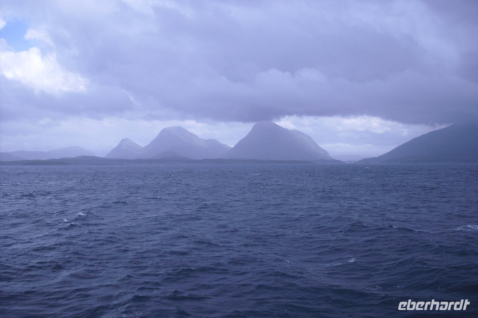 Da es ein Sonntag war, begann das Frühstück um 7.30 Uhr. Nach dem Frühstück statteten wir einer architektonischen Perle Norwegens einen Besuch ab und fuhren zum Nidarosdom. Ab 1077 errichtet, war er bis zur Reformation im 16.Jahrhundert Pilgerziel für Gläubige aus ganz Skandinavien. Hier sind auch die Kronjuwelen und weitere Insignien der königlichen Familie aufbewahrt. Es war ein Kurzbesuch denn uns erwartete das älteste Schiff der Hurtigrutenflotte, M/S Lofoten, zu einer Fahrt entlang der norwegischen Küstenlandschaft nach Kristiansund. Allein die Wetterbedingungen waren nicht gerade optimal, um die Herrlichkeit der etwa 900 m hohen Berge bei Tustna sowie Holme und Schären mit ihrer majestätischen Schönheit richtig aufnehmen zu können. Als wir in Kristiansund anlangten kam allerdings die Sonne heraus und wir konnten noch einen Spaziergang zur Klippfischfrau unternehmen. 1691 begann ein Niederländer, Jappe Ippes, mit dem Trocknen von Klippfisch. Die umliegenden Felsen waren dafür ideal geeignet und so avancierte Kristiansund zur "Klippfischstadt". Heute ist die Stadt auch Stützpunkt für die Erdgas- und Ölförderung. Von Kristiansund sind wir dann zur und über die berühmte Atlantikstraße gefahren, nicht ohne dort einen Stopp zu machen. Ein 550 m langer Aussichtsweg lud zu einem Rundgang ein, der allerdings von stürmischem Wind und Regenschauern begleitet wurde. Wir waren eben am Atlantik. Der wohl schönste Abschnitt der Atlantikstraße besteht aus acht Brücken mit insgesamt 891 m Länge, die sich von Insel zu Insel aus der Landschaft erheben. Baubeginn war für dieses spektakuläre, jedoch nicht unumstrittene Bauwerk 1983. Die Bauzeit betrug 6 Jahre und schon 1999 waren die Baukosten über die Maut abgezahlt. Heute zählt die Atlantikstraße zu den 10 meistbesuchten touristischen Attraktionen in Norwegen. Wir fuhren nun weiter nach Molde, der Stadt der Rosen. Hier bezogen wir das Hotel und bekamen recht schnell unser Abendessen. Das Wetter am Abend hatte noch eine sehr, sehr schöne romantische Sonnenphase für uns parat - wow.