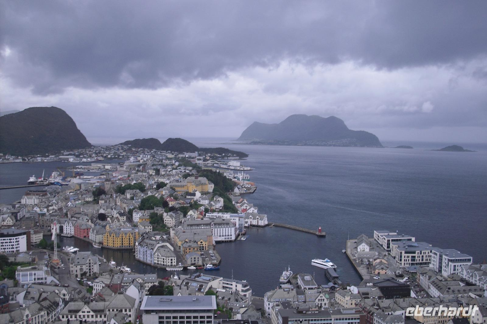 Das Frühstück einzunehmen war ab 6.30 Uhr möglich. Später starteten wir mit einem kleinen Morgenspaziergang durch Molde. Wenigstens einige fotografische bzw. optische Eindrücke sollte doch diese schöne Stadt bei uns hinterlassen. So besuchten wir den Rosengarten auf dem Dach des Rathauses und waren zugleich an der 1957 eingeweihten Domkirche von Molde. Einen letzten und sehr schönen Eindruck hinterließ Molde vom Aussichtspunkt Varden. Uns bot sich trotz feuchten Windes ein tolles Panorama vom 407 m über NN liegenden Varden, auf die Stadt, den Moldefjord und die gegenüberliegenden 222 Berggipfel. Die zählten wir allerdings nicht nach. Nach einer Fährpassage von Soelsnes nach Afarnes fuhren wir einen weiteren spektakulären Ort an, in 11 Kehren wand sich der Bus über eine 9%ige Steigung vom Tal Isterdalen auf das 858 m hohe Trollstigenplateau hinauf. Auch ein Fotostopp am Wasserfall Stigfossen wurde nicht vergessen, einfach faszinierend was die Natur uns bot - wow. Ausreichend Zeit nahmen wir uns dann auf Aussichtsplateau mit verschiedenen Wegen, Aussichtspunkten und natürlich auch Kioske, Souvenierläden und (wichtig) WC - Anlagen. Das neu gestaltete Areal wurde 2012 nach siebenjähriger umfangreicher Arbeit eröffnet. Unsere Fahrt setzten wir fort mit einem Stopp an der Gudbrandsbru der Gudbrandsjuvet (Schlucht) und einem Besuch des Hausberges von Alesund, dem Aksla. Von hier aus hatten wir einen wahnsinnig schönen Blick über Alesund und die wunderschöne Umgebung - wow. Schon der deutsche Kaiser Wilhelm II. verbrachte hier bis 1914 jedes Jahr seinen Sommerurlaub und unterstützte den Wiederaufbau der Stadt nach einem verheerenden Brand im Jahr 1904. In Alesund verbrachten wir die nächste Nacht, hatten zuvor aber noch unser Abendessen.