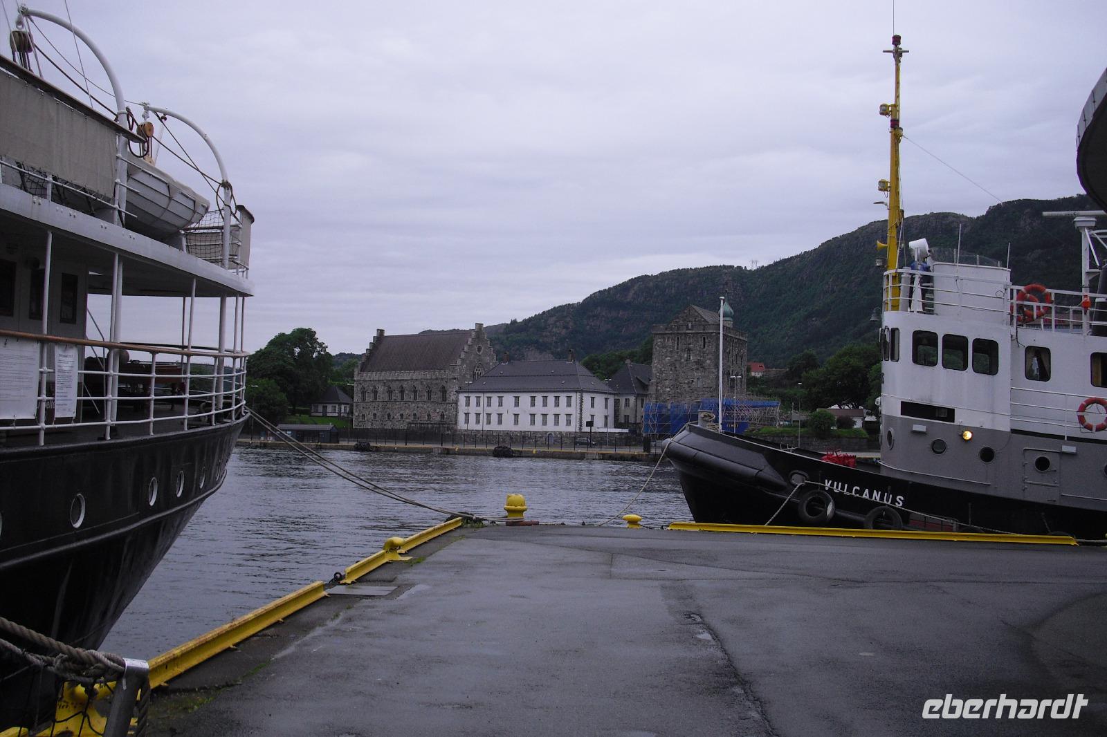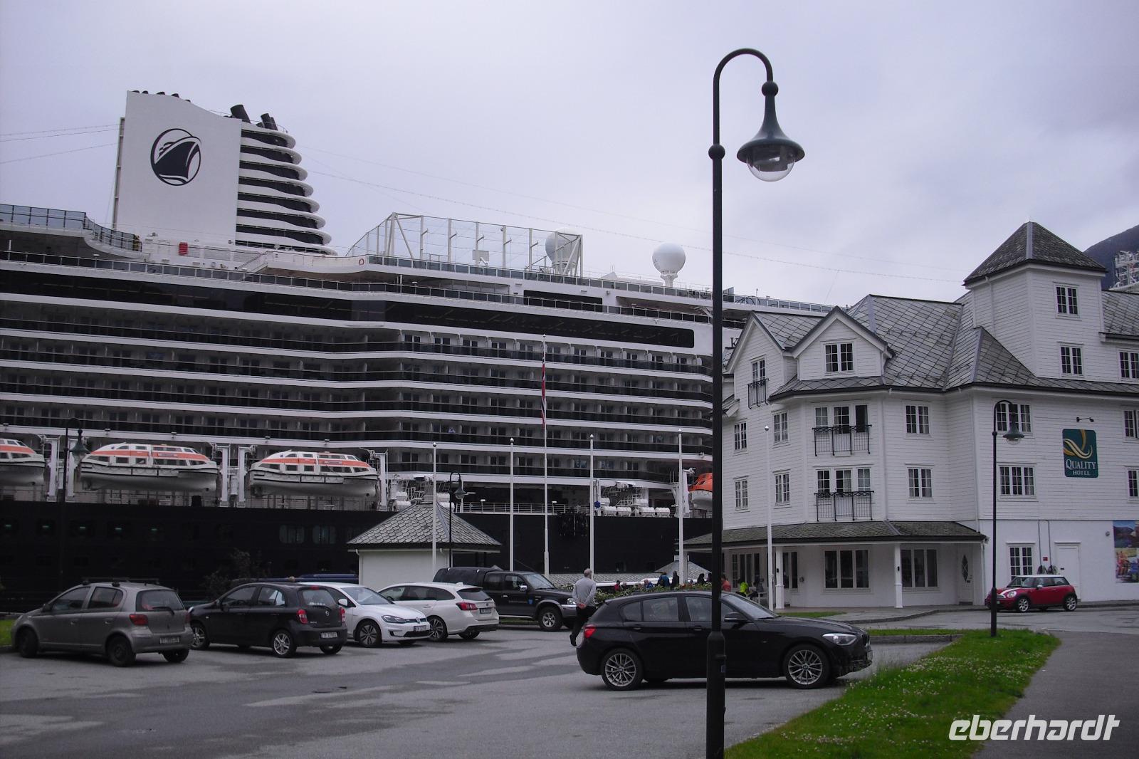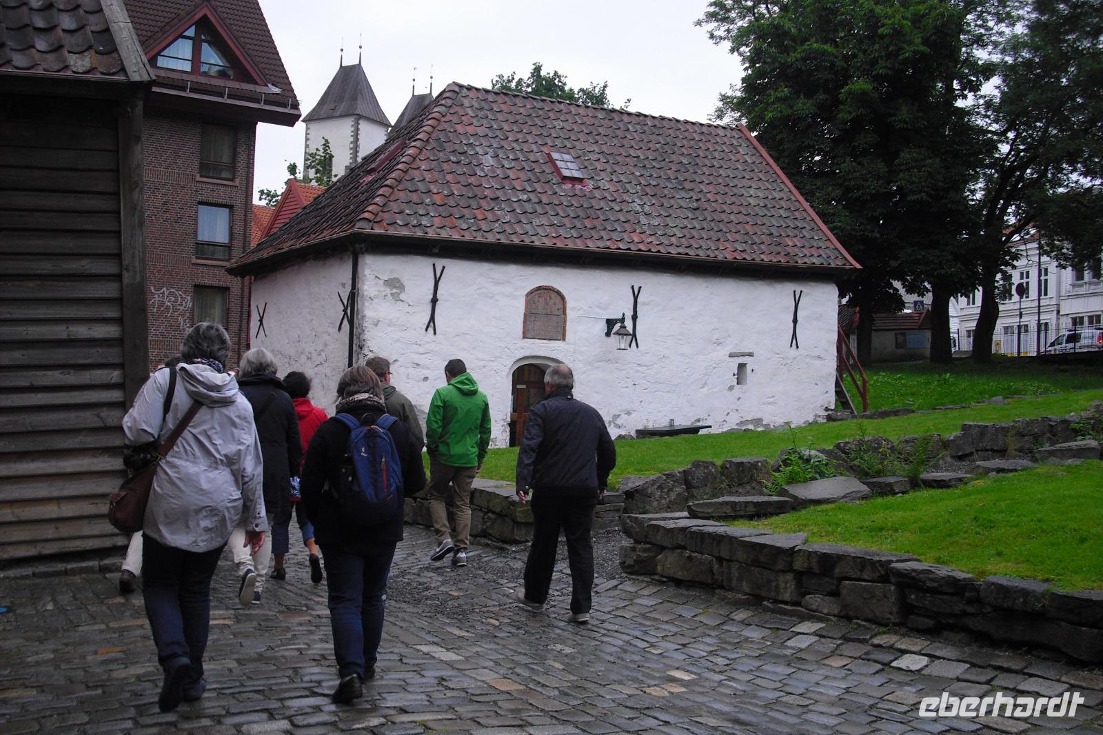 Pünktlich zum vereinbarten Zeitpunkt erwartete uns nach dem Frühstück unser Stadtführer für Bergen, nämlich Martin, vor dem Hotel. Er sollte sich als Perle örtlicher Stadtführer herausstellen - wow. Bergen allein hat schon Charme und er unterstrich das mit seinen exellenten, detaillierten Ausführungen während der Stadtrundfahrt bzw. des Stadtrundganges. Bergen wurde 1070 von König Olav Kyrres gegründet und wurde im 13. Jh. erste Reichshauptstadt von Norwegen. Die Stadt wurde schnell ein großer Handels- und Schifffahrtsplatz und gehörte zu den wichtigen Handelsplätzen der hanseatischen Kaufleute. Davon zeugt heute noch das ebenfalls zum UNESCO-Weltkulturerbe gehörende Bryggen, Bergens älteste Besiedlung. Immer wieder von verheerenden Bränden vernichtet, steht es heute als täglich genutztes historisches Kulturdenkmal entlang des Hafenbeckens und gerade wieder sind fachgemäße Restaurierungsarbeiten im Gange. Mit seinen etwa 280 000 Einwohnern ist Bergen heute eine Stadt mit Universität, Industrie, Fischerei, Handwerk, Erdöl- und Erdgasproduktion sowie Tourismus. Das ganze eingebettet in (mehr als) sieben Berge. Wegen Sperrungen durch eine Tagesbaustelle waren wir zur pünktlichen Abfahrt aus Bergen angehalten. So fuhren wir den ersten Teil der Strecke auf gleicher Straße, wie bei der gestrigen Anfahrt. In Bruravik überquerten wir einen Arm des Hardangerfjords über die Hardangerbrücke und legten eine Pause in Eidfjord ein. Auch hier überraschte uns wieder ein Kreuzfahrtschiff. Mit einer Pause am Vöringsfossen, einem Fotostopp Hardangervidda und einer Pause in Geilo gelangten wir nach Noresund. Hier erwartete man uns mit dem Abendessen und den Betten für die müden Häupter. Das Hotel war wunderschön eingebettet in die Landschaft des Hallingtals. Eine letzte Übernachtung für alle Reisegäste in Norwegen in aufgehobener Atmosphäre.