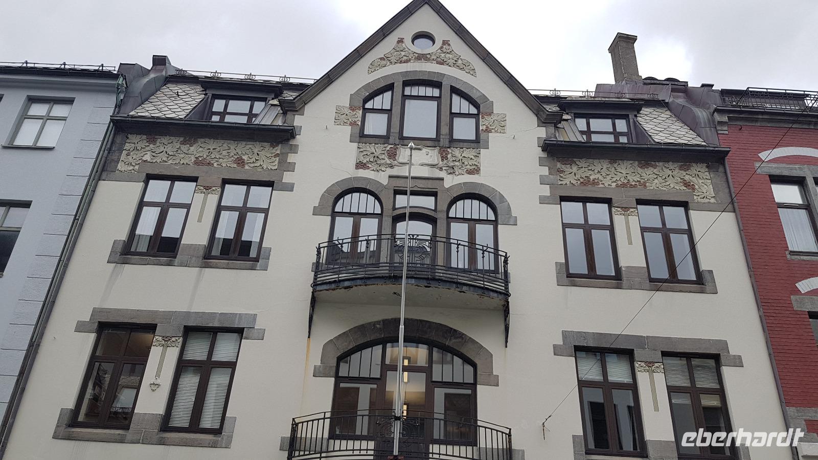 Am späten Nachmittag sind wir in Ålesund im „Quality Hotel Waterfront". Ein Kreuzfahrtschiff steht direkt vor unserem Hotel. Wir haben noch Gelegenheit uns vor dem Abendessen die berühmten Jugendstil Häuser in Ålesund anzuschauen.