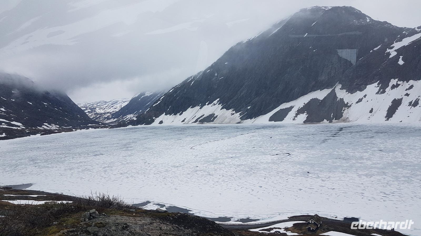 Die Hardangervidda ist die größte Hochebene Europas. Sie bezaubert uns mit vielen Seen und sanften Gipfel. Wir freuen uns, dass wir diese Hochebene bei freier Sicht und trockenem Wetter genießen können. Im Wintersportort Geilo im Hotel „Bardola Hoyfjellshotel" haben wir unser nächstes Ziel erreicht.