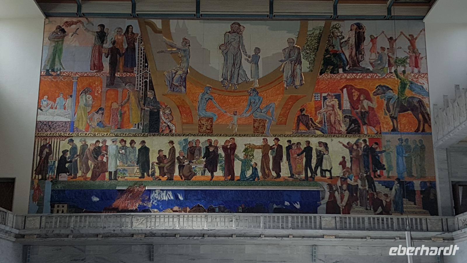 Den letzten Tag lassen wir gemütlich angehen. Wir fahren nach Oslo und machen einen Spaziergang entlang des Hafens zum Rathaus. Hier haben wir die Gelegenheit uns alle öffentlichen Räumlichkeiten anzuschauen. Unser Weg führt uns weiter zum königlichen Schloss. Im Schlosspark verweilen wir und freuen uns, dass die Sonne dabei lacht.