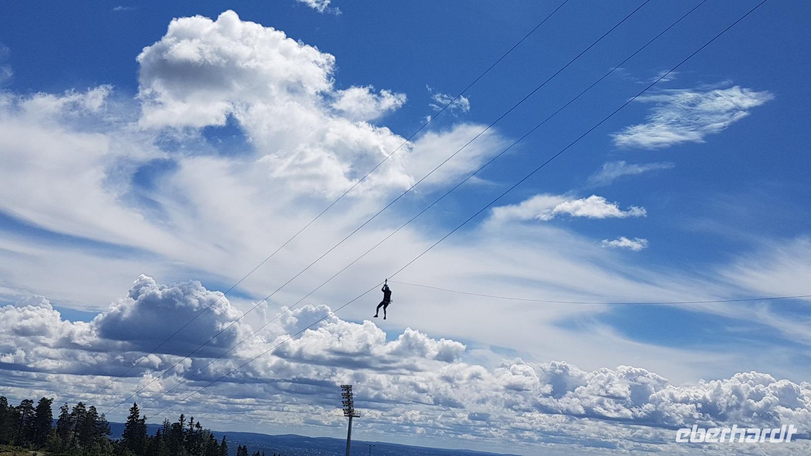 Später geht es noch zum Holmenkollen hinauf, zur Skisprunganlage Oslos. Es muss viel Mut dazu gehören, hier herunter zu springen. Der Schanzenrekord liegt bei 141 m. Heute stürzen sich junge Leute am Seil die Schanzenanlage herunter. Wir haben etwas Zeit Ihnen zuzuschauen. Nach einer späten Mittagspause fahren zum Osloer Flughafen Gadermoen. Dieser liegt ja ca. eine Stunde Fahrt von Oslo entfernt. Hier geht das Einchecken schnell und unproblematisch, alles am Automaten.