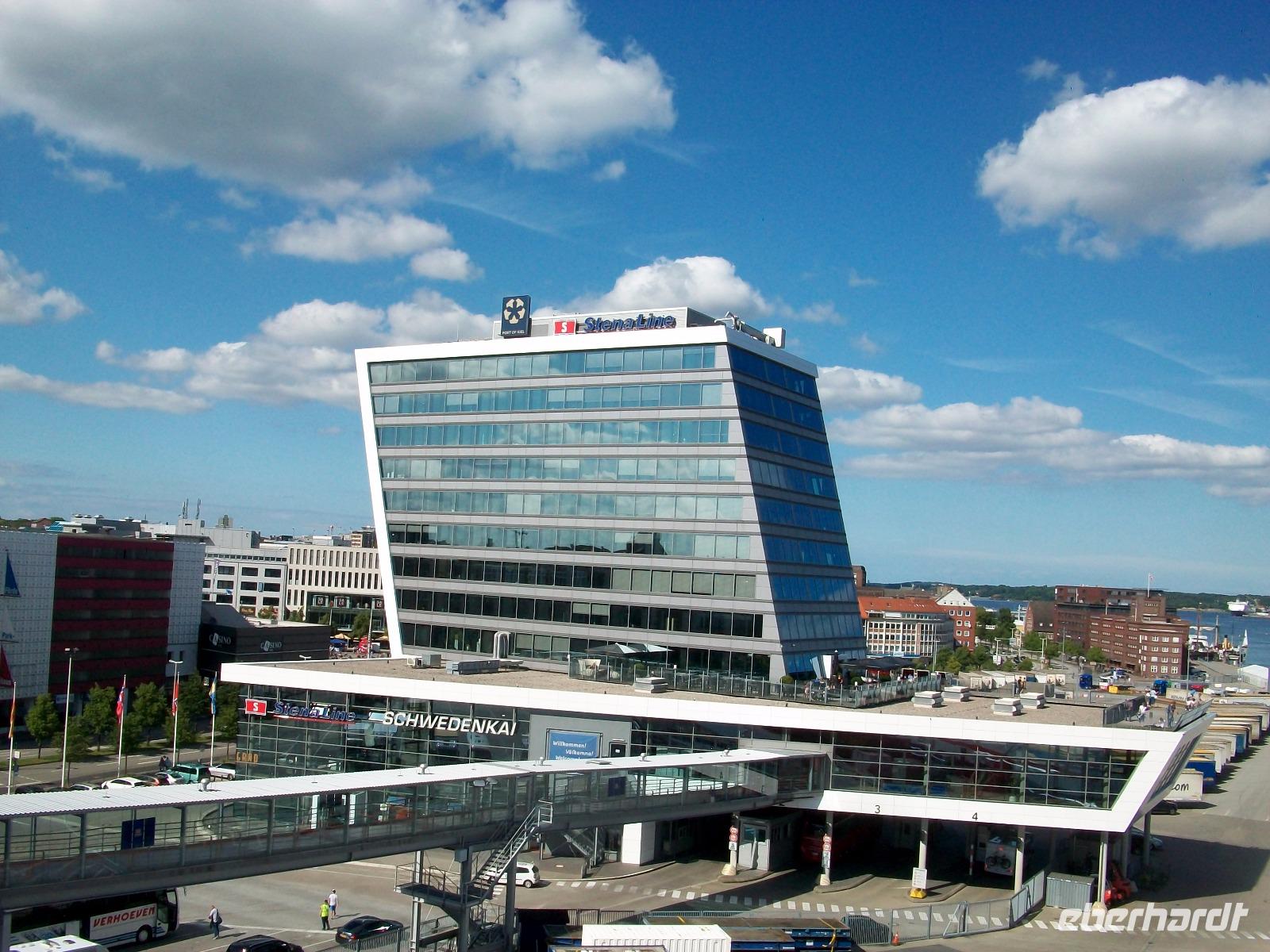 Wir gelangen von Dresden zum Leipziger Flughafen, hier können wir weitere Gäste Willkommen heißen um unsere Fahrt dann durch Brandenburg und Mecklenburg fortzusetzen. Wir sehen die weiten Felder mit dem reifenden Getreide, einige davon sind schon abgeerntet. Diese Anreise ist bei dem schönen Wetter nicht langweilig; vorbei an Bad Segeberg nähern wir uns langsam der Waterkant an, die Ostsee ist unser heutiges Ziel. Als wir dann im Stadtverkehr von Kiel anlangen, taucht bald ein großes Schiff vor unseren Augen auf, es ist die „Stena Scandinavica" die am Schwedenkai angelegt hat, sie wird uns über Nacht nach Göteborg bringen.
