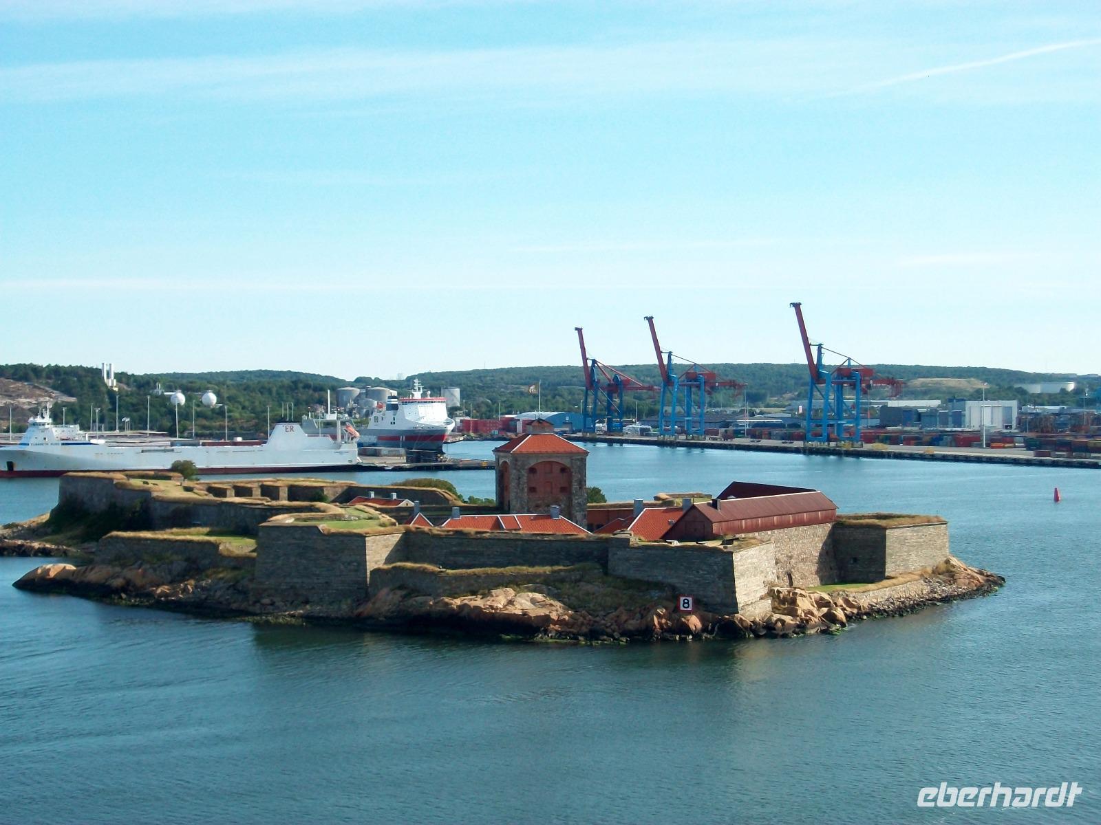 22.7.2017. Schweden empfängt uns mit Sonnenschein! Auf dem Oberdeck genießen wir die Einfahrt nach Göteborg und durchqueren eine reizvolle Schärenlandschaft mit den vielen kleinen Inseln. Bald sind wir am Anleger, hier wird unser Schiff festgemacht.