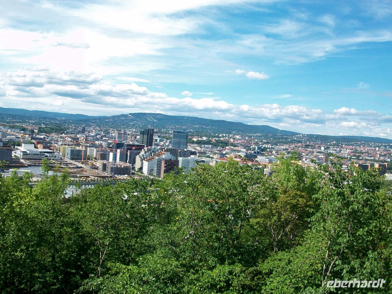 An der alten Festung Akershus beginnt dann die interessante Stadtrundfahrt mit Solveig. Sie wird uns in den nächsten zwei Stunden die schönsten Ecken von Oslo zeigen. Als erstes sehen wir das sehr moderne Opernhaus, dann geht es hinauf auf einen Hügel östlich der Stadt und von hier haben wir einen grandiosen Blick auf Oslo und den Fjord.