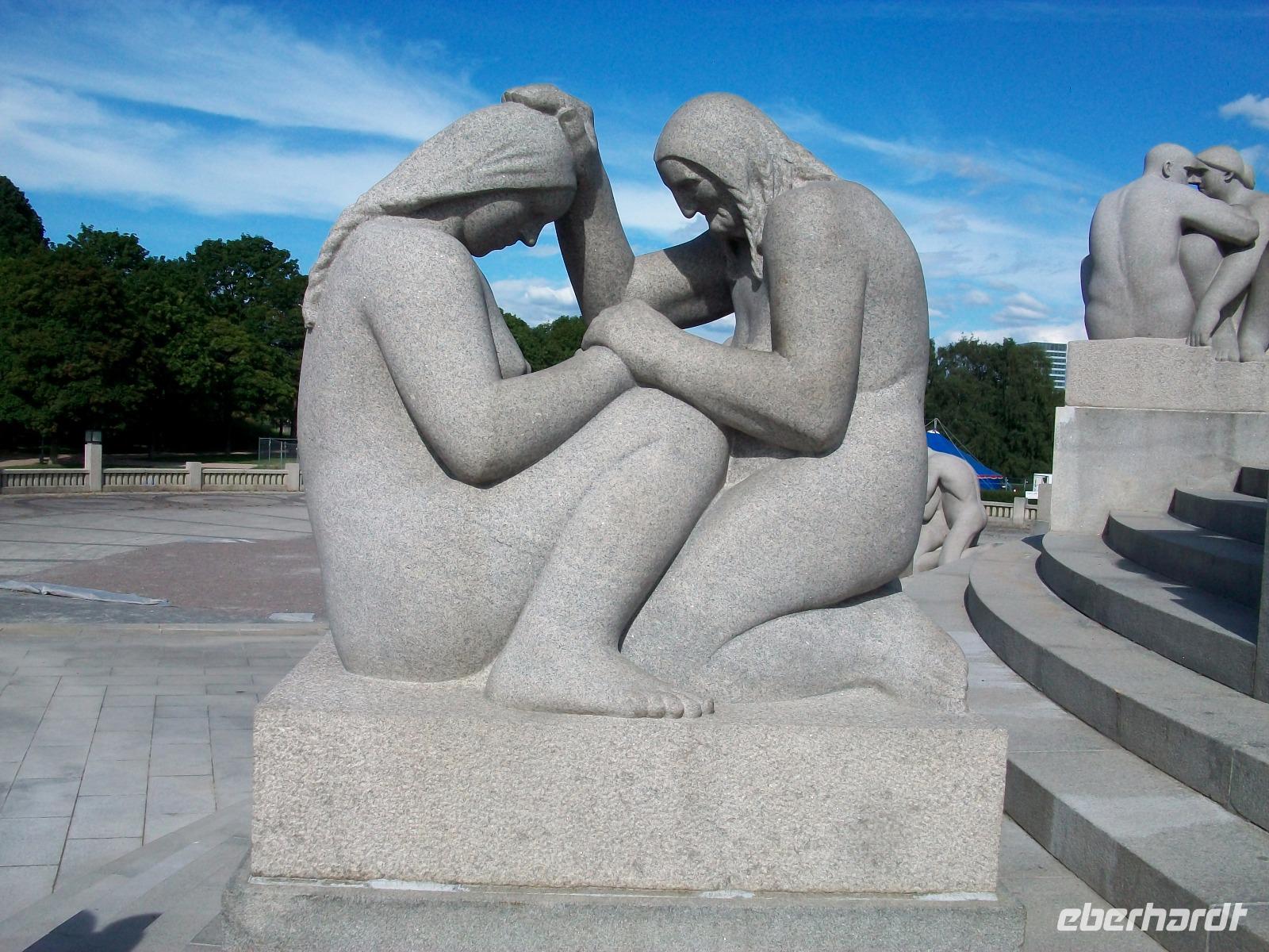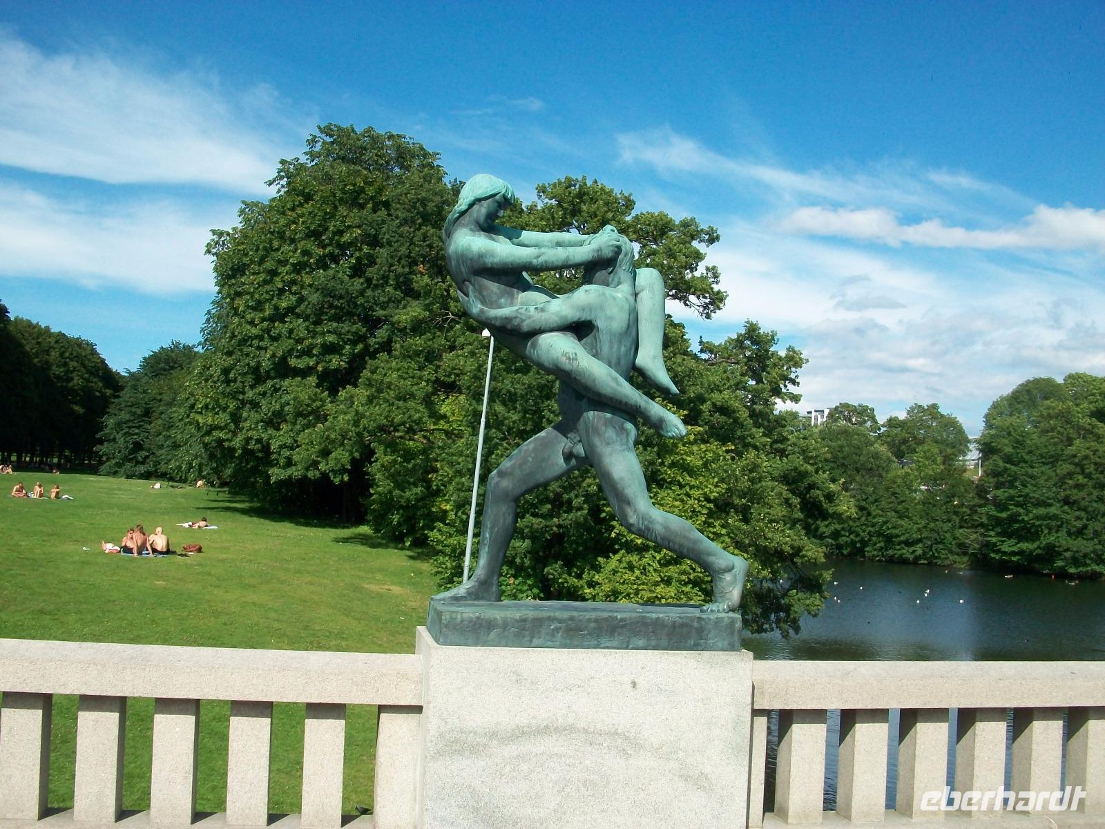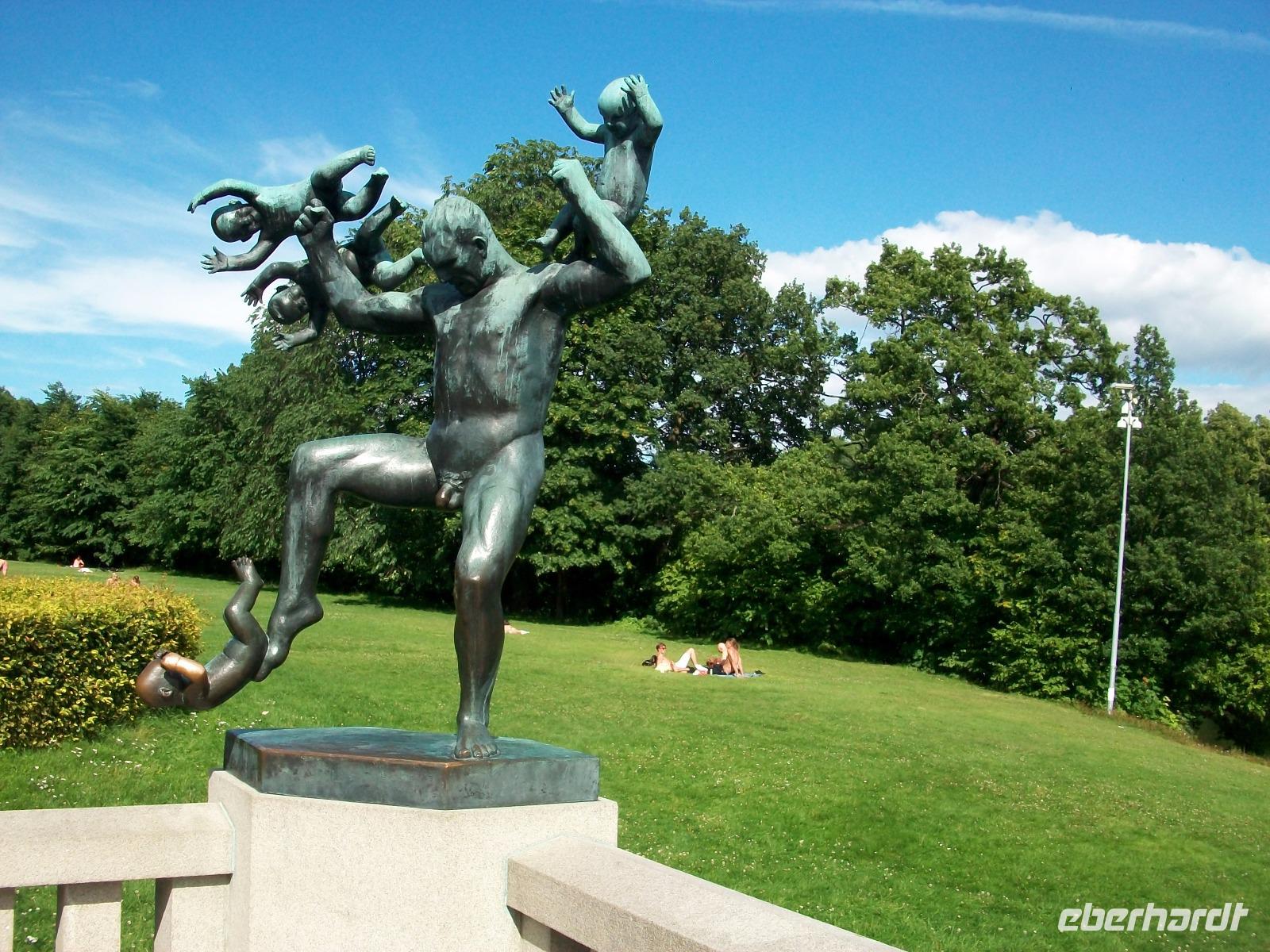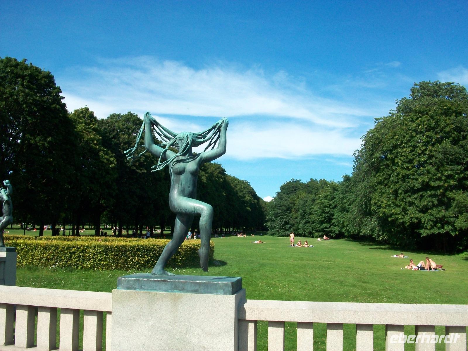 Ein ganz großer Höhepunkt ist der Besuch des Skulpturenparks inmitten der Stadt. Der große Künstler Gustav Vigeland schuf hier sein Lebenswerk; es ist der Kreislauf des Lebens von der Geburt bis zum Tod in faszinierender Art und Weise in Granit und Bronze ausgeführt. An diesem schönen und warmen Sommertag bummeln wir mit Solveig durch den Park, sie bringt uns diese besondere Kunst mit interessanten Erklärungen näher.