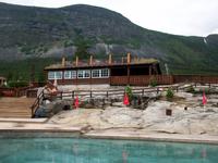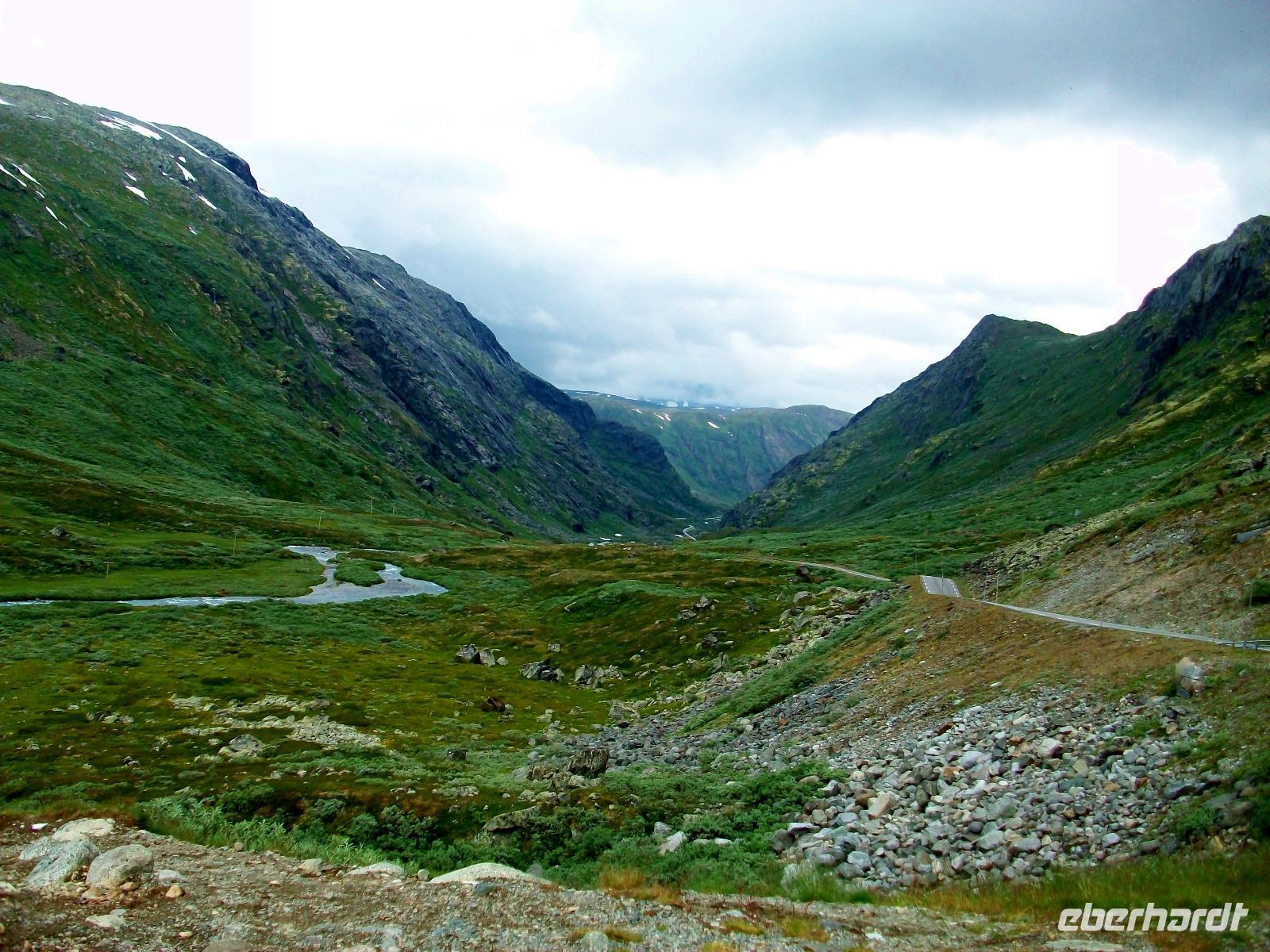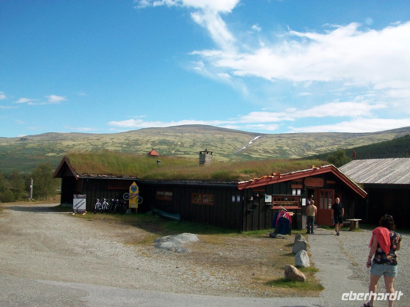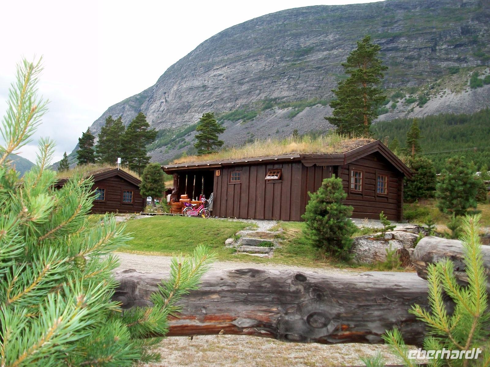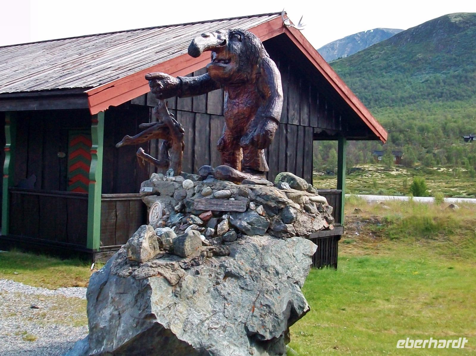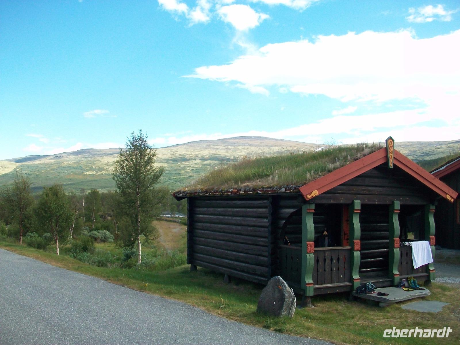 Nach diesen schönen Erfahrungen nehmen wir unsere Fahrt wieder auf; hinter Lillehammer gelangen wir in das Gudbrandstal, dem „Tal der Täler" Norwegens. Überall sehen wir die Landwirtschaft in dieser fruchtbaren Region, aber, unser Weg führt uns kontinuierlich hinauf und nach der Pause im Ort Dombås ändert sich das Landschaftsbild schlagartig. Der Baumbestand tritt zurück; kahle Flächen, durchflossen von kleinen Bächen und Bergspitzen mit Schneeresten, bestimmen nun das Bild. Wir sind auf dem Dovfrefjell angelangt und die Straße führt uns direkt durch das Gebiet der Moschusochsen und Rentiere, von denen wir allerdings keine zu Gesicht bekommen. Aber, die Fahrt über das Fjell ist doch etwas Besonderes; danach geht es aber wieder bergab und wir tauchen erneut ein in die unendlichen Wälder Norwegens mit der intakten Natur.
