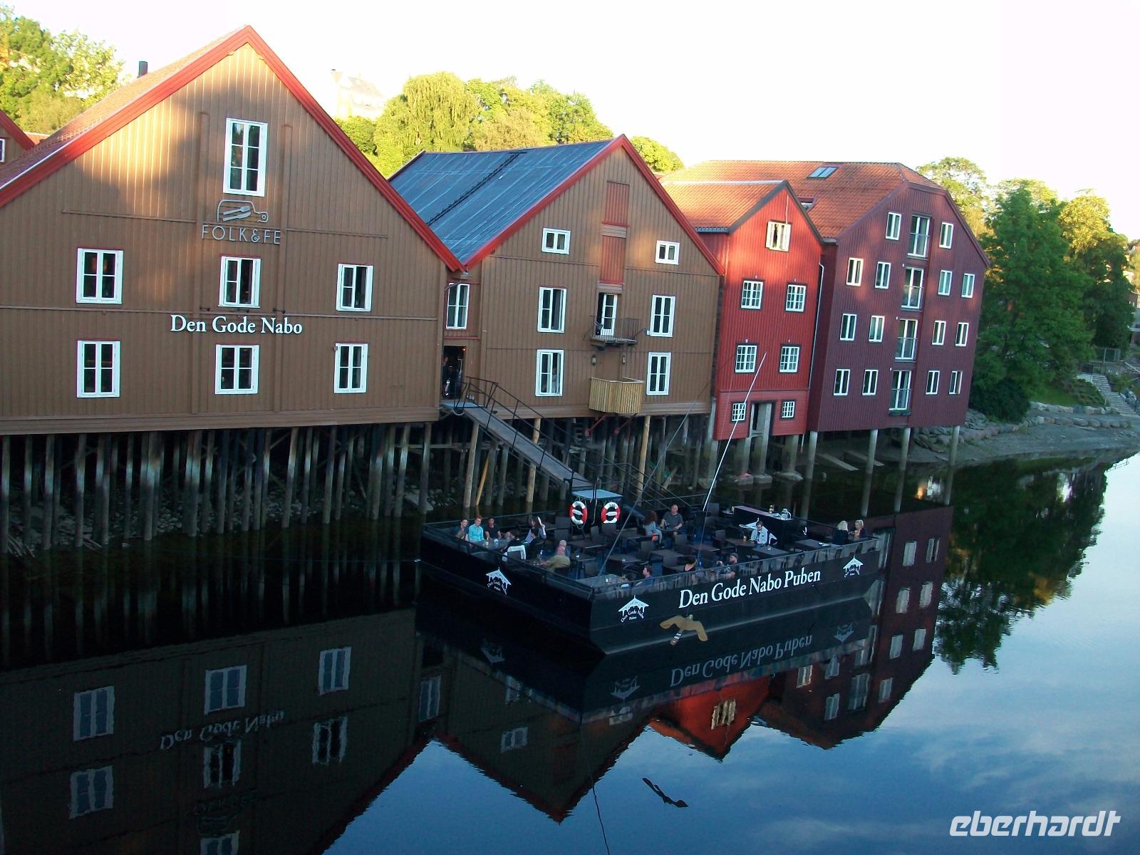Am Abend gelangen wir dann zu unserem Ziel: Trondheim. Das Hotel hat eine sehr zentrale Lage und von hier aus können wir diese schöne Stadt nach dem Abendessen noch besuchen. Entlang der uralten Speicherhäuser die direkt am Fluss Nid gebaut sind mit ihren farbenfrohen Holzfassaden ist das noch eine letzte schöne Impression dieses Tages.