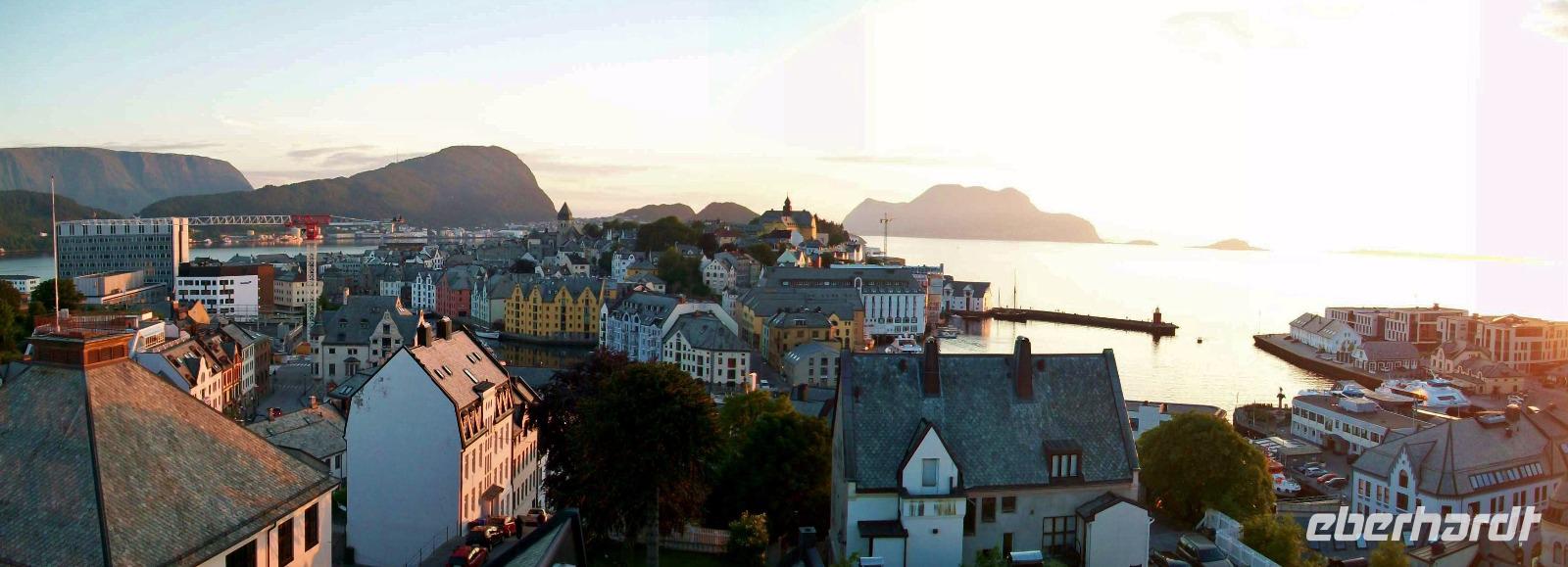 Es fällt schwer sich von diesem Anblick loszureißen, doch unser Ziel ist noch weit. Langsam verlassen wir die Bergwelt um hinunter zu den Fjorden auf Meeresniveau zu gelangen und im reizvollen Ålesund endet die heutige Fahrt. Ein Bummel bringt uns zu den geschmackvollen Jugendstilhäusern die auf mehreren Inseln erbaut wurden und zeigt uns eine neue Fassette des Gastlandes.