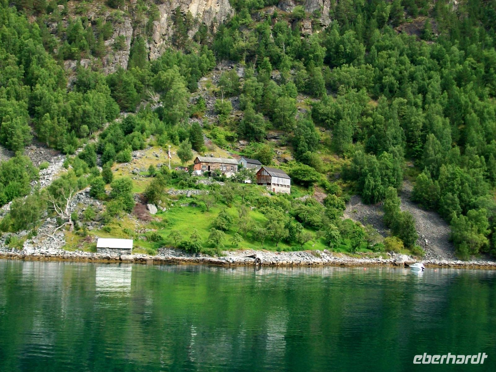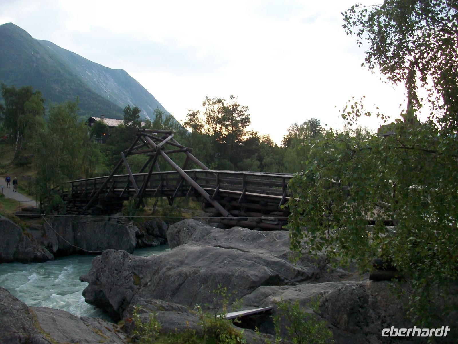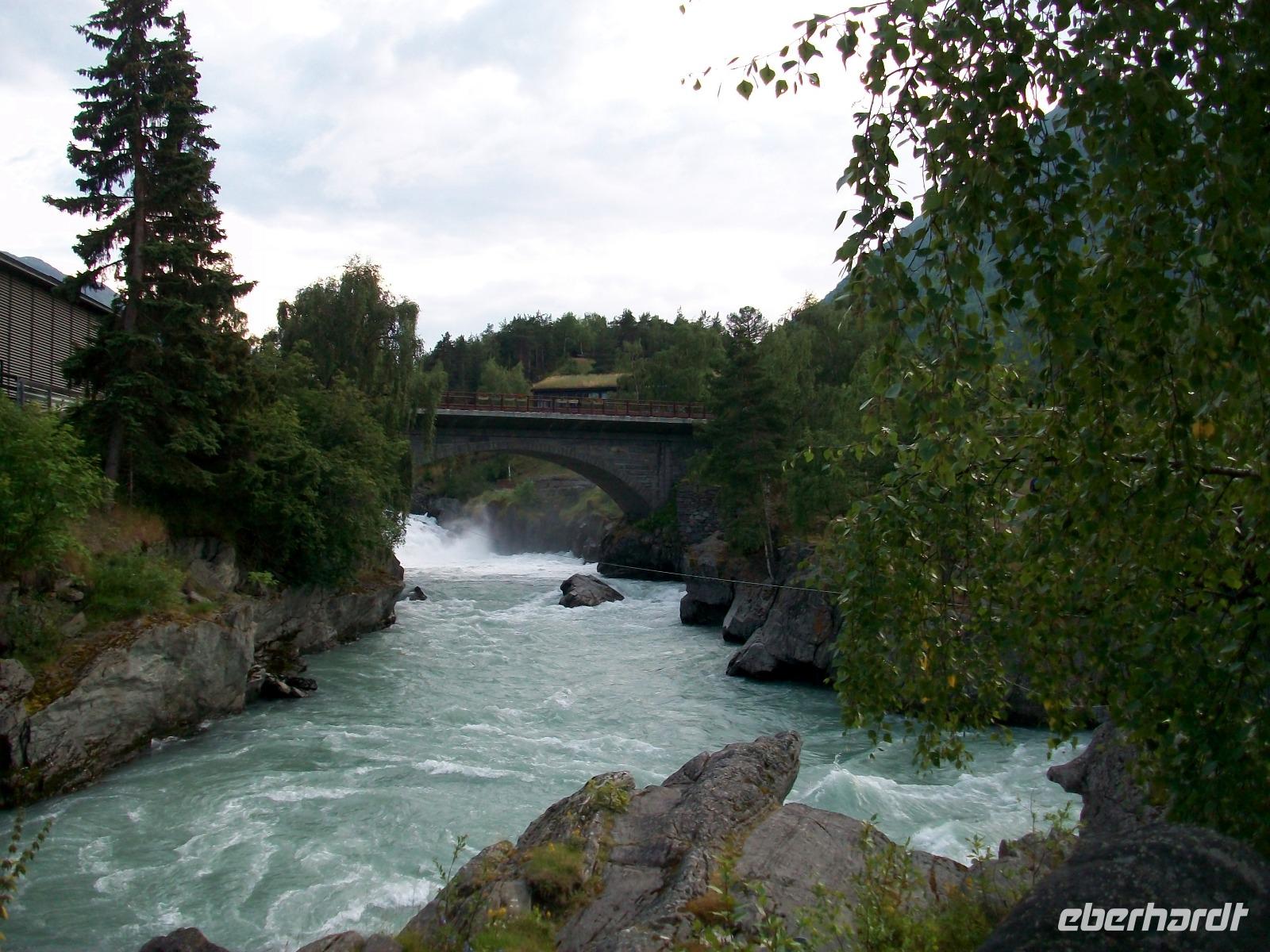 Dann geht es wieder abwärts; wir gelangen zu den Fjorden, überqueren das Wasser mit einer Fähre und im beschaulichen Ort Lærdal mit den uralten Holzhäusern gönnen wir uns eine Mittagspause.