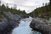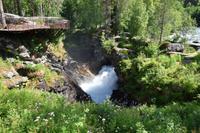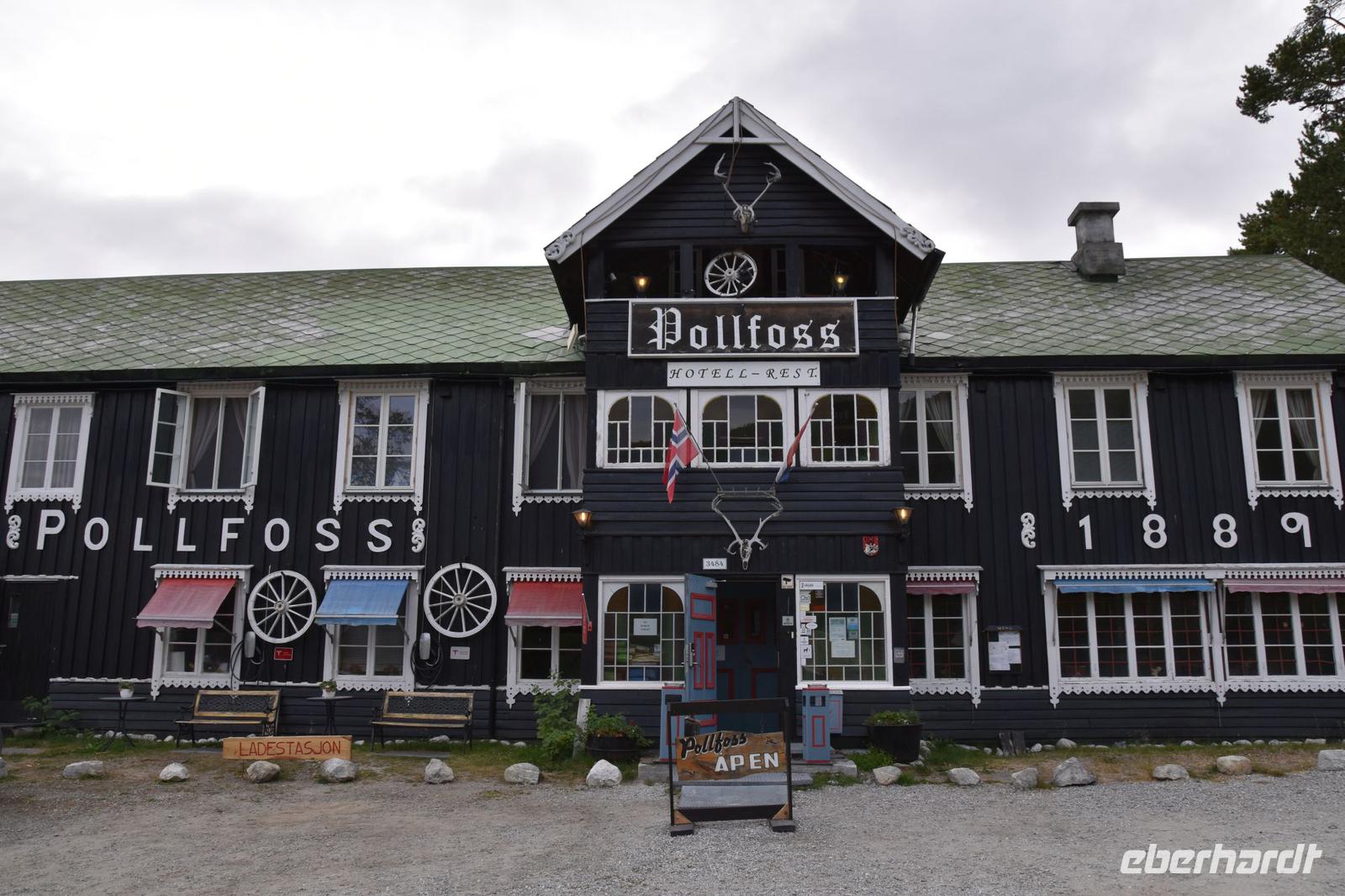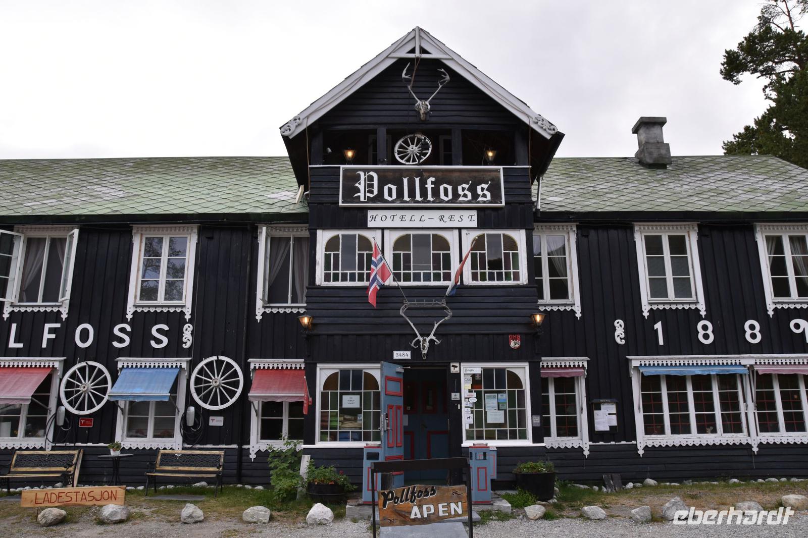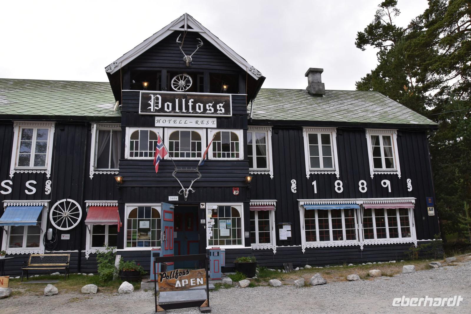 Von Lom fahren entlang des Flusses wieder hinauf bis Wasserfall Pollfossen, neben dem unser traditionelles Hotel "Pollfoss" steht.