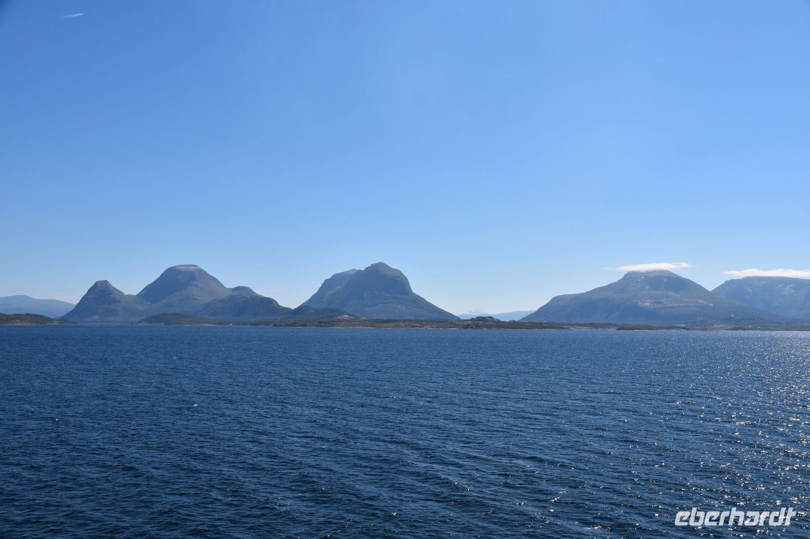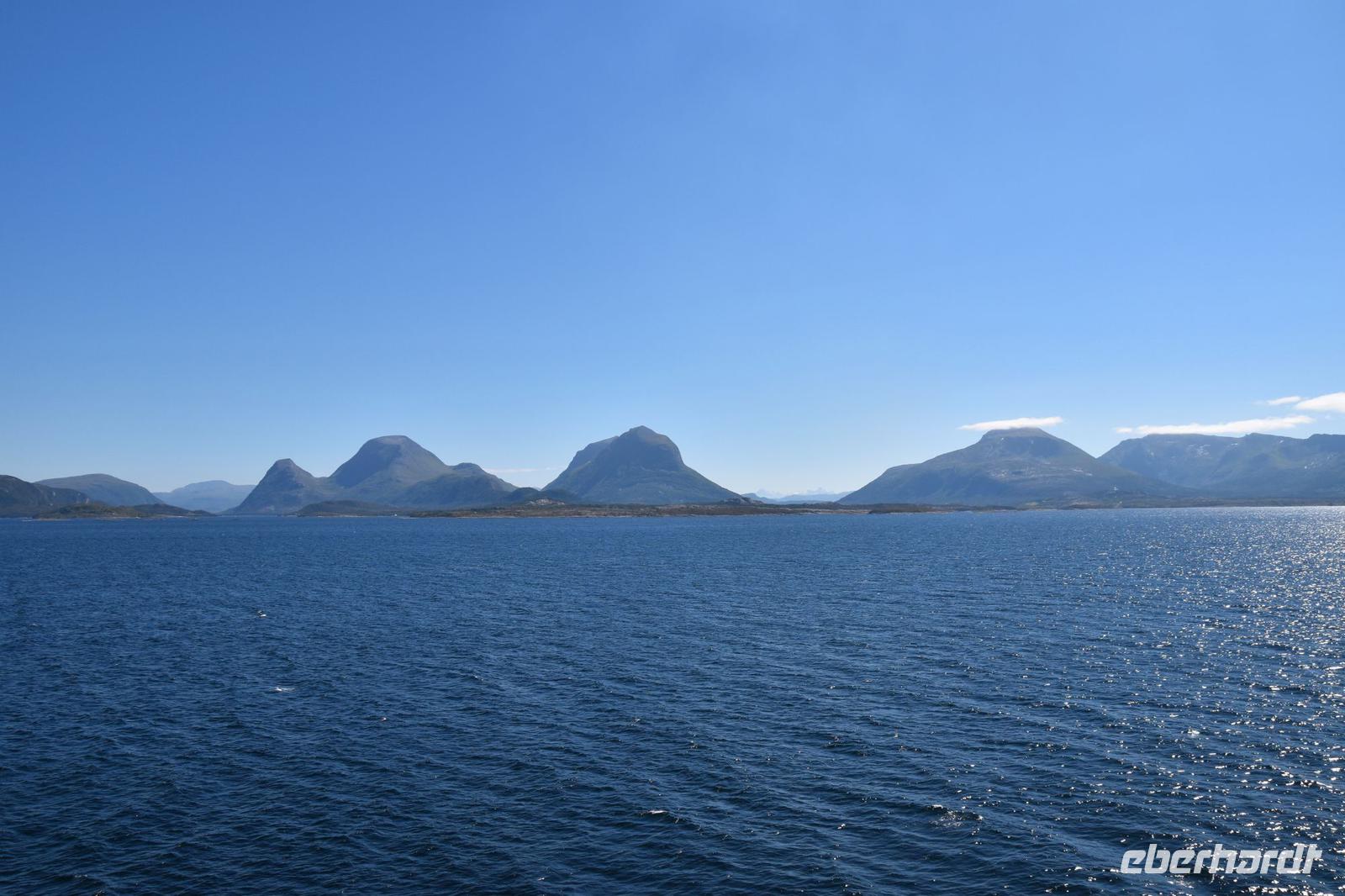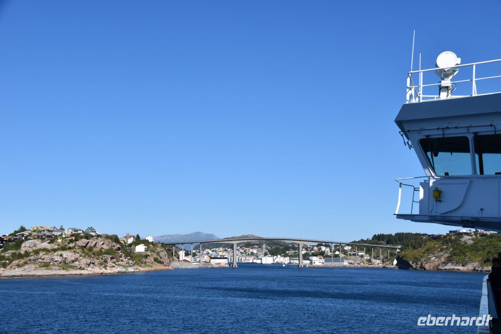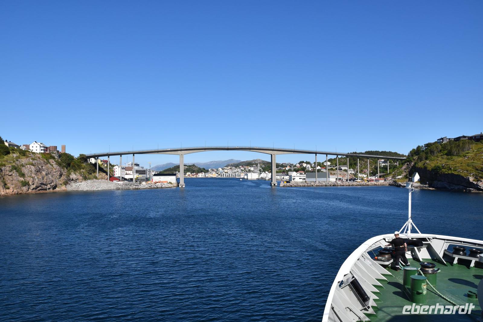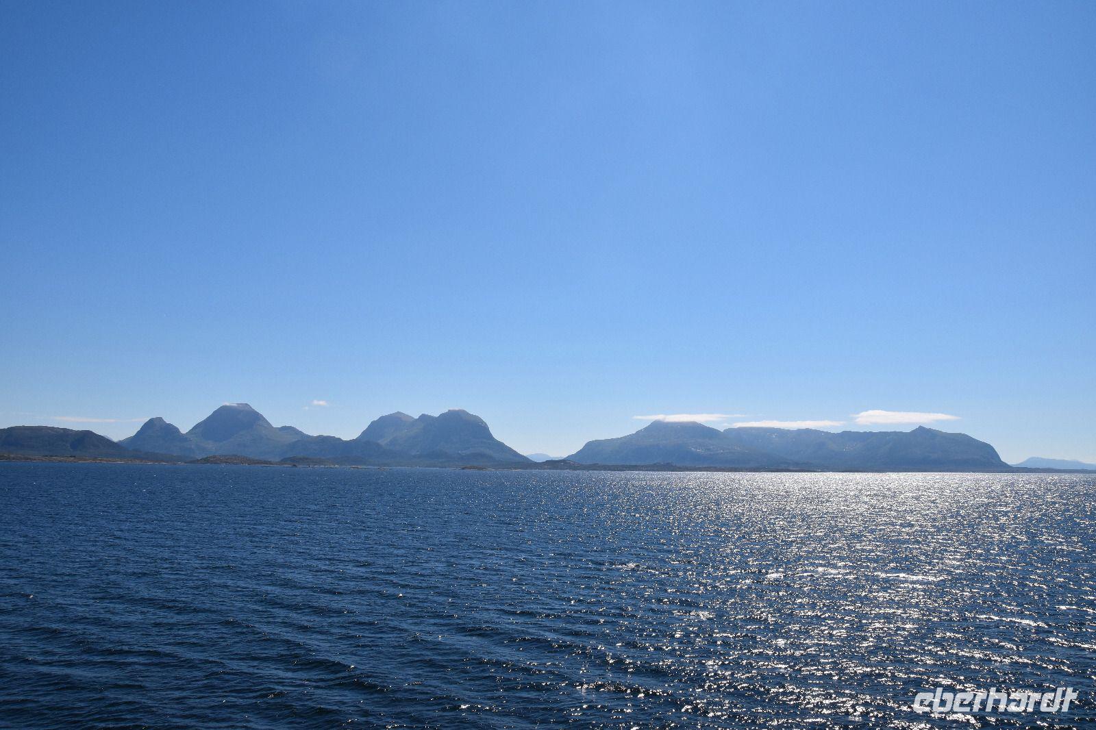 Wieder schönes Wetter, wenn auch etwas mehr Wolken und wir fahren nach dem Frühstück zum Hafen der Stadt. Hier am Hurtigruten-Kai gehen wir an Bord der MS "Richard With", um mit ihr über den Trondheimfjord und durch die Trondheimleia nach Kristiansund überzusetzen.