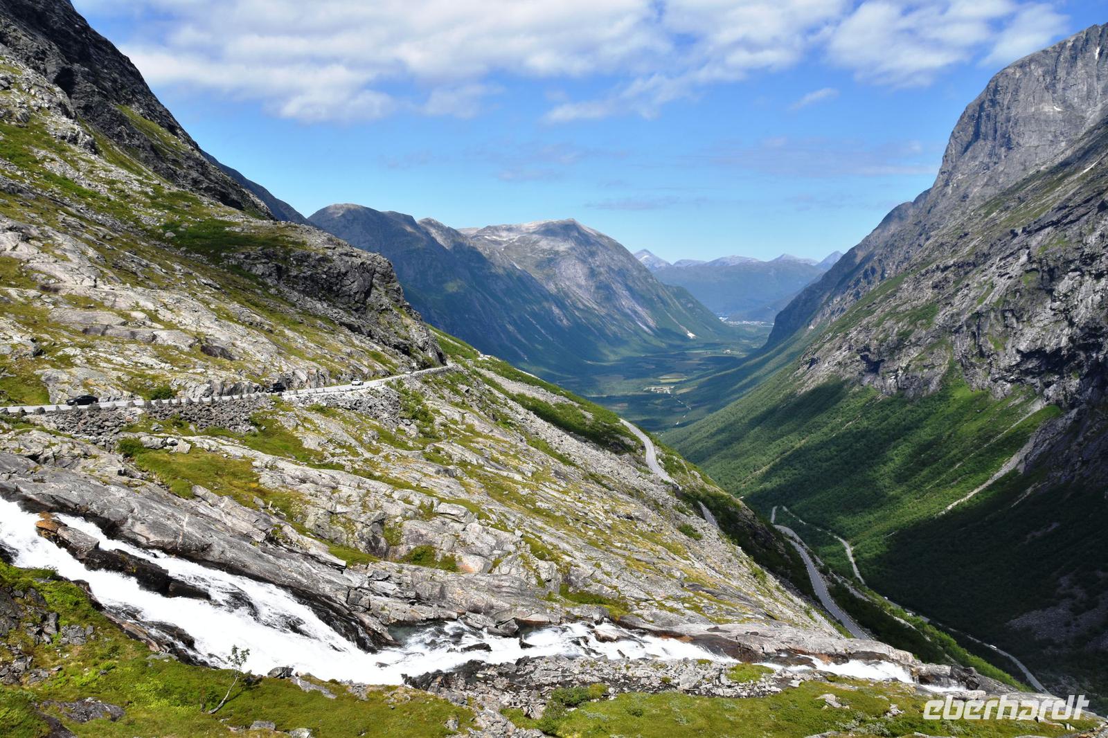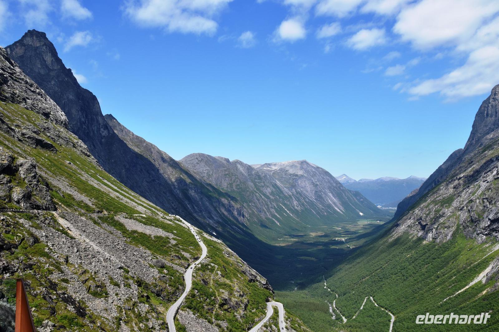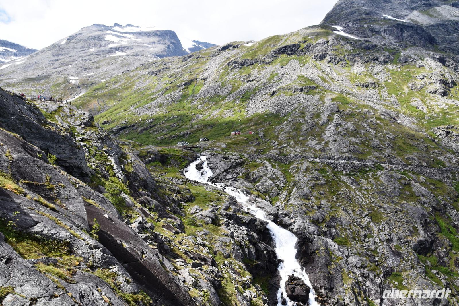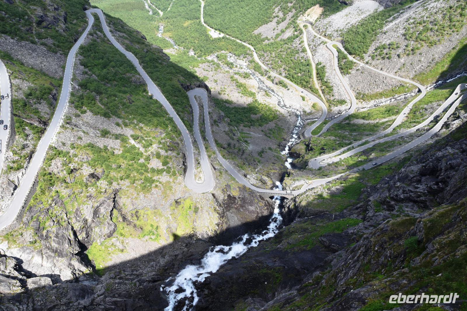 Im nahen Isterdal, wo sich seit ihrer Eröffnung 1936 eine der imposantesten Landschaftsstrassen über 13 Haarnadelkurven emporwindet, fahren auch wir die berühmte Trollstige hinauf.