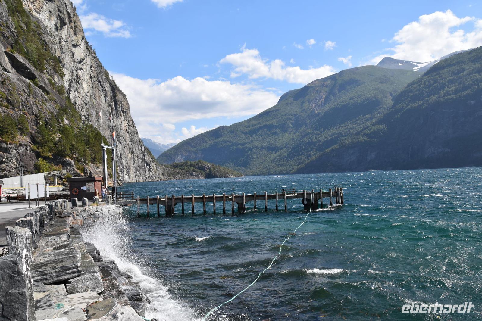 Von Bergen fahren wir zum Norheimsund weiter. Einem Fotostopp am Wasserfall 79 m hohen Brattefossen folgt ein Aufenthalt am Steinsdalsfossen. Hier hat man mit dem Weg hinter den Wasserfall eine besondere Attraktion geschaffen.