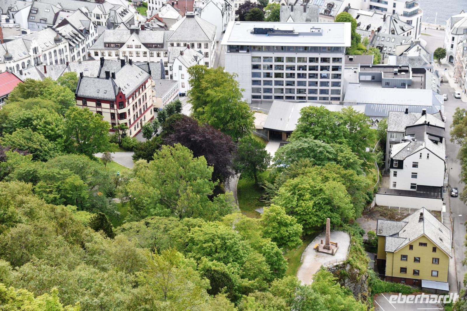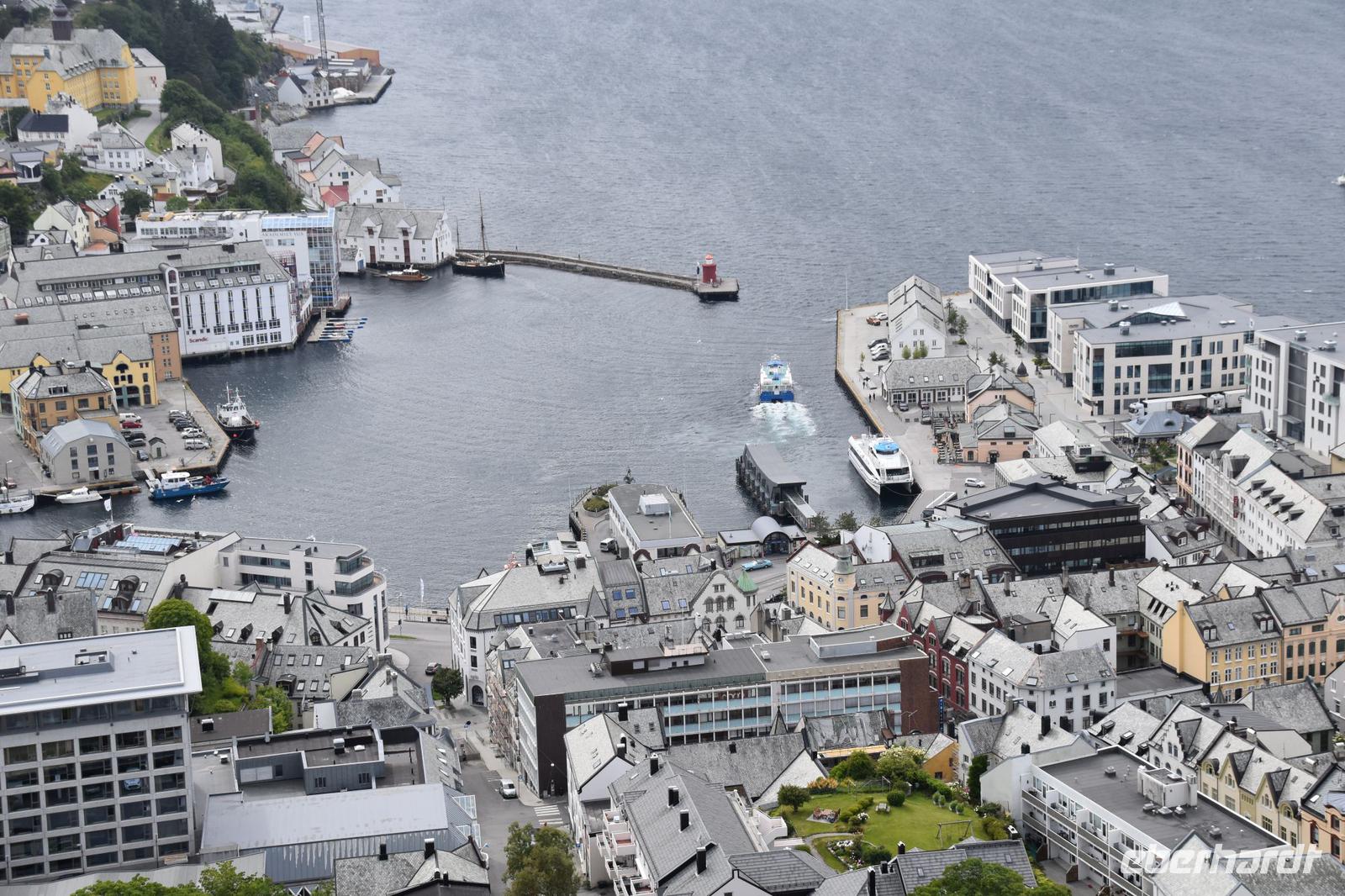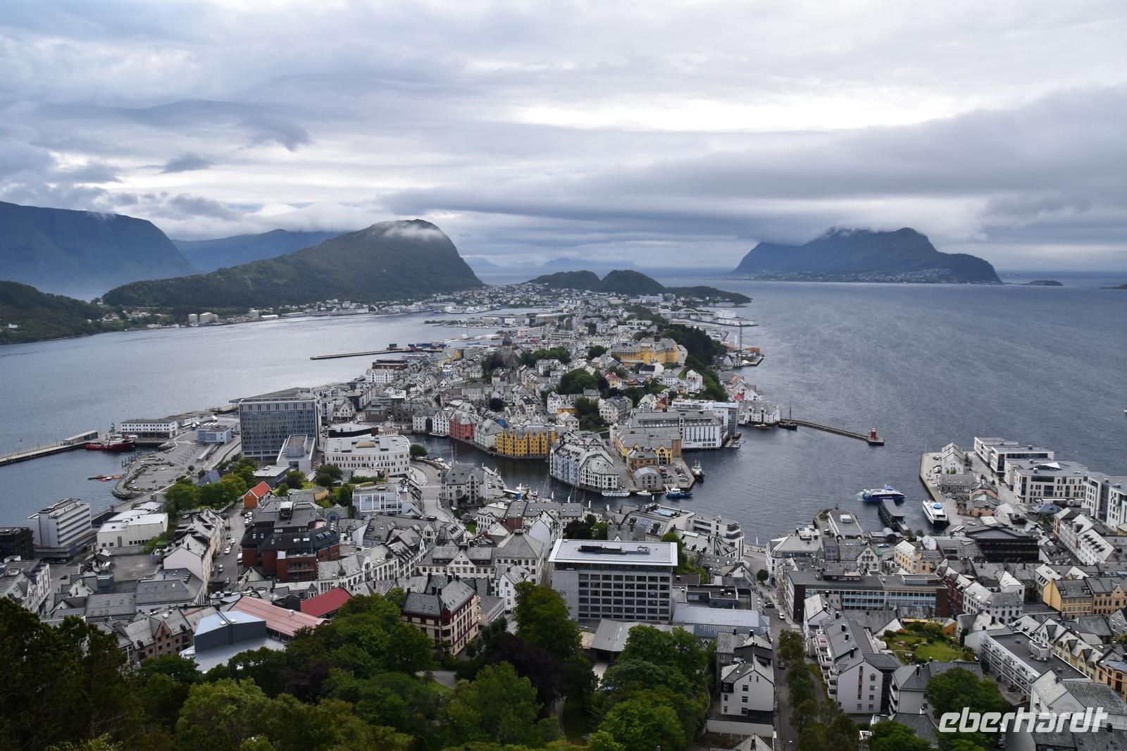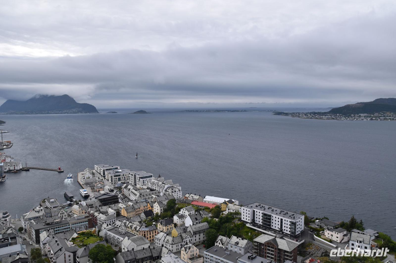 Bei Fotostopps am Gudbrandsjuvet und direkt am Storfjord in Valldal können wir die sehenswerte Gebirgslandschaft weiter in uns aufnehmen. Wir besuchen deshalb an diesem Abend noch den Aksla, den Hausberg von Alesund und genießen von hier den tollen Blick auf die Stadt Alesund, die Fjorde und die umliegenden Inseln. Allerdings pfeift jetzt ein kühler Wind um unsere Ohren. Im Hotel Scandic Parken in Alesund essen wir zu Abend und übernachten.
