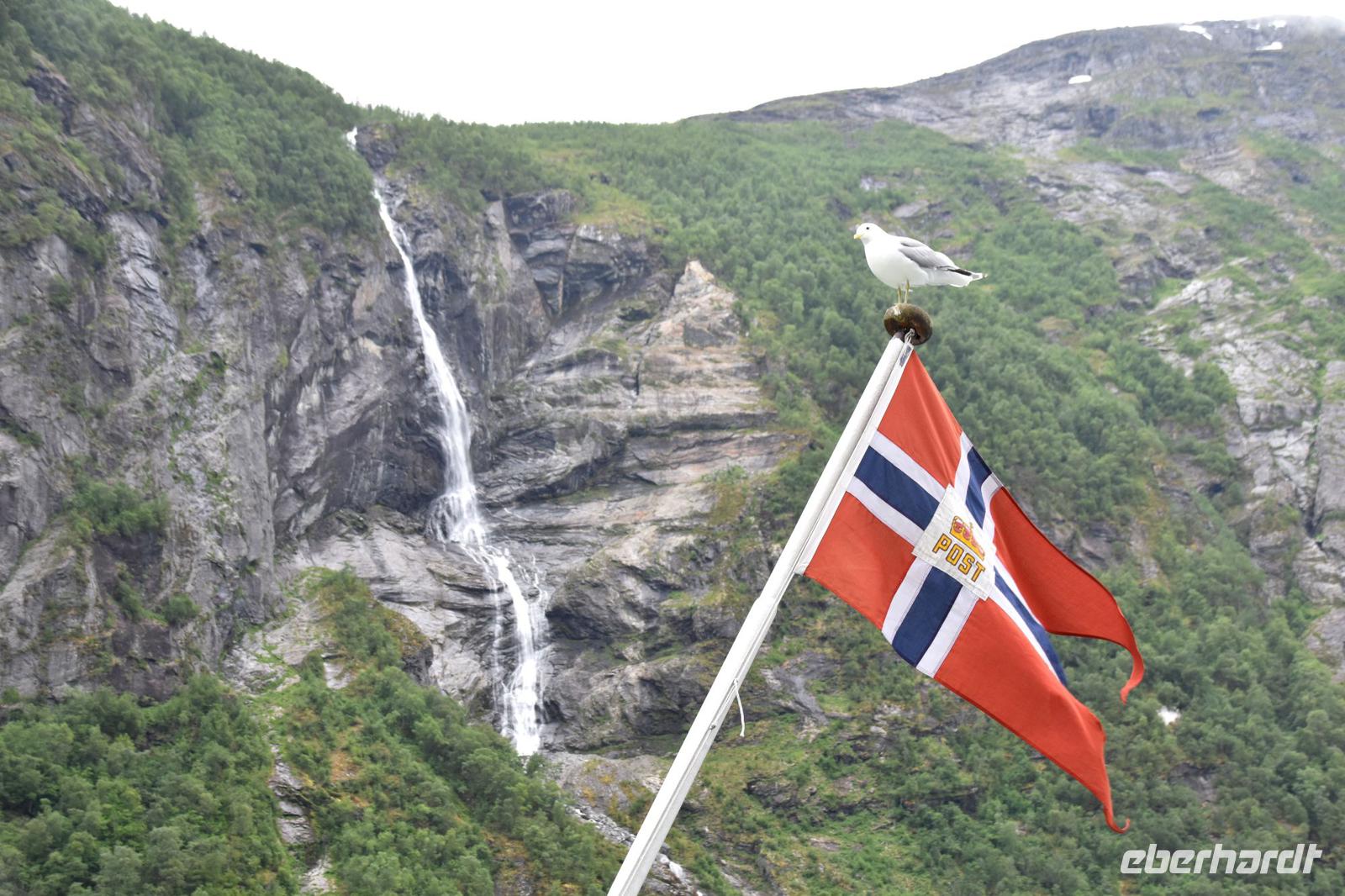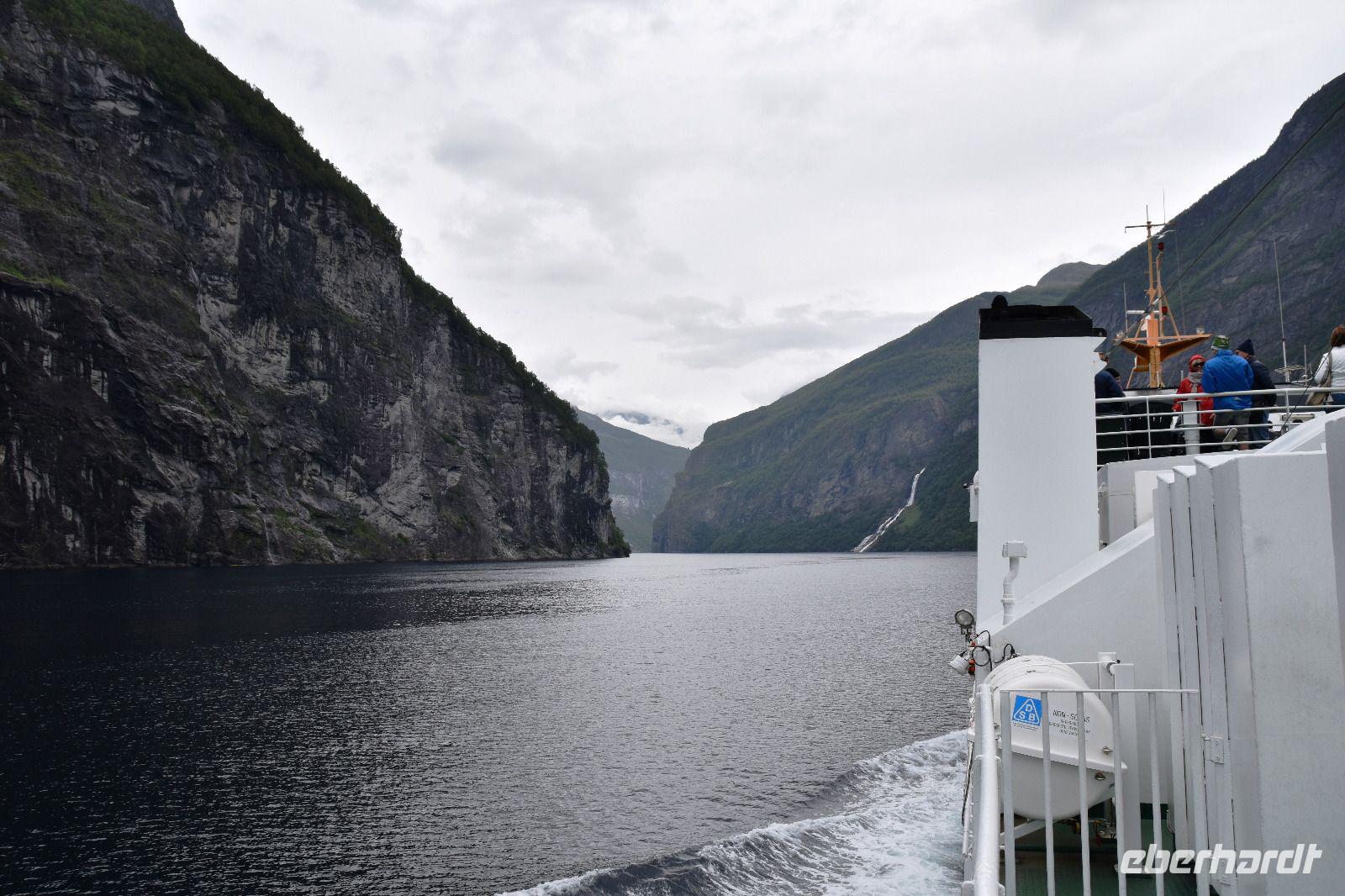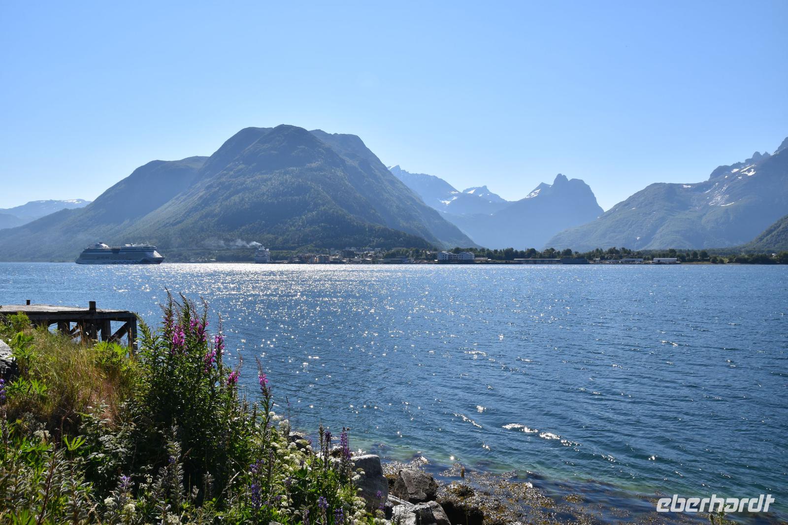In Hellesylt haben wir den ersten Blick auf den Geiranger- und den Sunnnylfsfjord. Von Hellesylt aus erobern wir auch mit der Fähre den Geirangerfjord, genießen bei guter Sicht das einmalige Bergpanorama und die Sehenswürdigkeiten im Fjord.