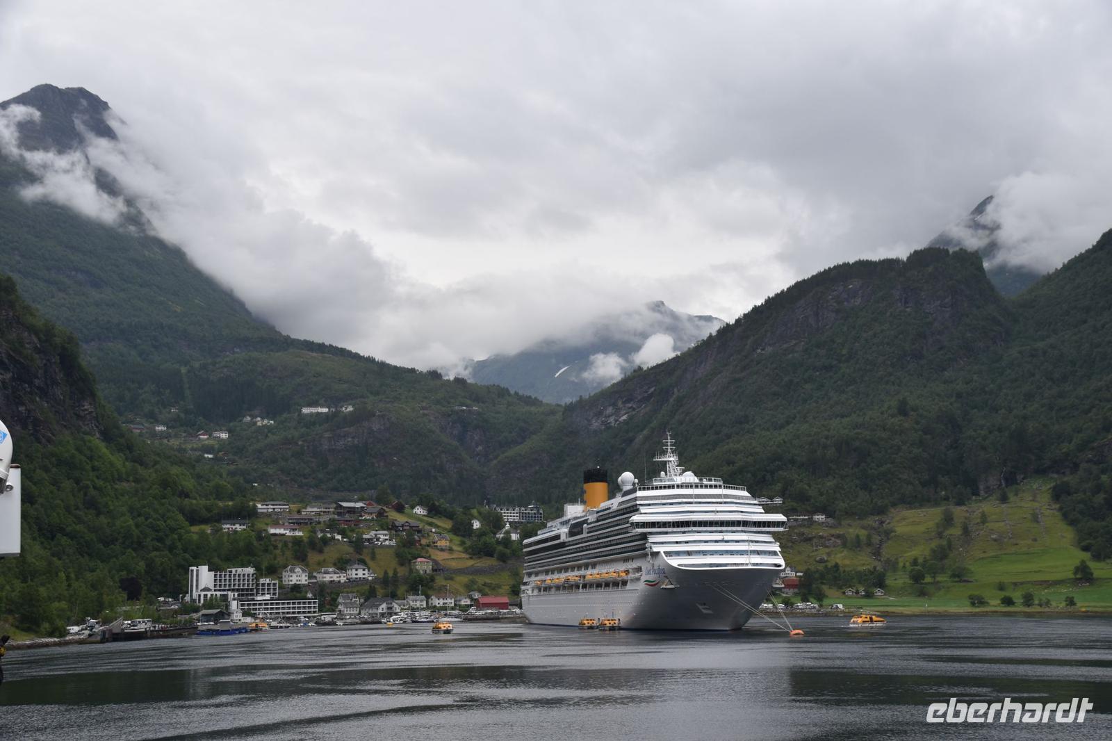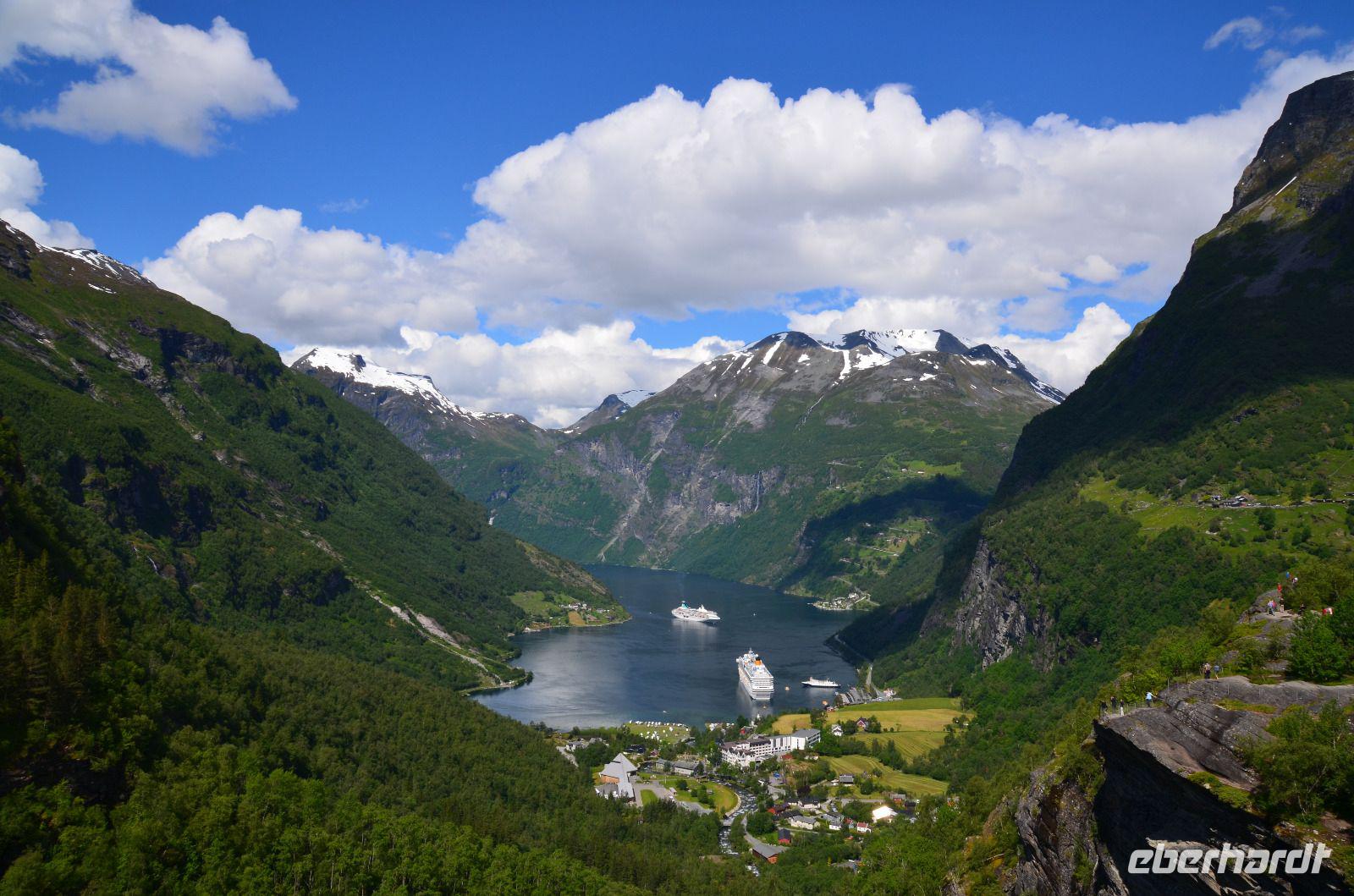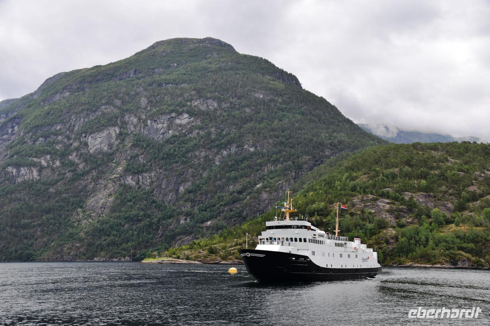 In Hellesylt haben wir den ersten Blick auf den Geiranger- und den Sunnnylfsfjord. Von Hellesylt aus erobern wir auch mit der Fähre den Geirangerfjord, genießen bei guter Sicht das einmalige Bergpanorama und die Sehenswürdigkeiten im Fjord.
